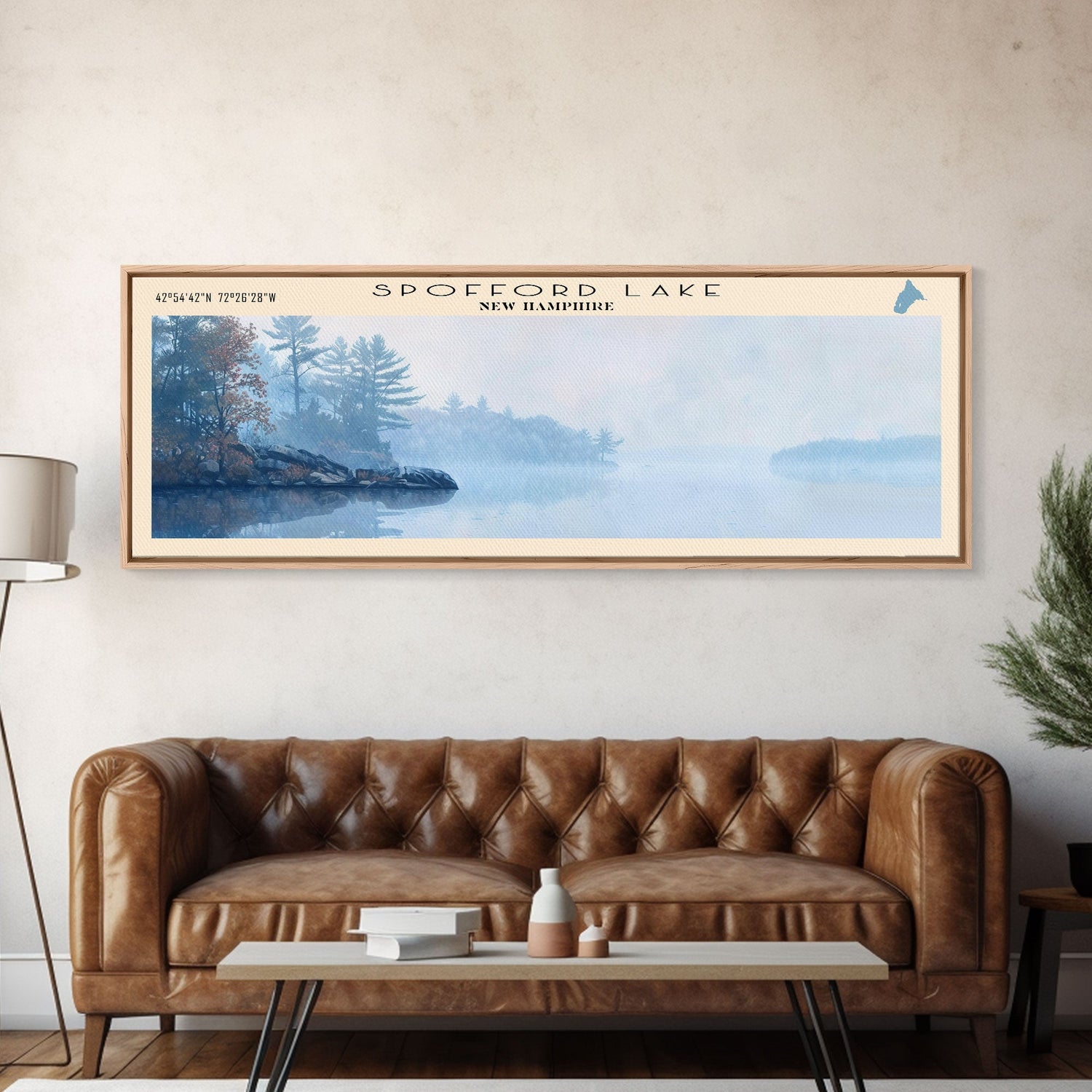 Spofford Lake New Hampshire Panoramic Framed Canvas Print, Lake House Decor, Wall Art, Travel Poster, Beautiful Lake Scene, Bedroom Decor