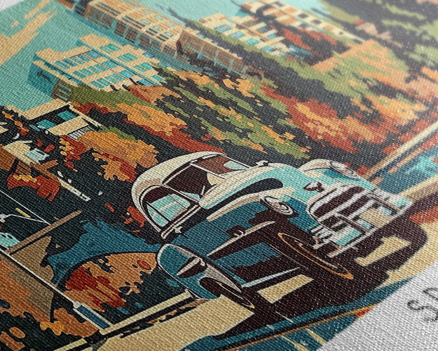 Spokane Washington Panoramic Wall Art, Mid Century Modern Framed Canvas Print, Retro Pop Art Travel Poster, Living Room and Office Decor - 10x30 Inches / No Frame - Stretched Canvas Only is backordered and will ship as soon as it is back in stock.