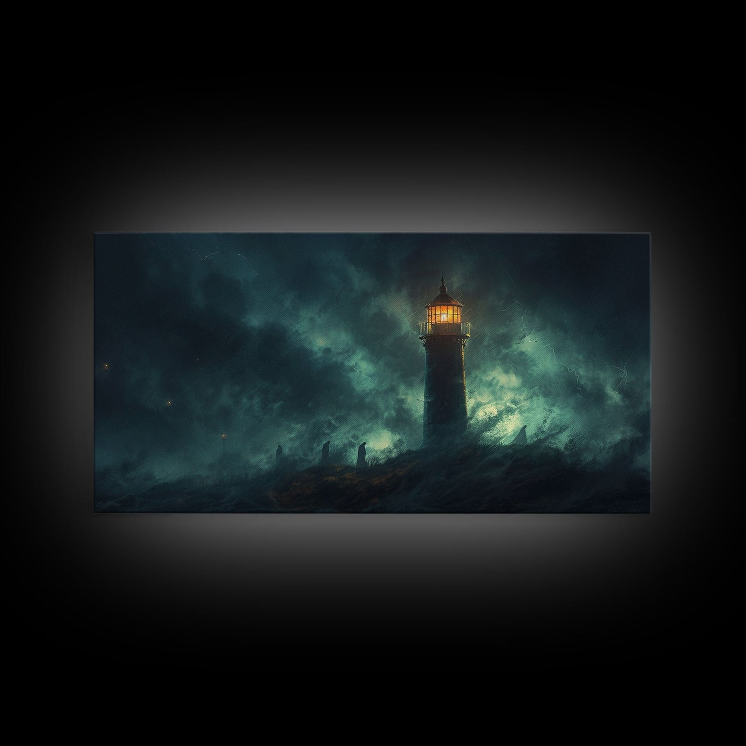 Spooky Haunted Light House Framed Canvas Print - Halloween Decor - Spooky Season Wall Art - Halloween Unique Wall Decor - 10x20 Inches / No Frame - Stretched Canvas Only is backordered and will ship as soon as it is back in stock.