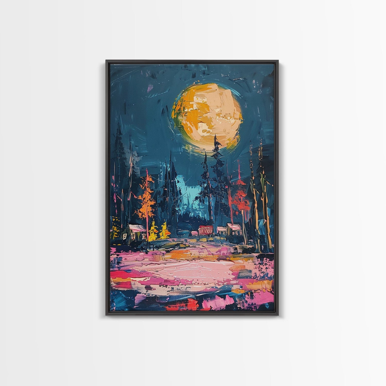 Spooky Moonlit Forest Framed Canvas Print, Halloween Wall Art, Haunted Landscape, Home Decor, Above Sofa Art, Gothic Artwork, Living Room
