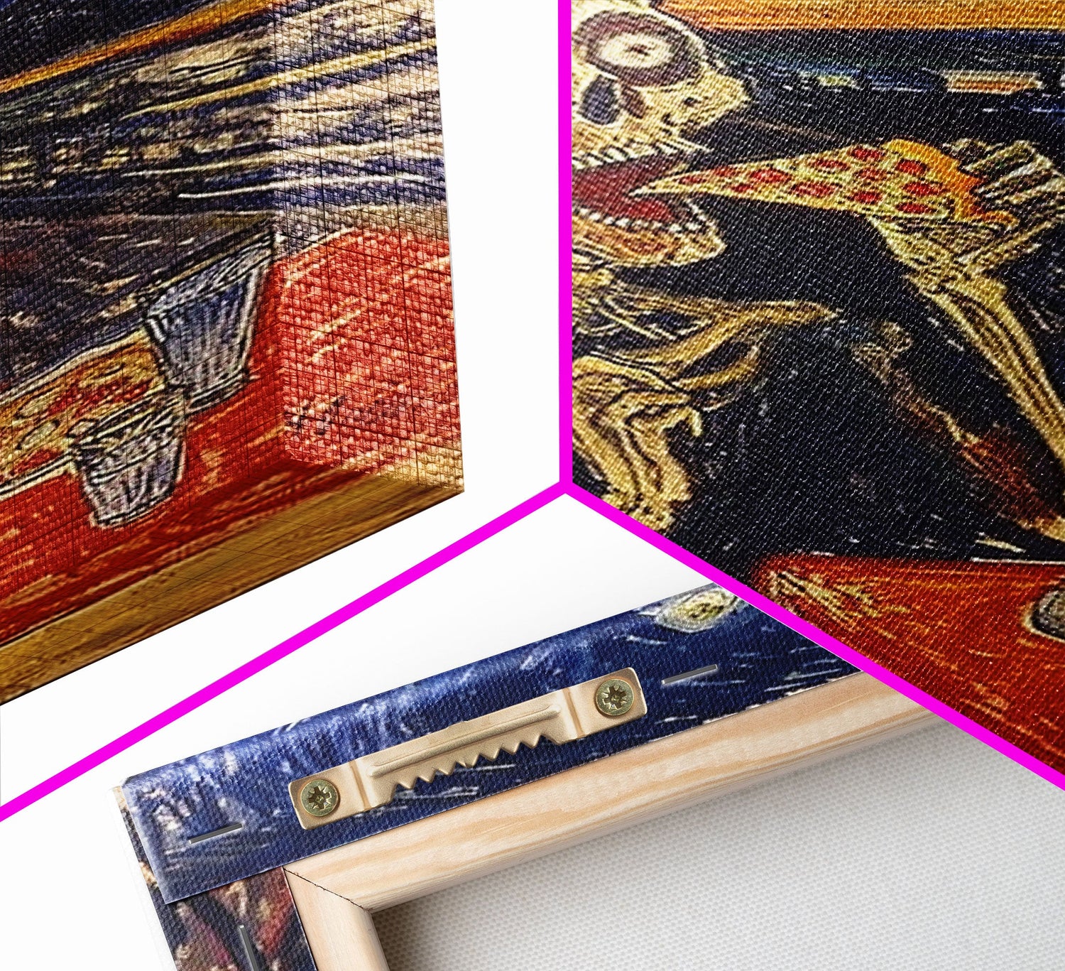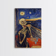 Spooky Skeleton Dude Eatin' a Pizza, Starry Night Inspired Funny Halloween Art, Framed Canvas Print - 8x12 Inches / No Frame - Stretched Canvas Only is backordered and will ship as soon as it is back in stock.
