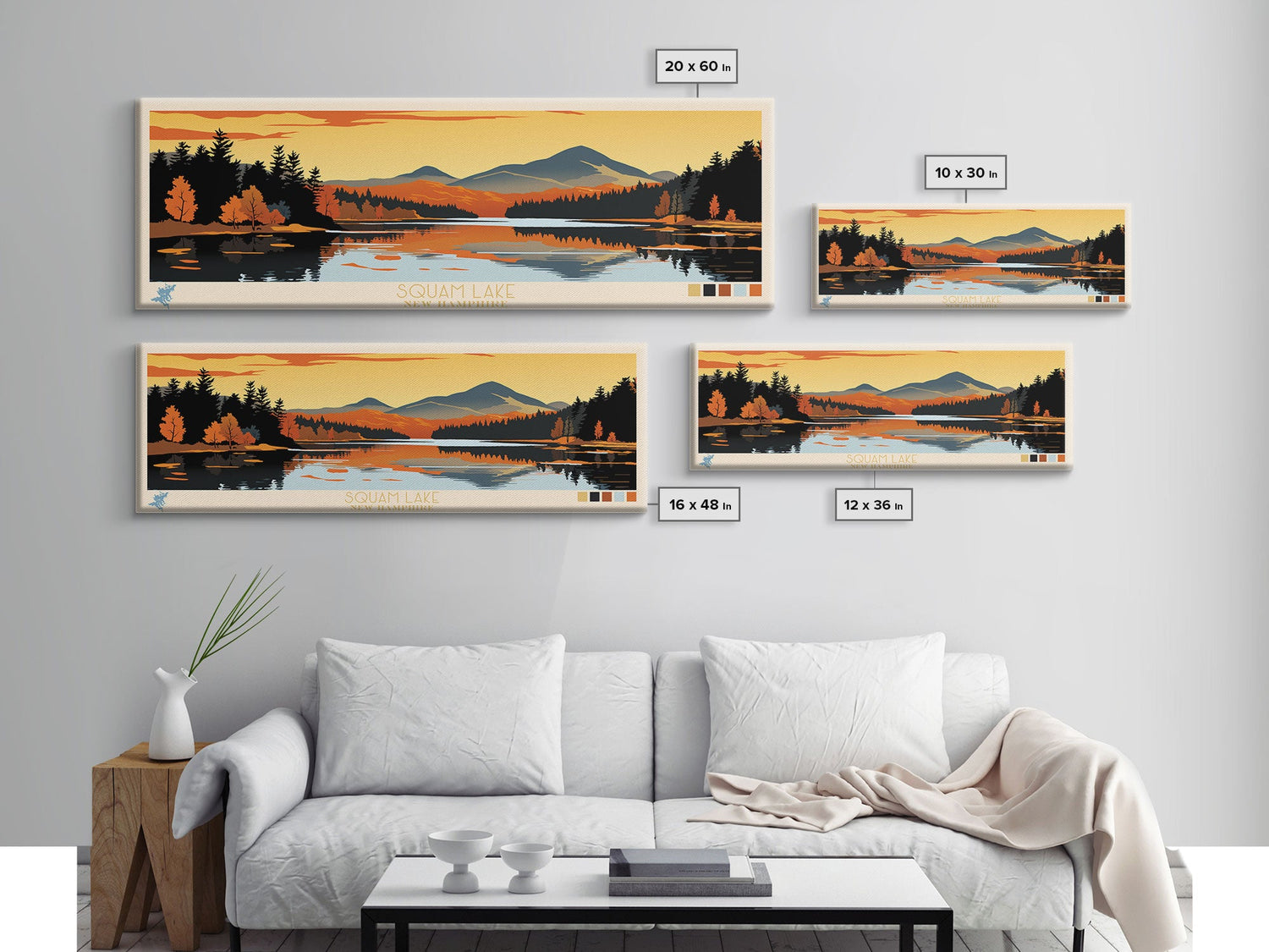 Squam Lake, New Hampshire Framed Canvas Print, Lake House Art, Midcentury Modern Decor, Pop Art, Travel Poster, Living Room Wall Art - 10x30 Inches / No Frame - Stretched Canvas Only is backordered and will ship as soon as it is back in stock.