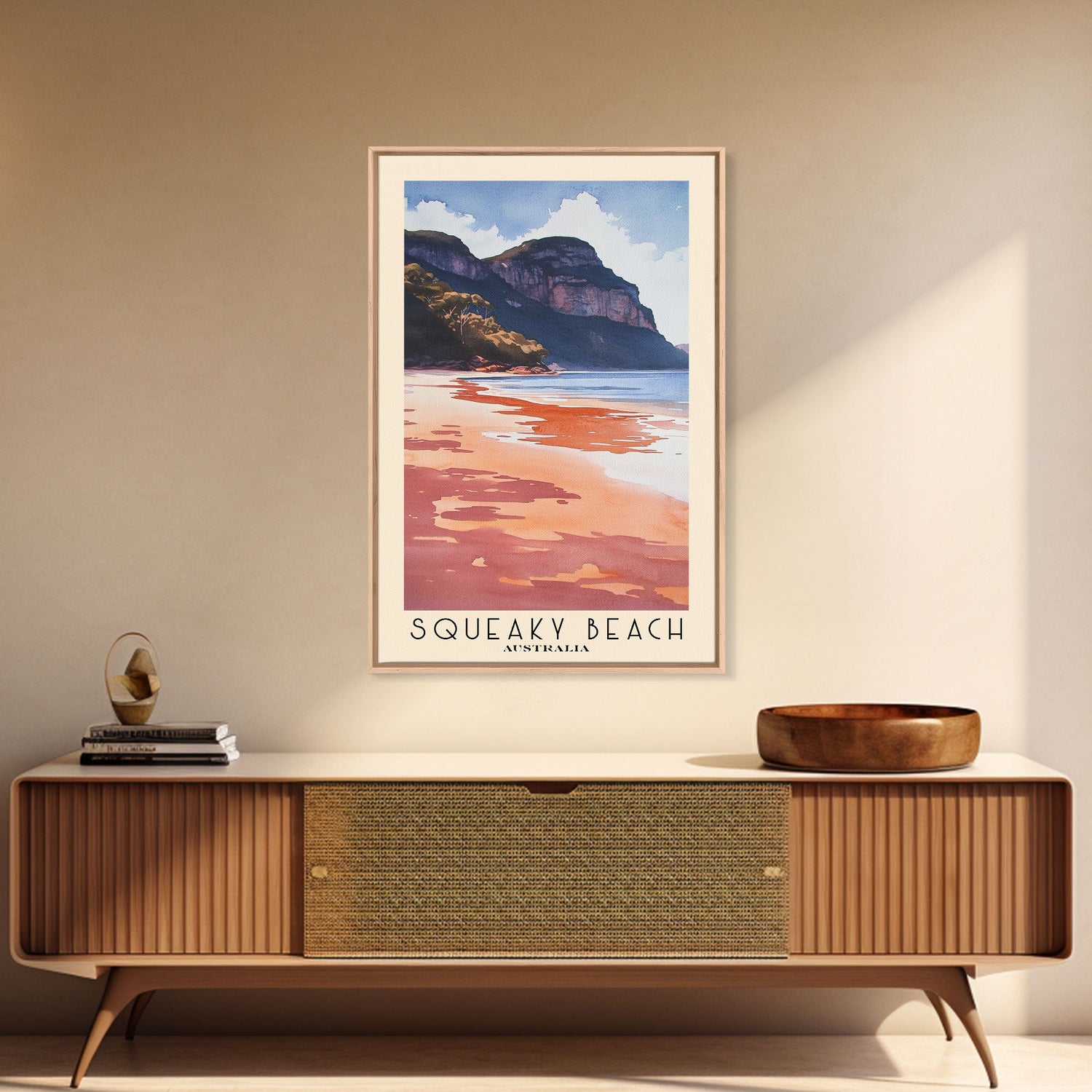 Squeaky Beach, Australia Watercolor Print, Vacation Gift, Australia Wall Art, Beach Painting, Beach Decor, Large Wall Art, Wood Frame Art