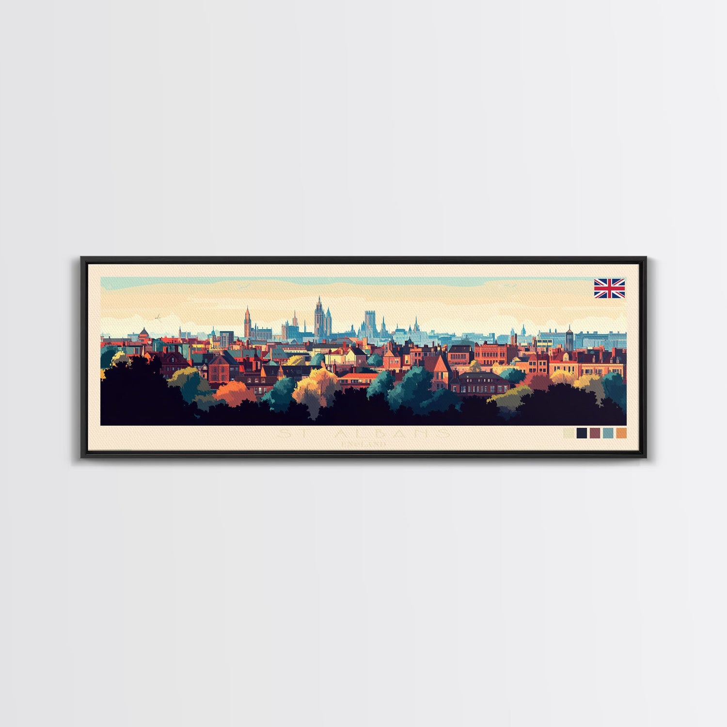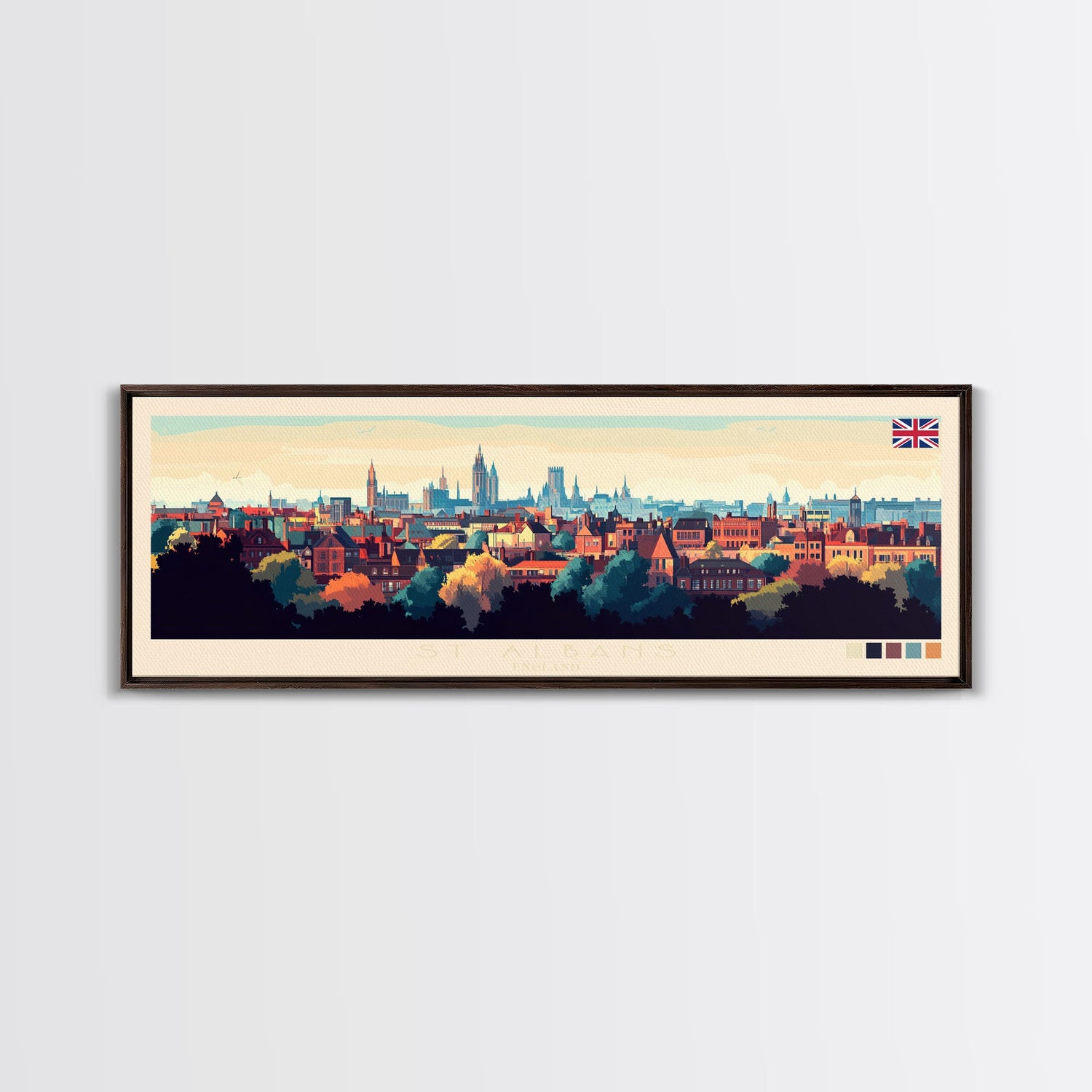 St Albans, England Travel Poster Panoramic Canvas Print, St Albans, England Painting, England Art, St Albans Travel Art, Guest Room Painting