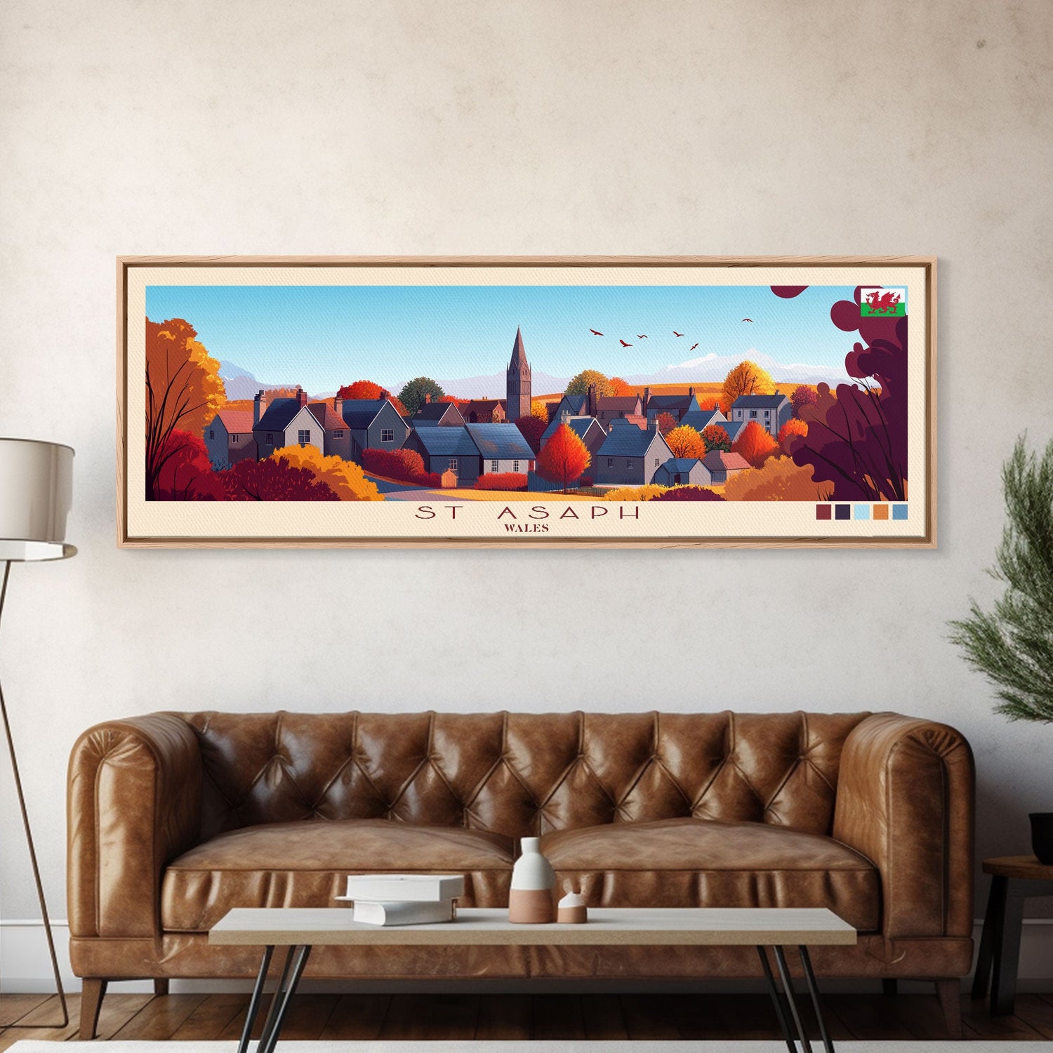 St Asaph, Wales Panoramic Travel Poster Canvas Print, St Asaph, Wales Painting, Wales Art, St Asaph Travel Art, Guest Room Painting