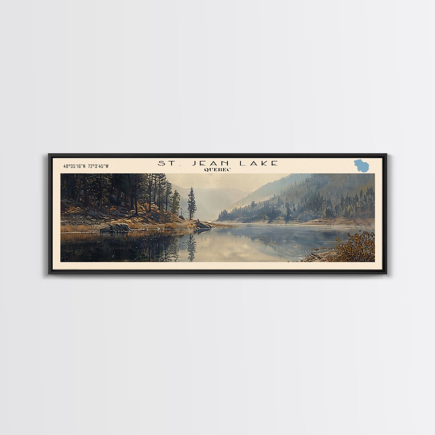 St. Jean Lake Panoramic Framed Canvas Print, Lake House Decor, Wall Art, Travel Poster, Beautiful Lake Scene, Bedroom Decor