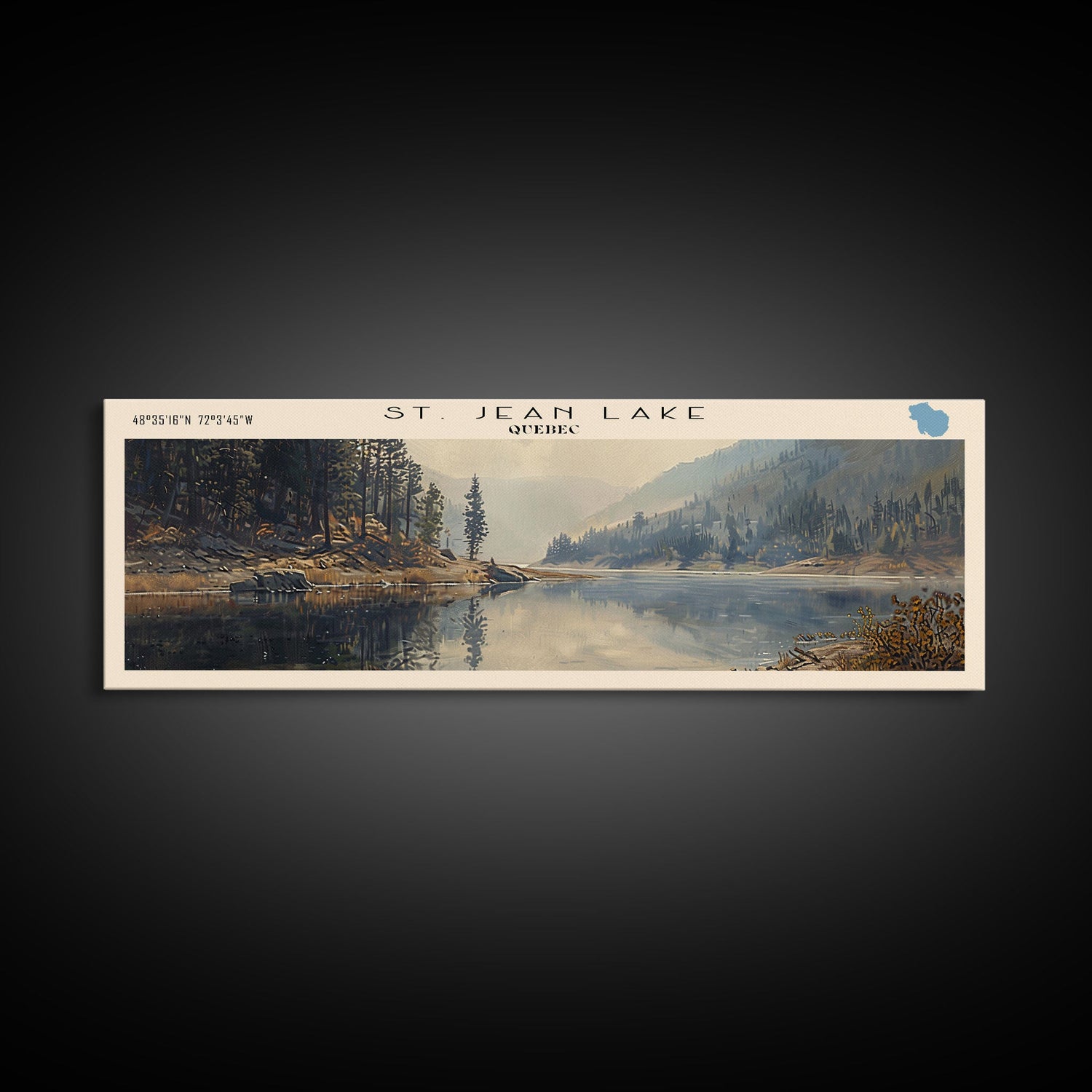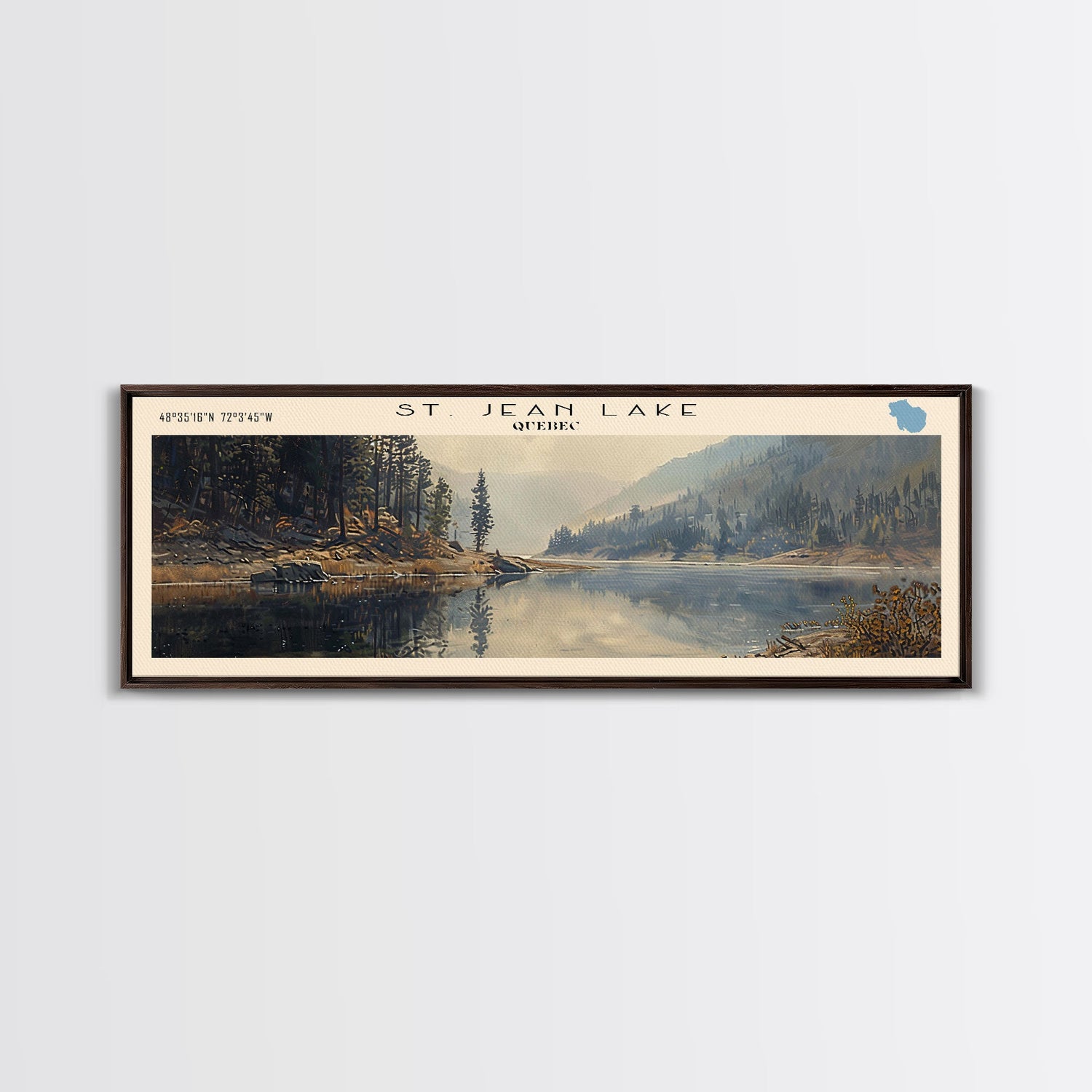 St. Jean Lake Panoramic Framed Canvas Print, Lake House Decor, Wall Art, Travel Poster, Beautiful Lake Scene, Bedroom Decor - 10x30 Inches / No Frame - Stretched Canvas Only is backordered and will ship as soon as it is back in stock.