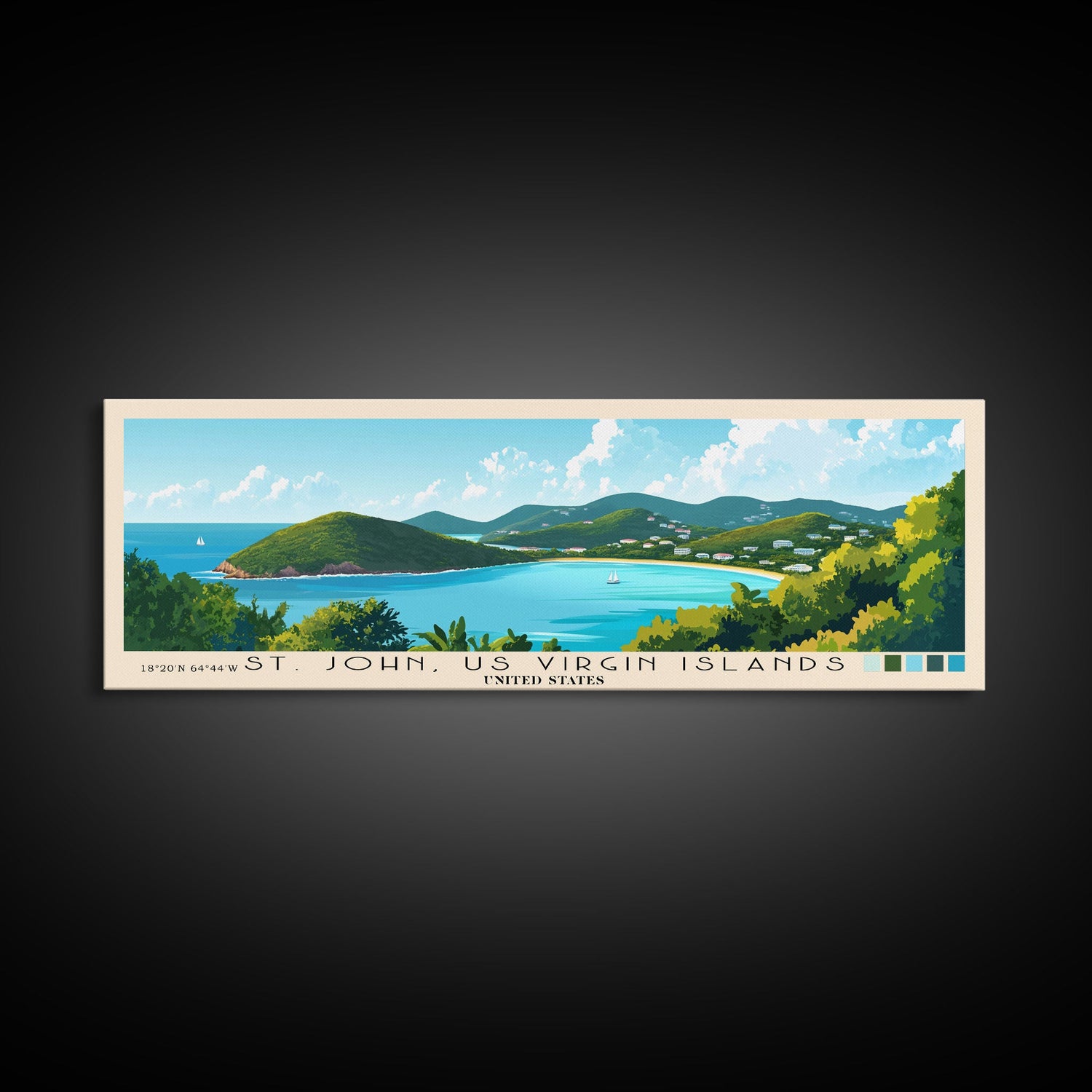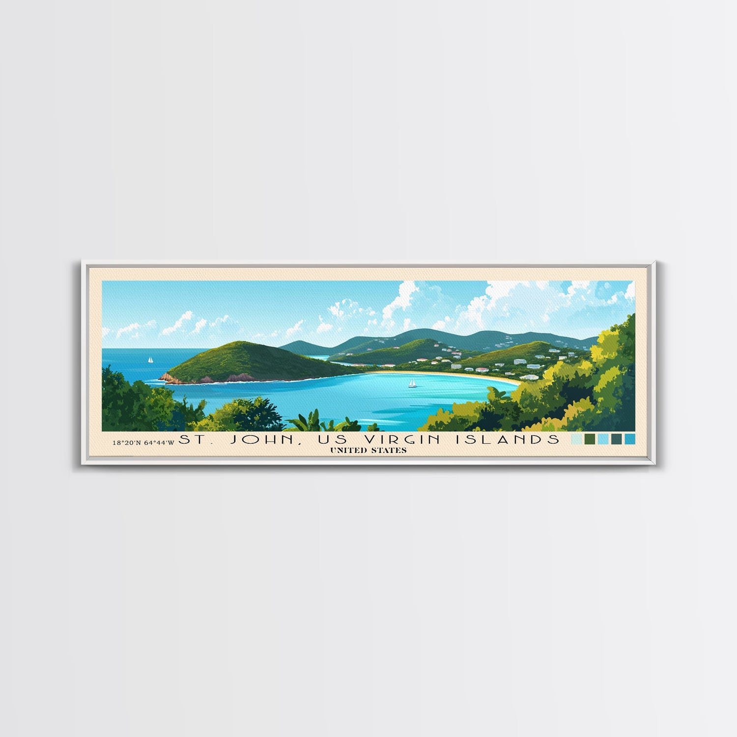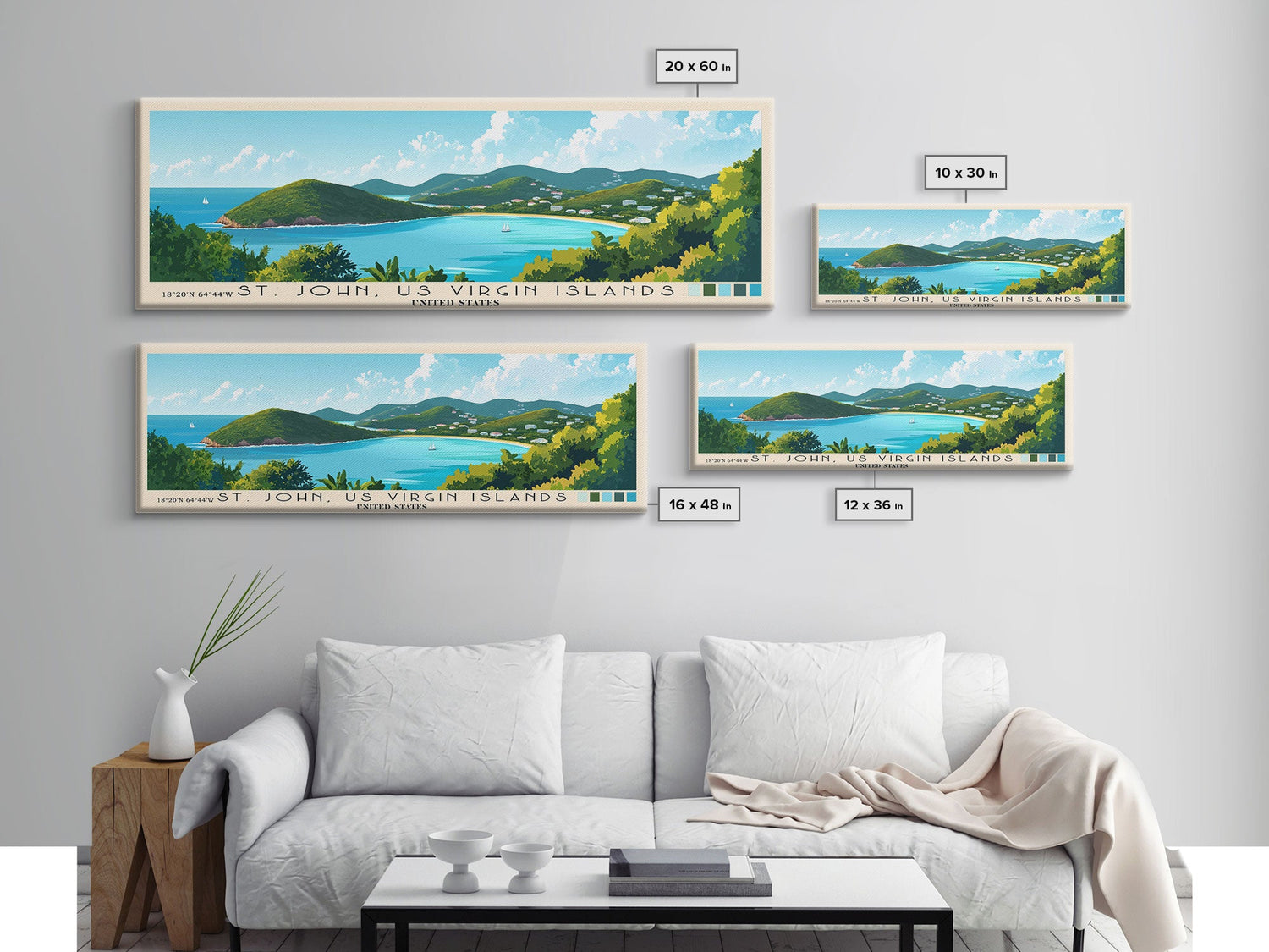 St. John, US Virgin Islands, United States Panoramic Beach Print, Vacation Gift, United States Wall Art, Framed Canvas Print, Framed Beach Painting