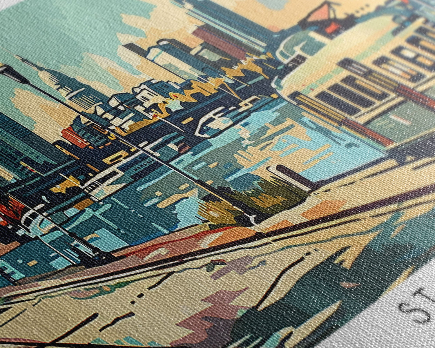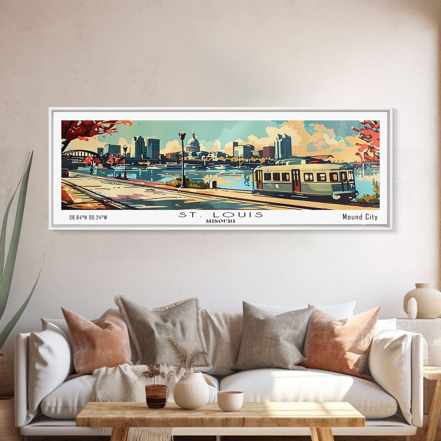 St. Louis Missouri Panoramic Painting, Mid Century Modern Framed Canvas Print, Retro Pop Art Travel Poster, Living Room Wall Art and Office Decor