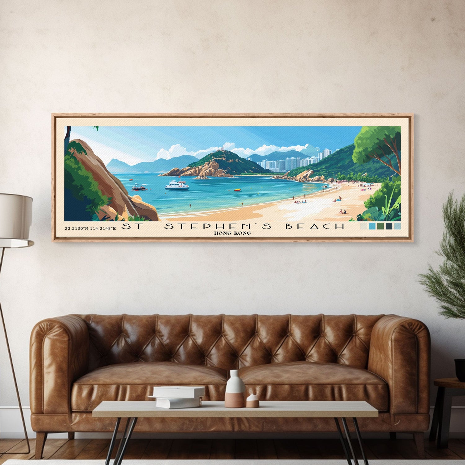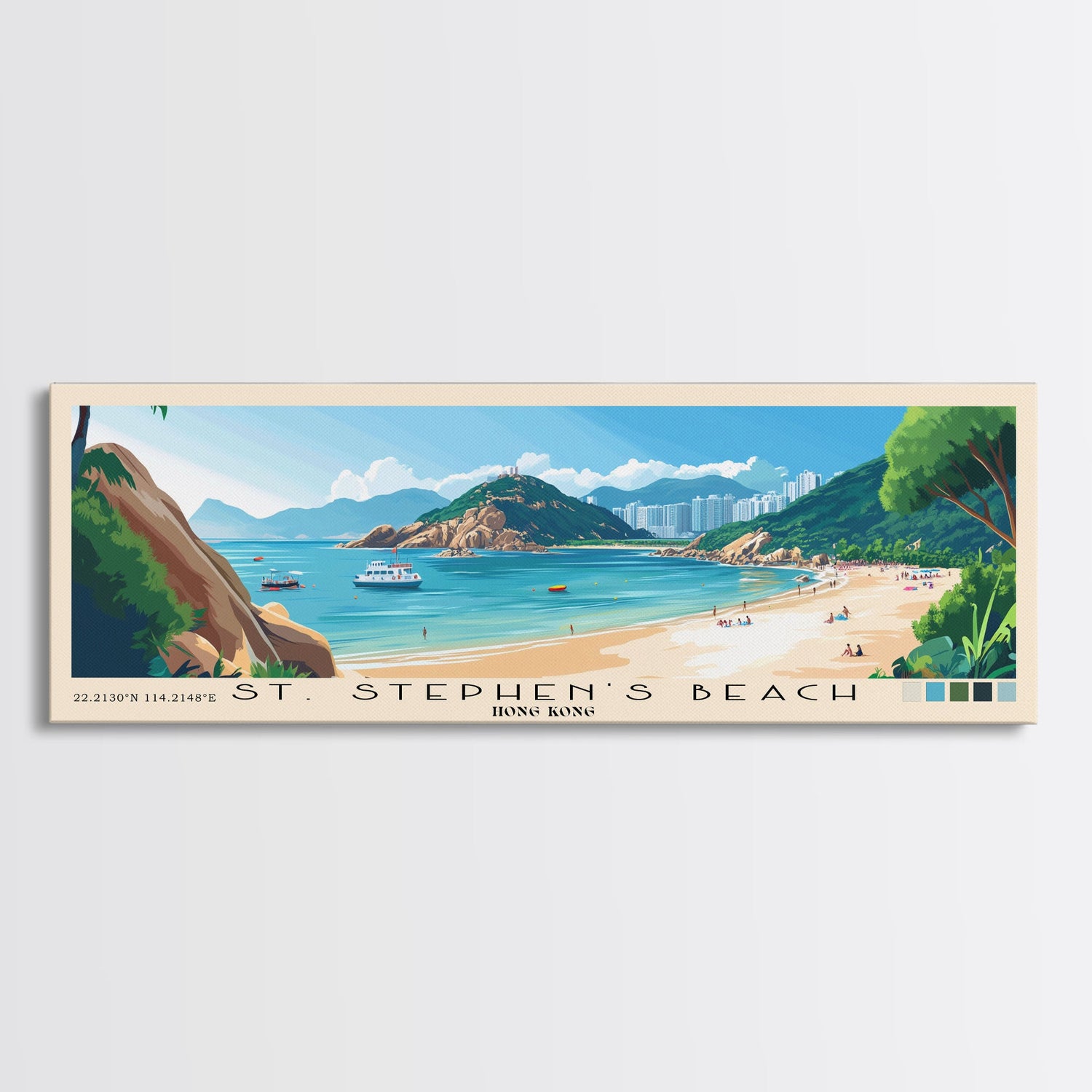 St. Stephen's Beach, Hong Kong Panoramic Print, Vacation Gift, Hong Kong Wall Art, Vacation Wall Art, Vacatation Memories, Beach Decor, Beach Or Lakehouse Art - 10x30 Inches / No Frame - Stretched Canvas Only is backordered and will ship as soon as it is back in stock.