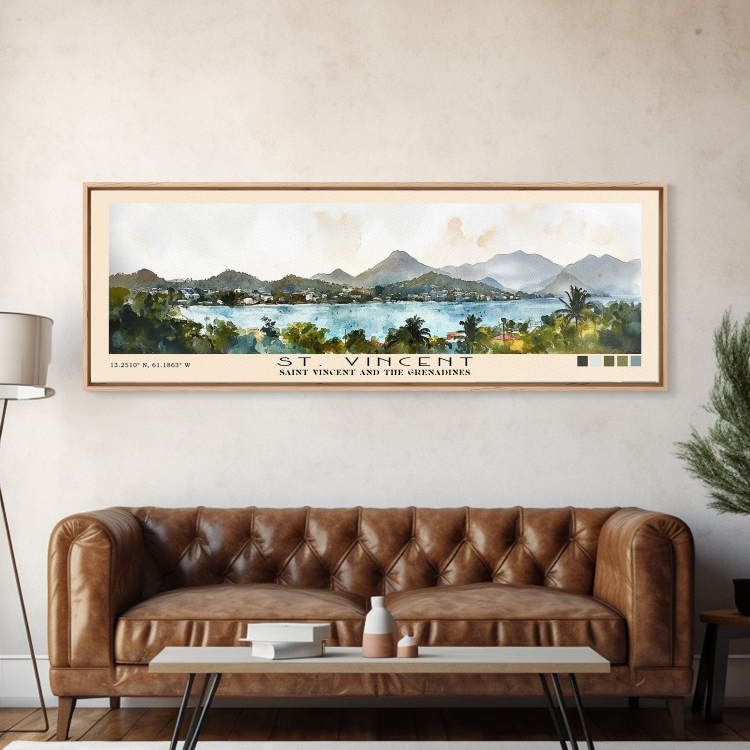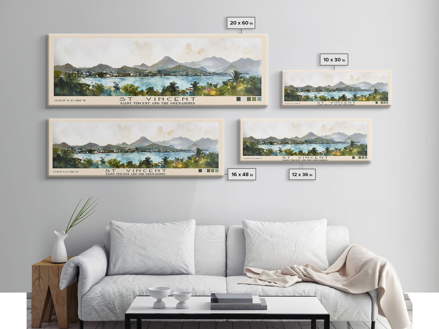St. Vincent, Saint Vincent and the Grenadines Watercolor Beach Print, Vacation Gift, Saint Vincent and the Grenadines Wall Art, Beach Painting, Beach Decor, Beach Painting - 10x30 Inches / No Frame - Stretched Canvas Only is backordered and will ship as soon as it is back in stock.