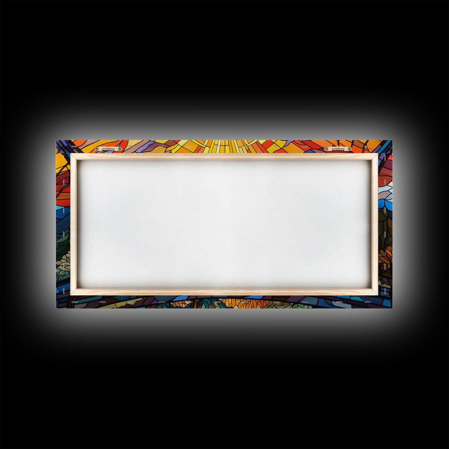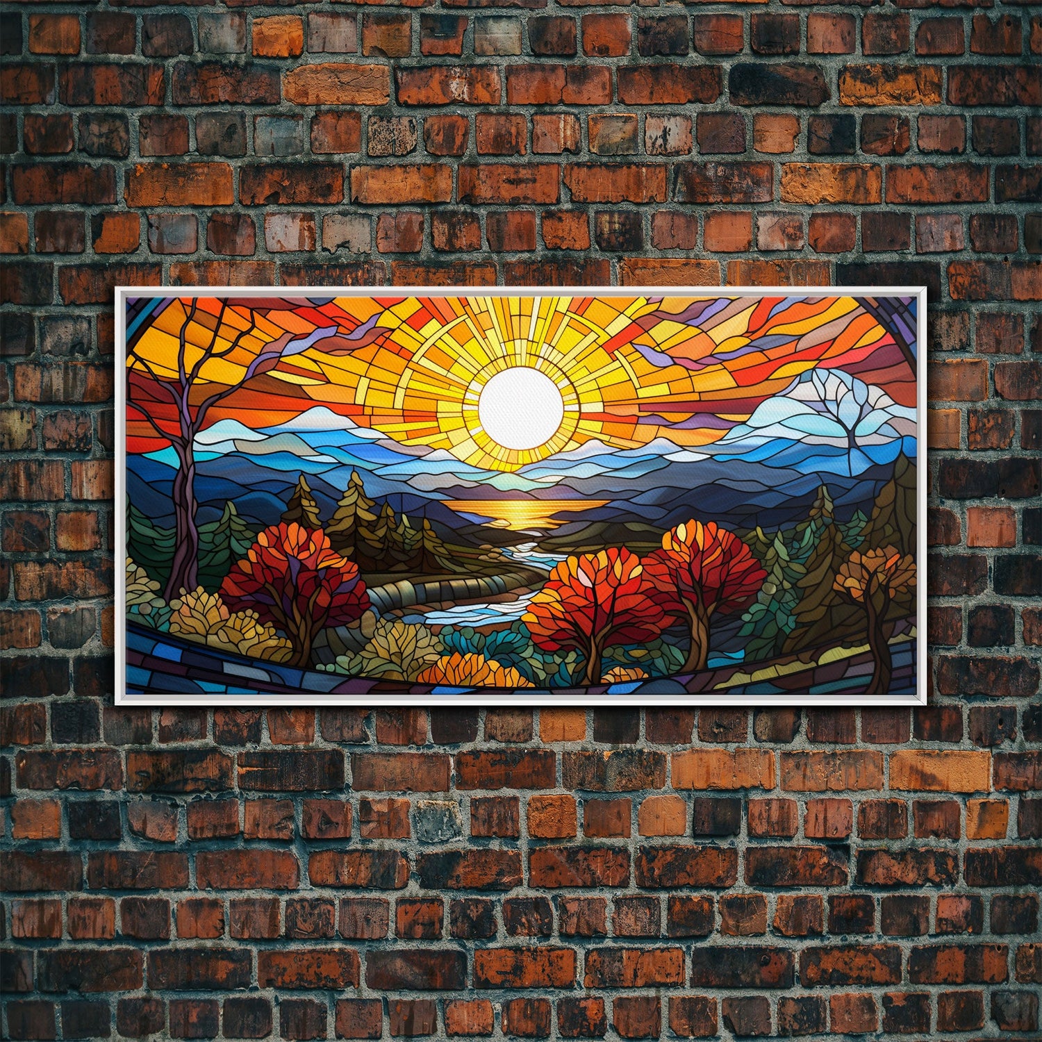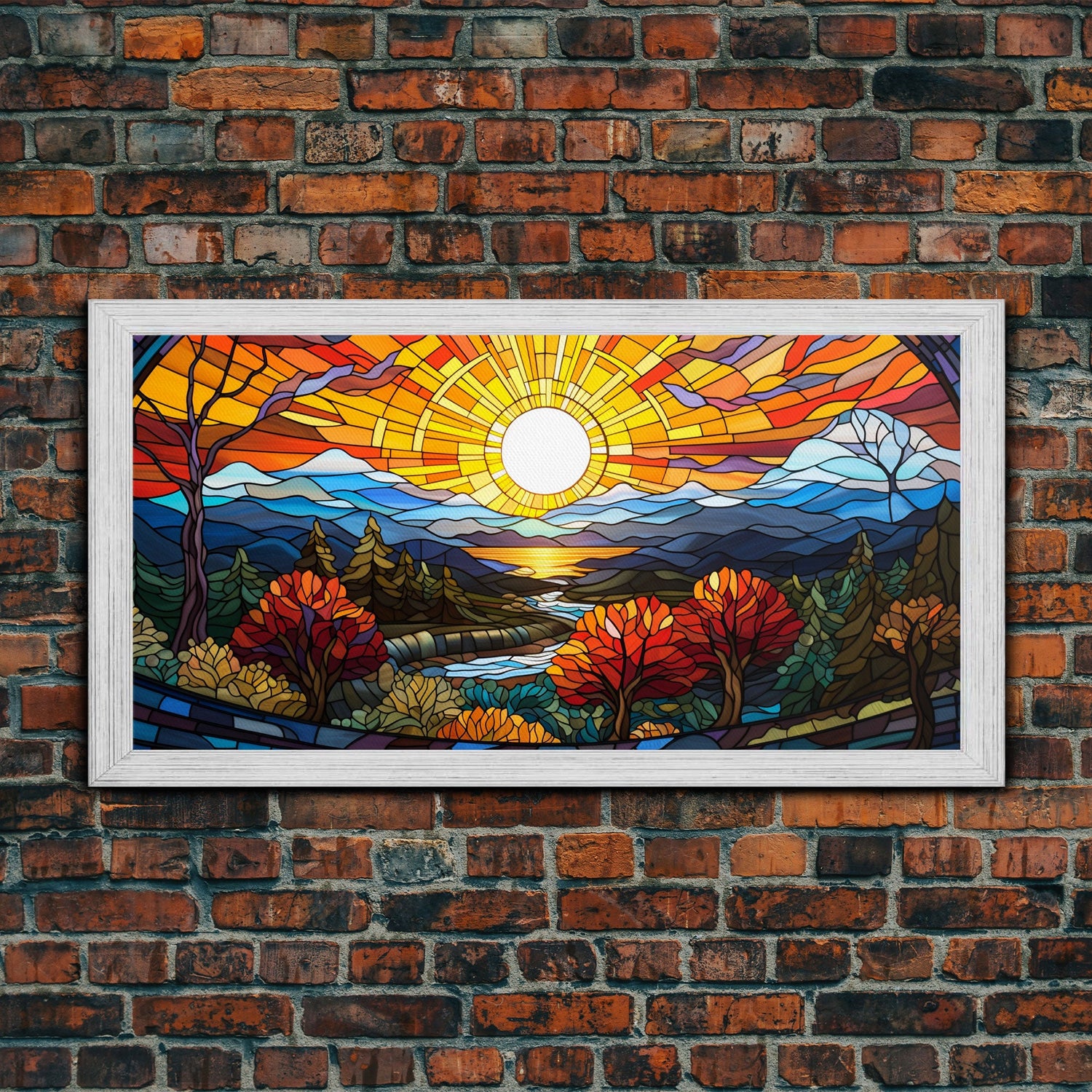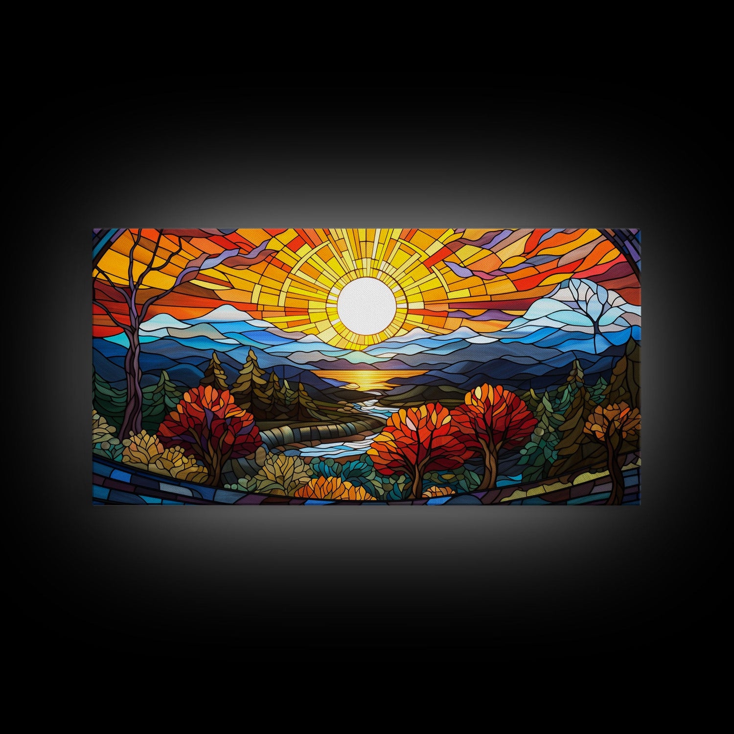Stained Glass Wall Art, Abstract Wall Print, Sunset Art, Canvas Print, Wall Hanging, Panoramic Art, Bookshelf Decor, New Home Gift Ideas