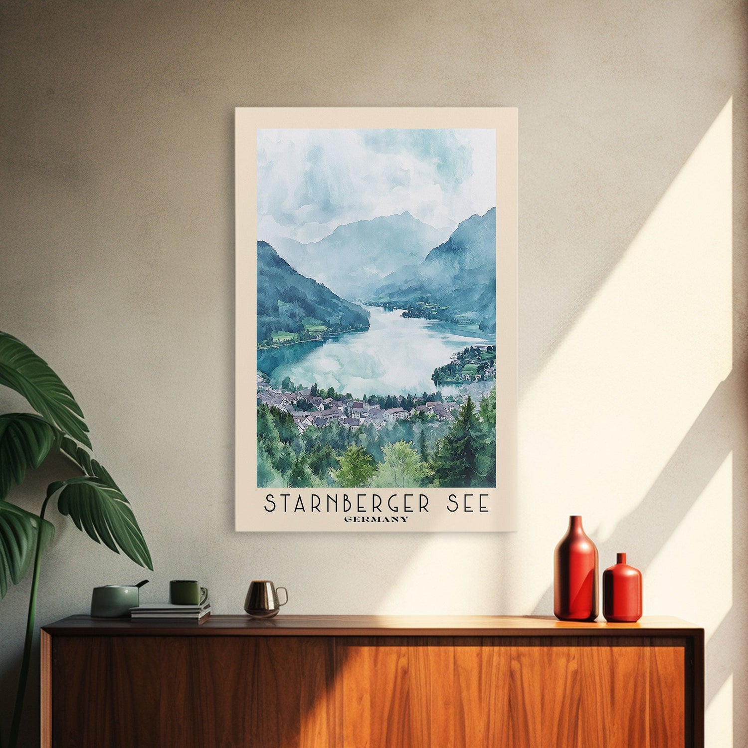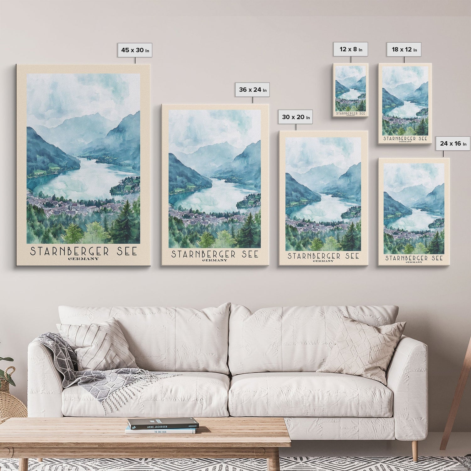 Starnberger See, Germany Watercolor Print, Vacation Gift, Germany Wall Art, Beach Painting, Beach Decor, Large Wall Art, Wood Frame Art - 8x12 Inches / No Frame - Stretched Canvas Only is backordered and will ship as soon as it is back in stock.