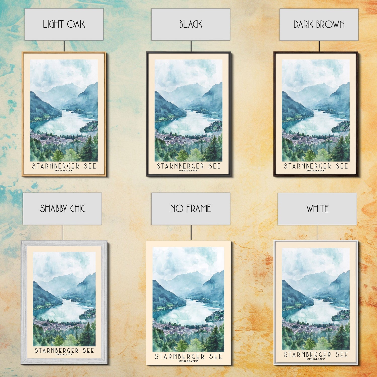 Starnberger See, Germany Watercolor Print, Vacation Gift, Germany Wall Art, Beach Painting, Beach Decor, Large Wall Art, Wood Frame Art