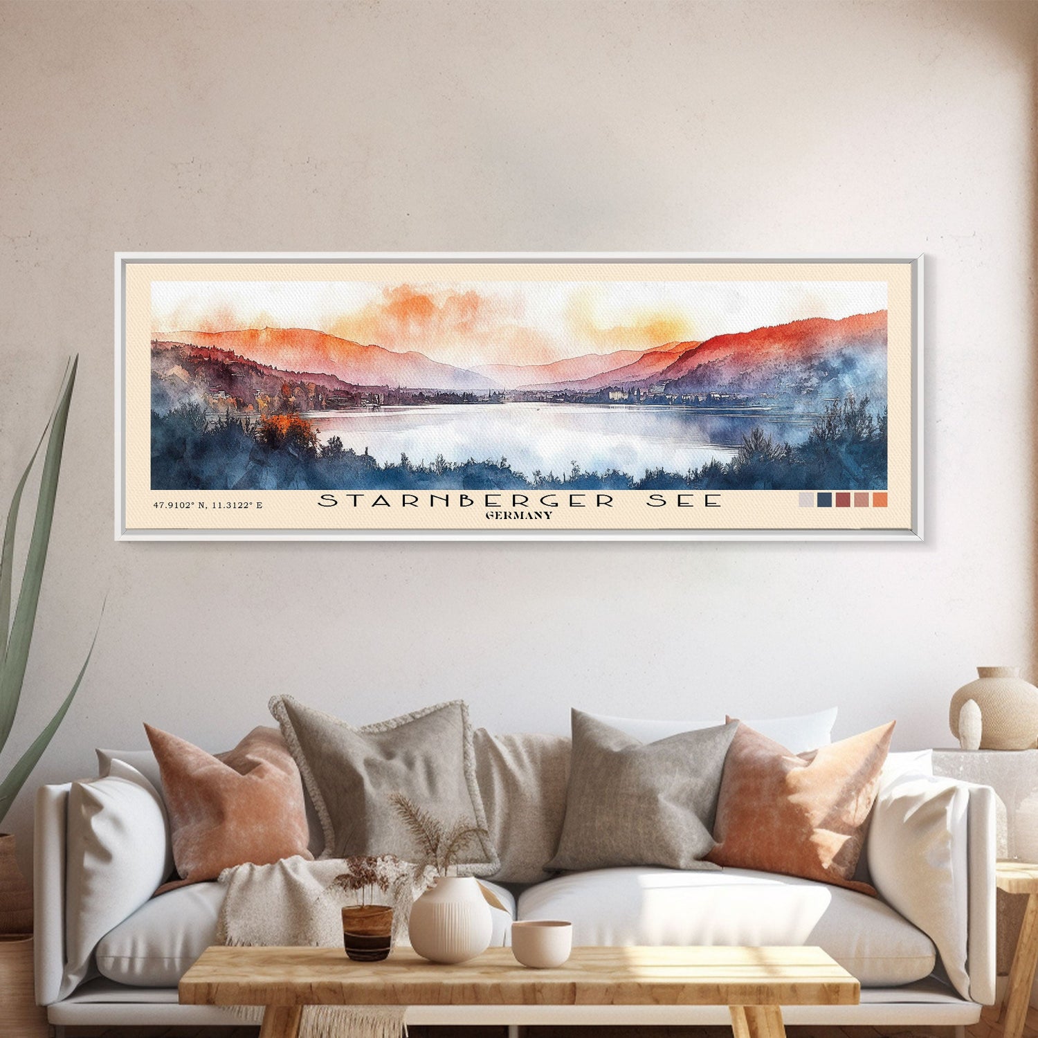 Starnberger See, Germany Watercolor Print, Vacation Gift, Germany Wall Art, Beach Painting, Beach Decor, Large Wall Art, Wood Frame Art - 10x30 Inches / No Frame - Stretched Canvas Only is backordered and will ship as soon as it is back in stock.