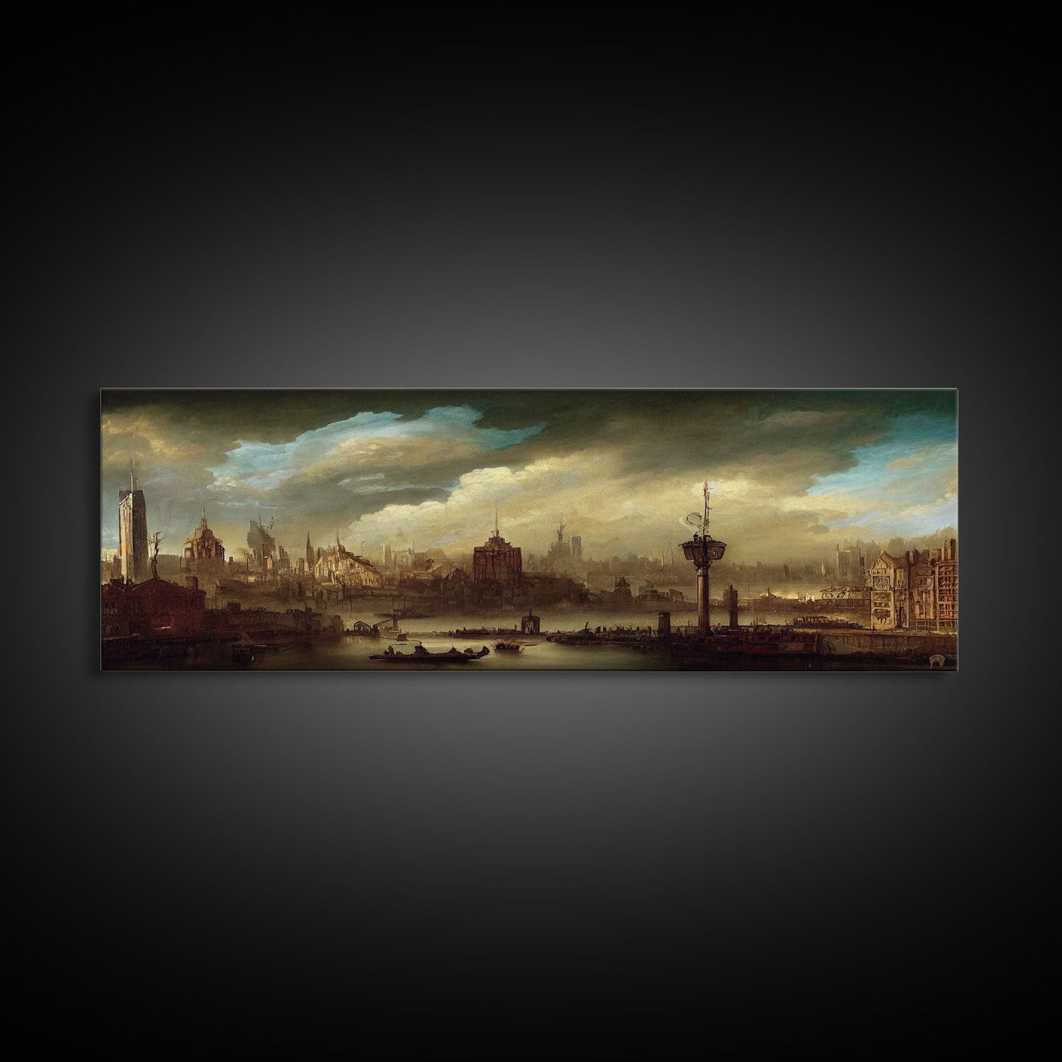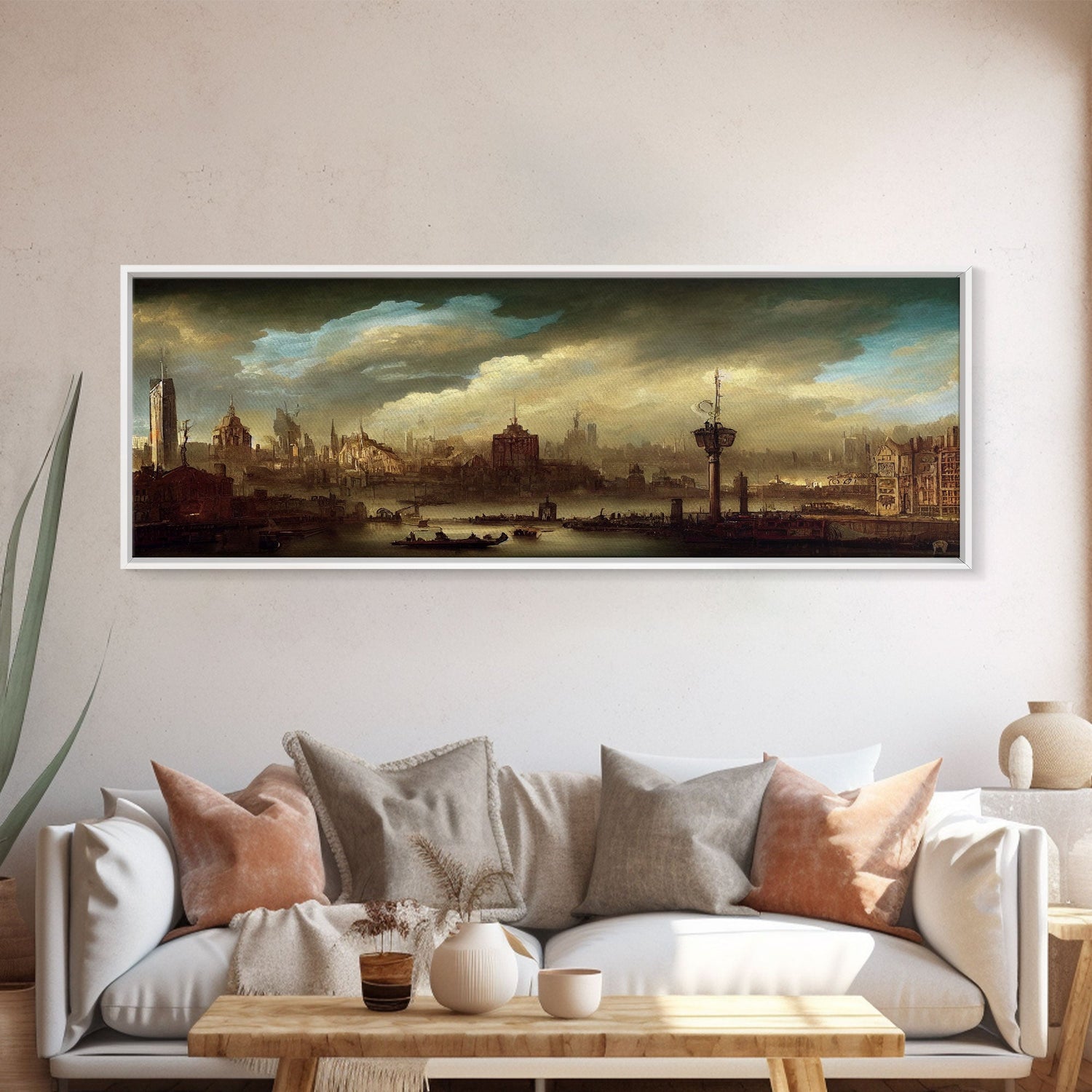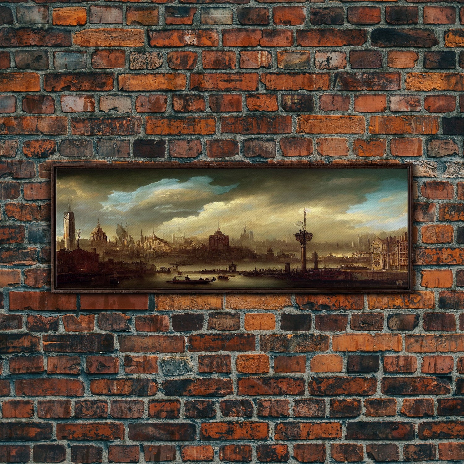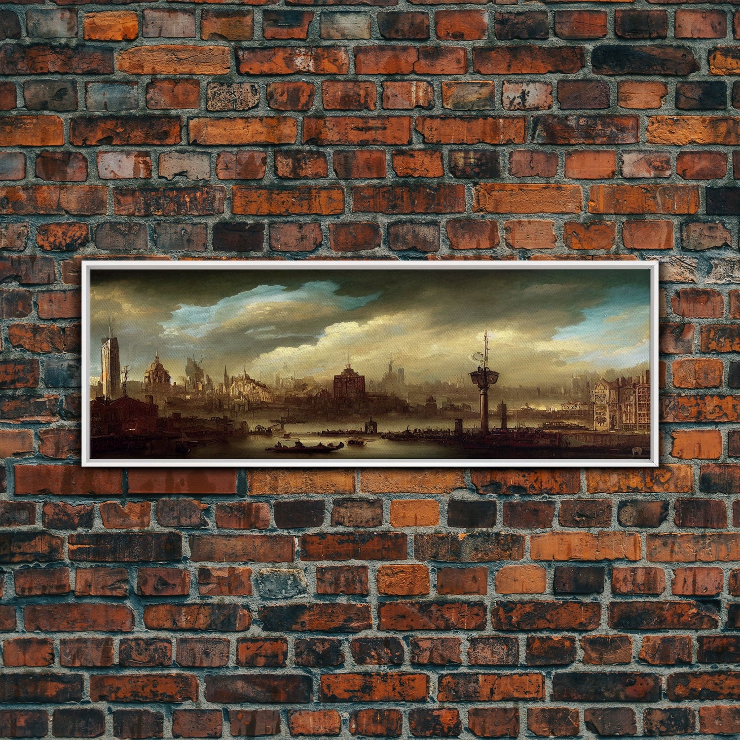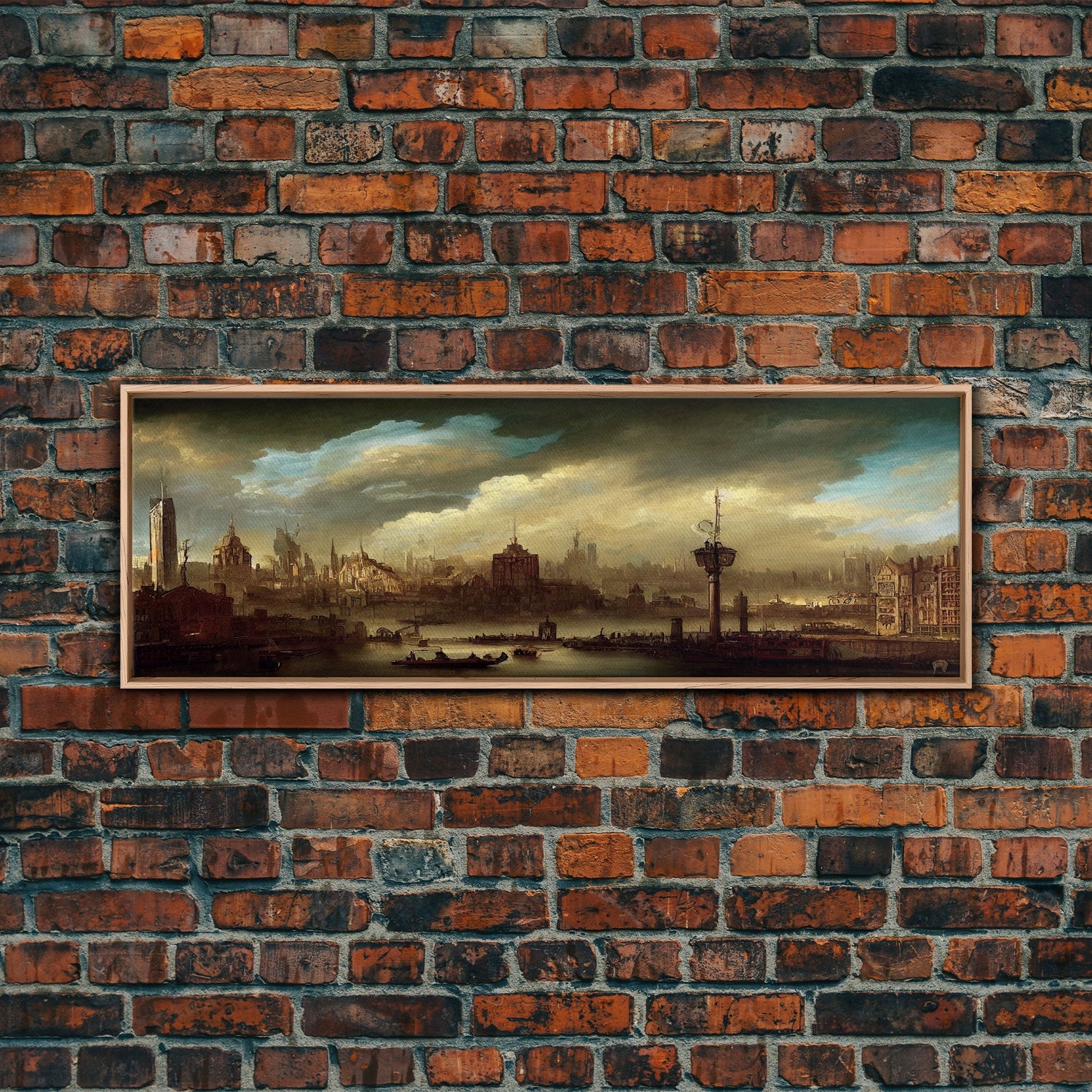 Steampunk Victorian Cityscape, Extra Large Wall Art, Framed Panoramic Canvas Print, Framed Wall Art