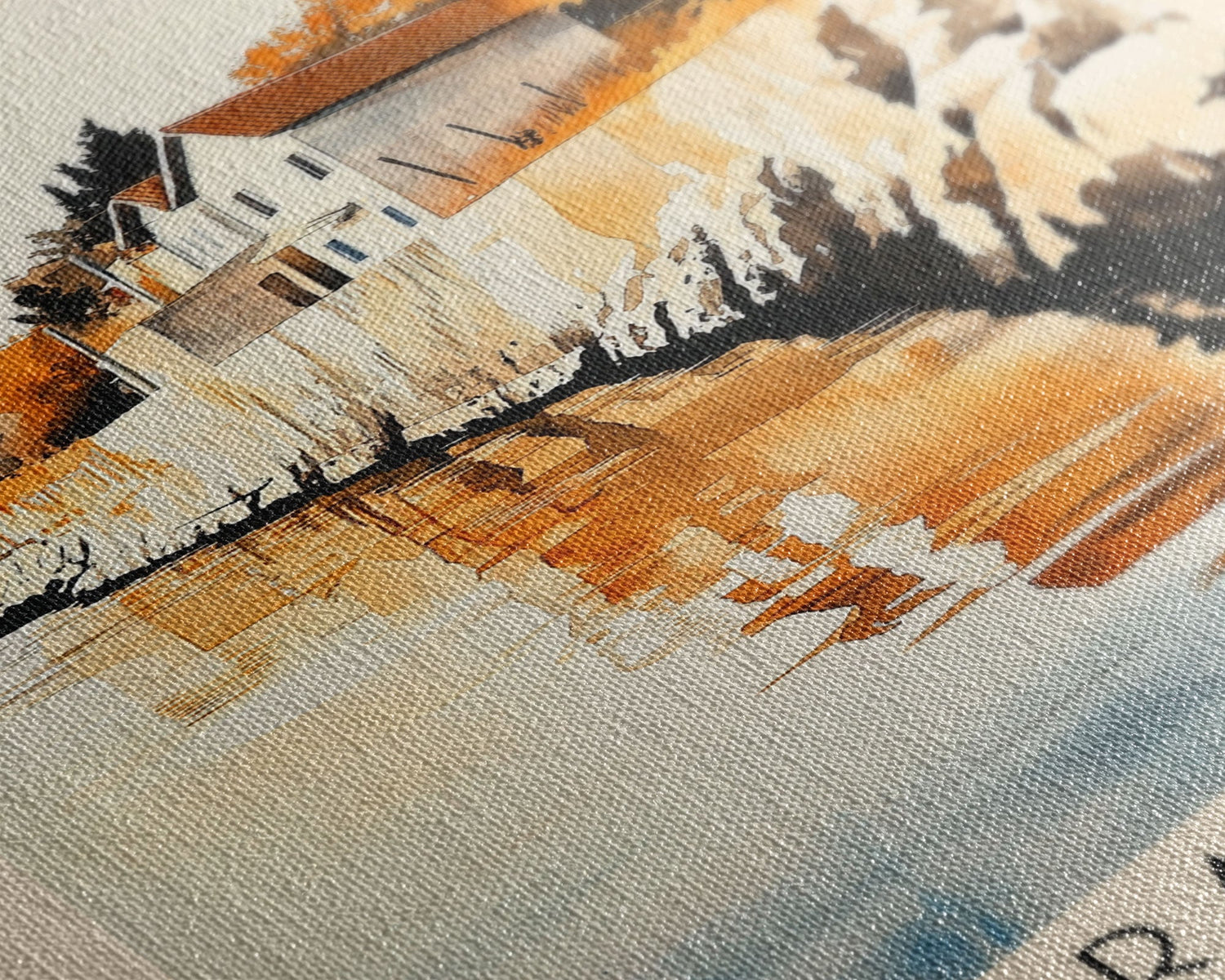 Most of our canvases are made in the USA, with the exception of canvases ordered with the light oak unstained frames, and any large canvases (24x48, 30x60, 16x48 and 20x60) ordered WITH a frame. These are temporarily made in and shipped from Europe, while we try to find a more consistent supplier in the USA.