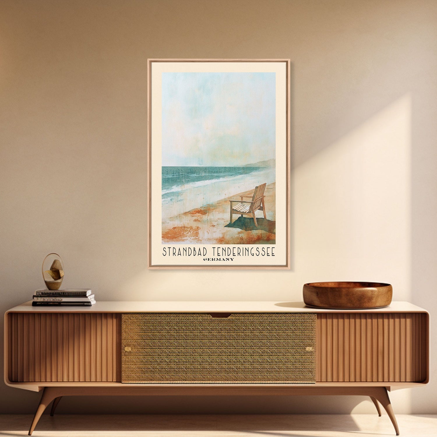 Strandbad Tenderingssee, Germany Watercolor Print, Vacation Gift, Germany Wall Art, Beach Painting, Beach Decor, Large Wall Art, Wood Frame Art