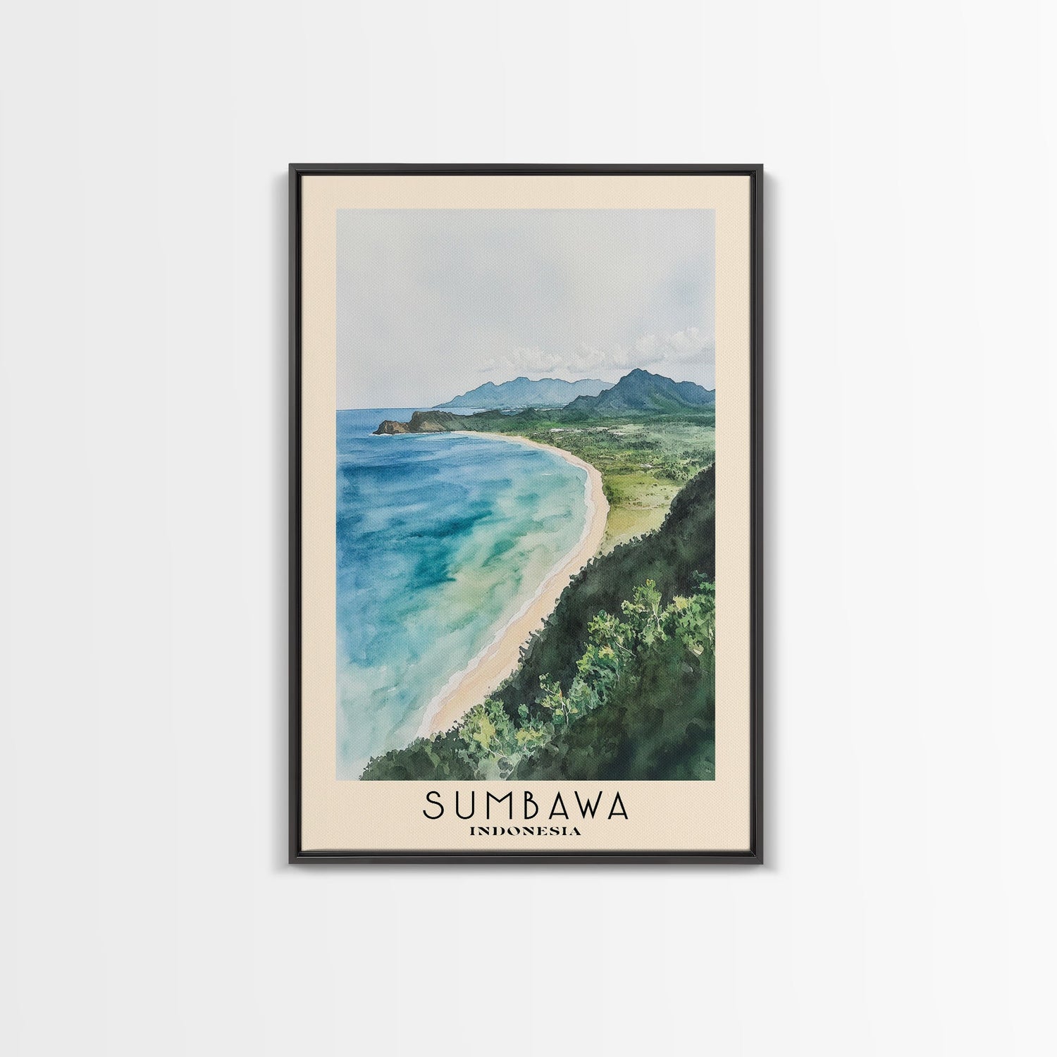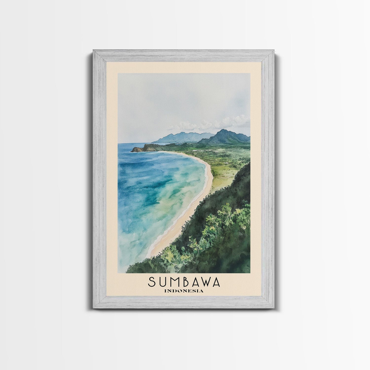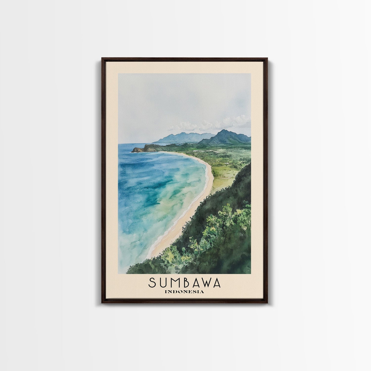 Sumbawa, Indonesia Watercolor Beach Print, Vacation Gift, Indonesia Wall Art, Beach Painting, Beach Decor, Beach Painting - 8x12 Inches / No Frame - Stretched Canvas Only is backordered and will ship as soon as it is back in stock.