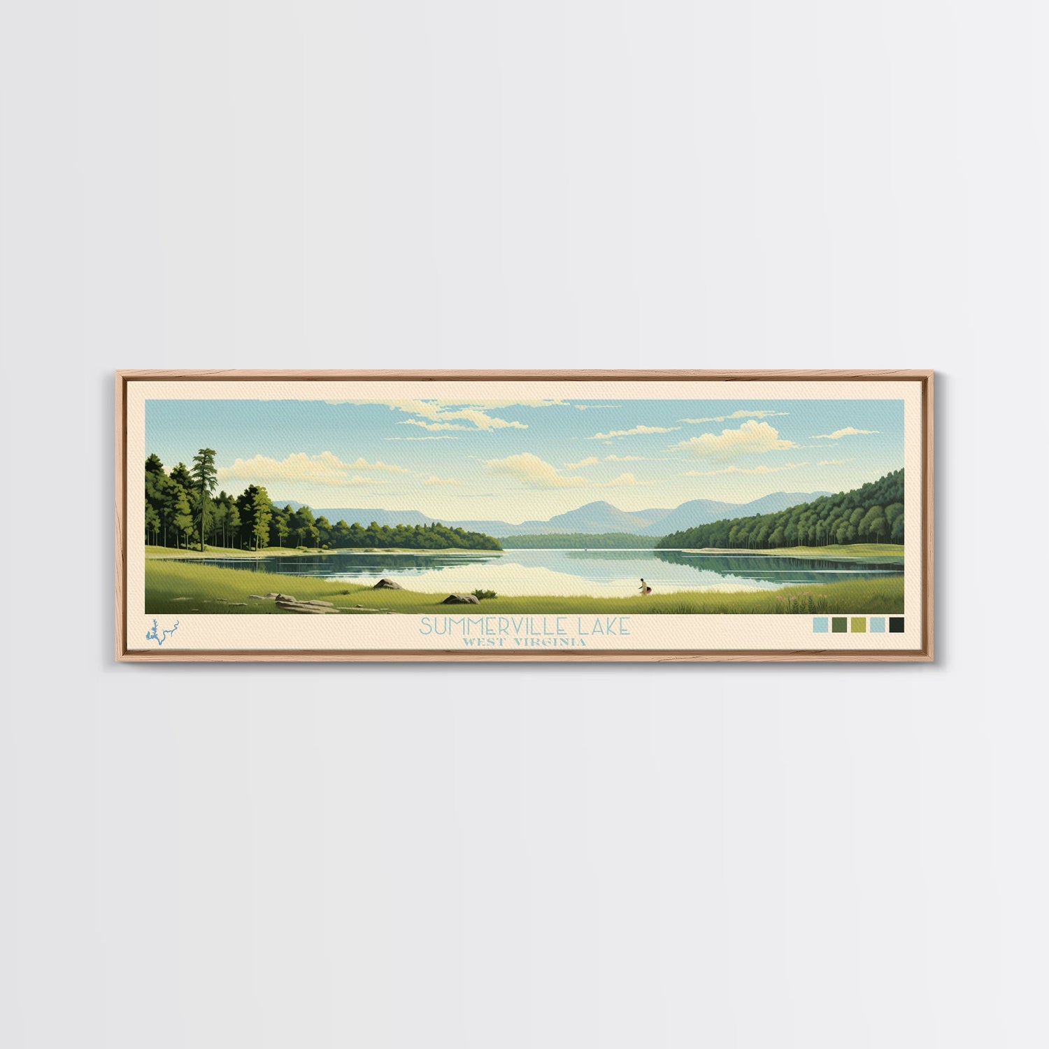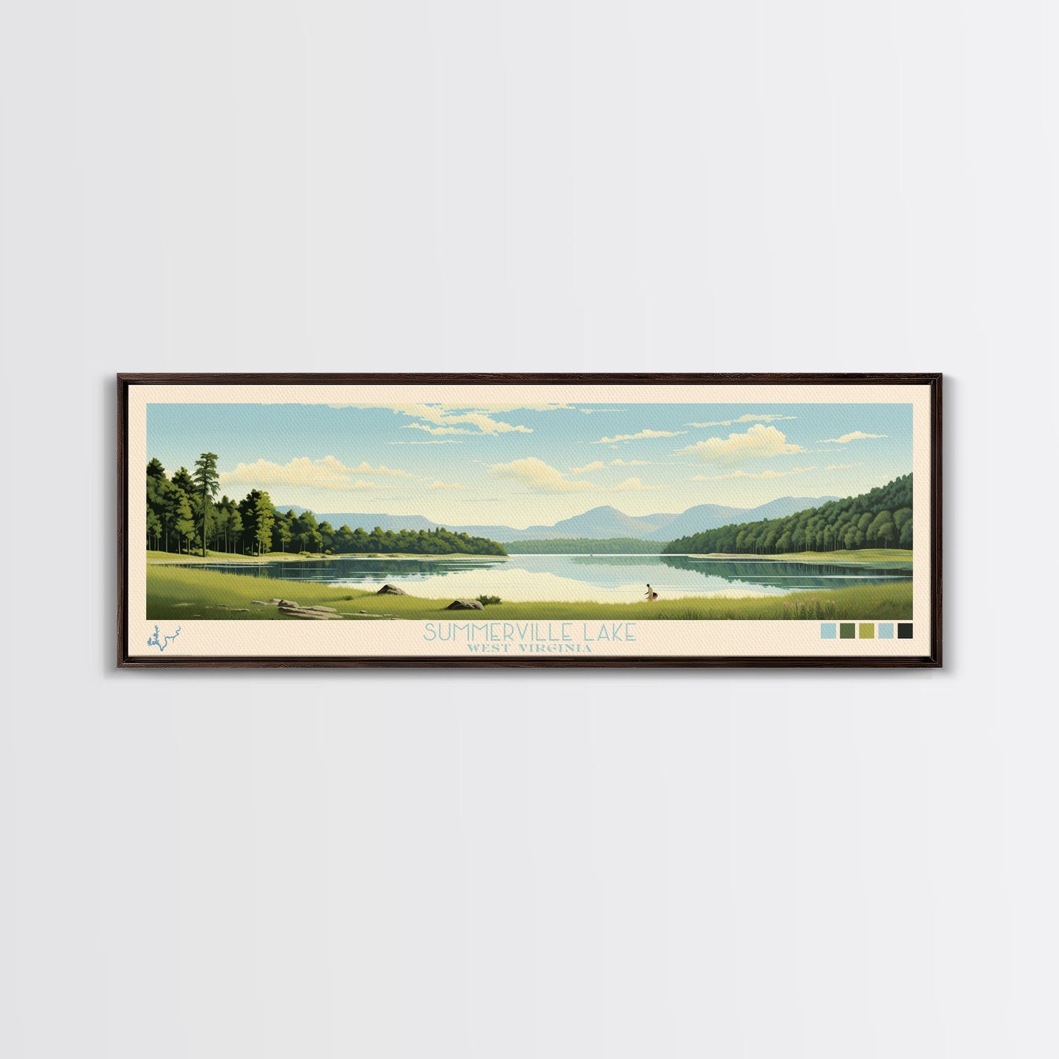 Summerville Lake, West Virginia Framed Canvas Print, Lake House Art, Midcentury Modern Decor, Pop Art, Travel Poster, Living Room Wall Art - 10x30 Inches / No Frame - Stretched Canvas Only is backordered and will ship as soon as it is back in stock.
