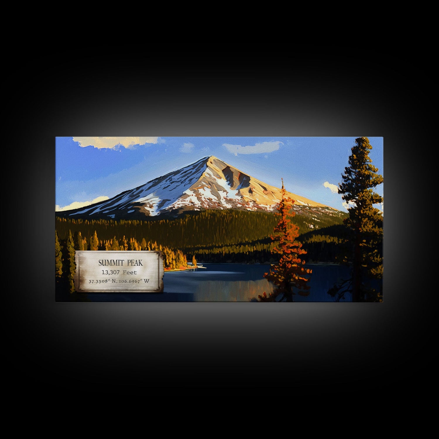 Summit Peak, Travel Poster Wall Art, Framed Canvas Print, American Mountains, Mountain Landscape Painting, Mountains of Colorado - 10x20 Inches / No Frame - Stretched Canvas Only is backordered and will ship as soon as it is back in stock.