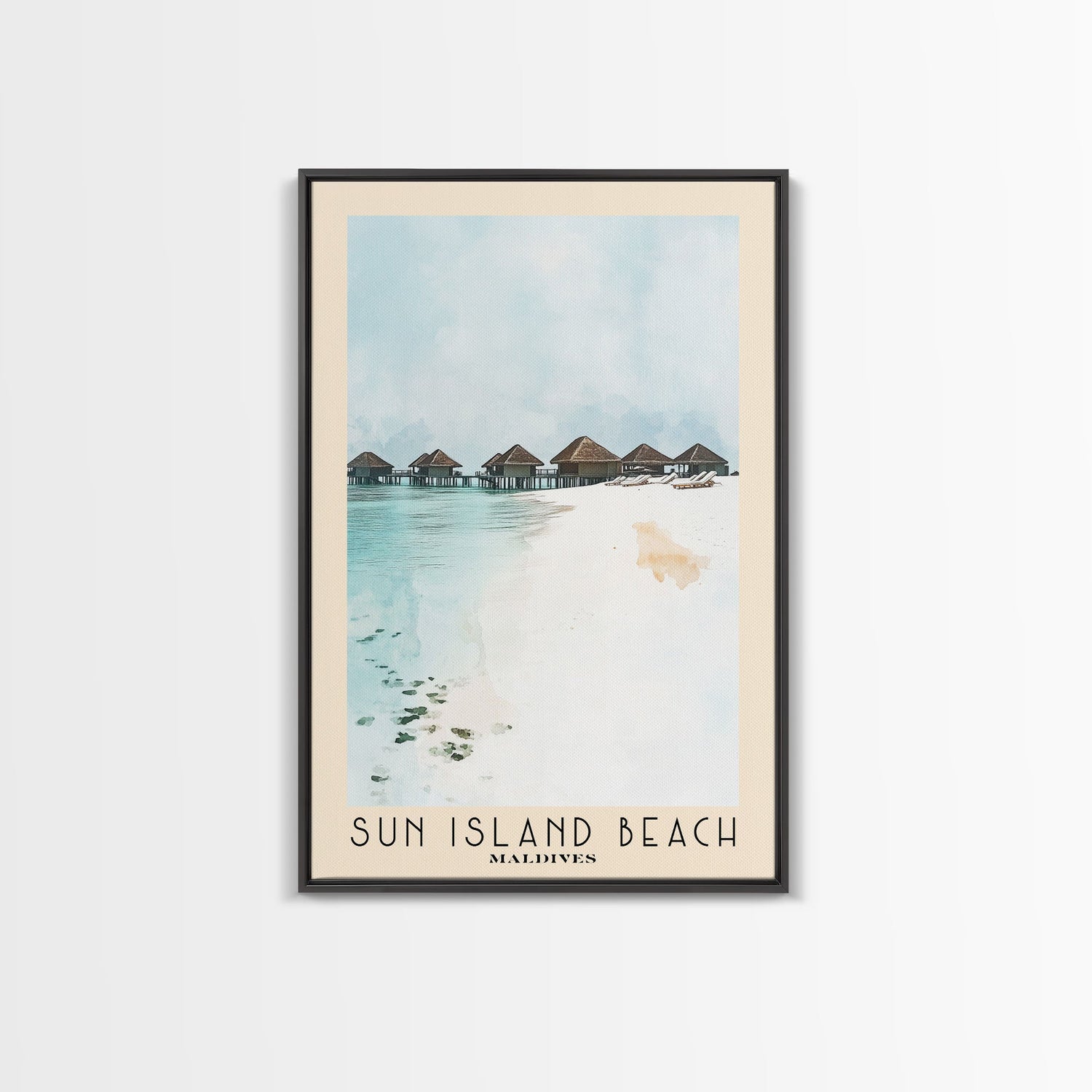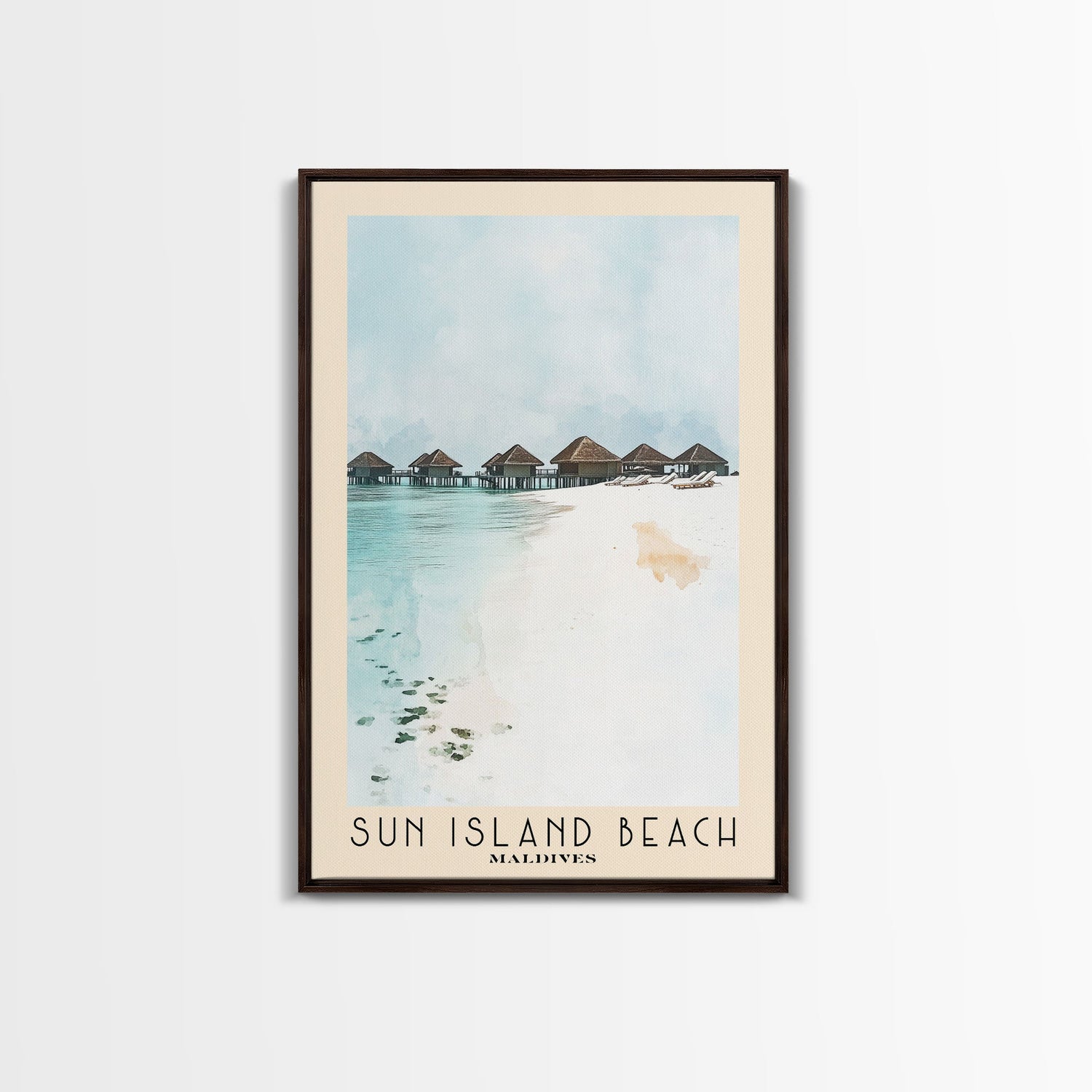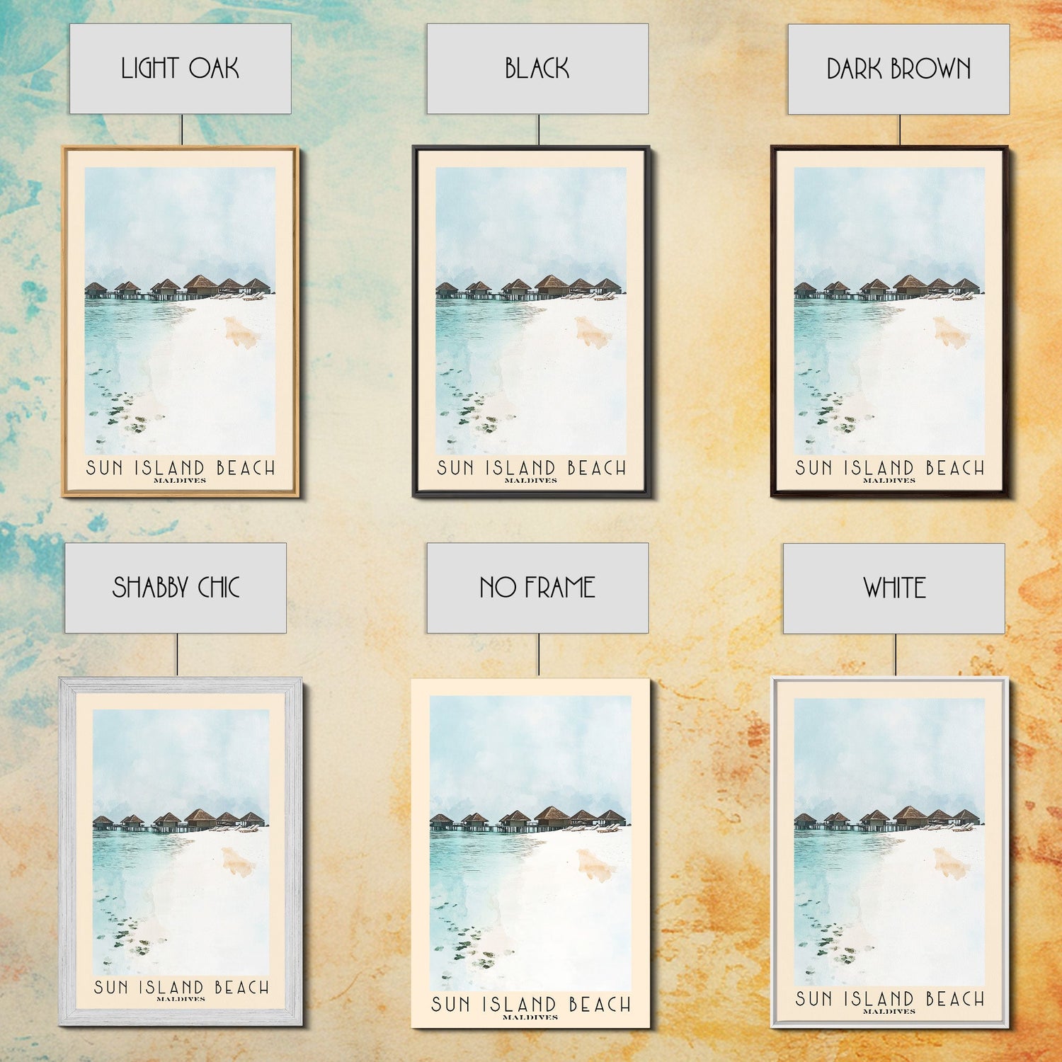 Sun Island Beach, Maldives Watercolor Print, Vacation Gift, Maldives Wall Art, Beach Painting, Beach Decor, Large Wall Art, Wood Frame Art