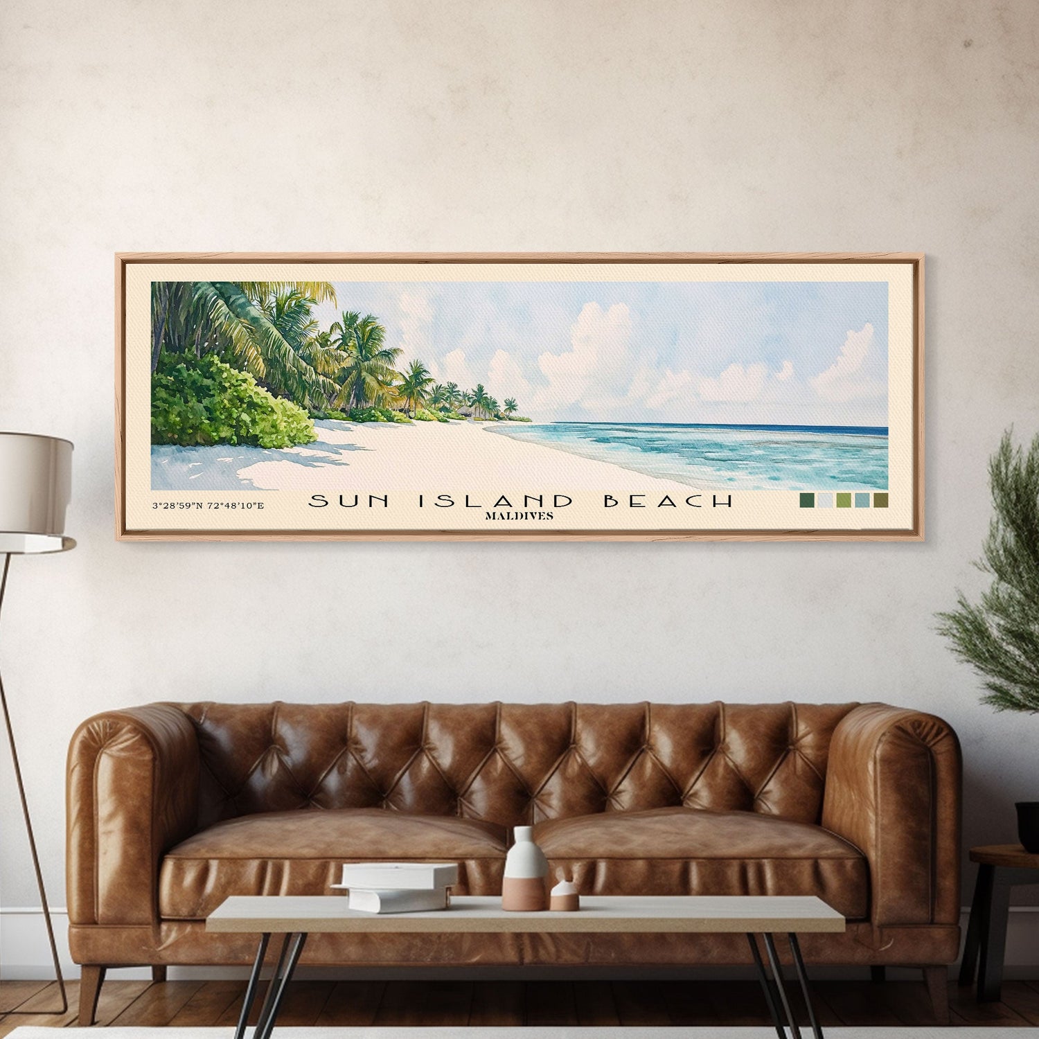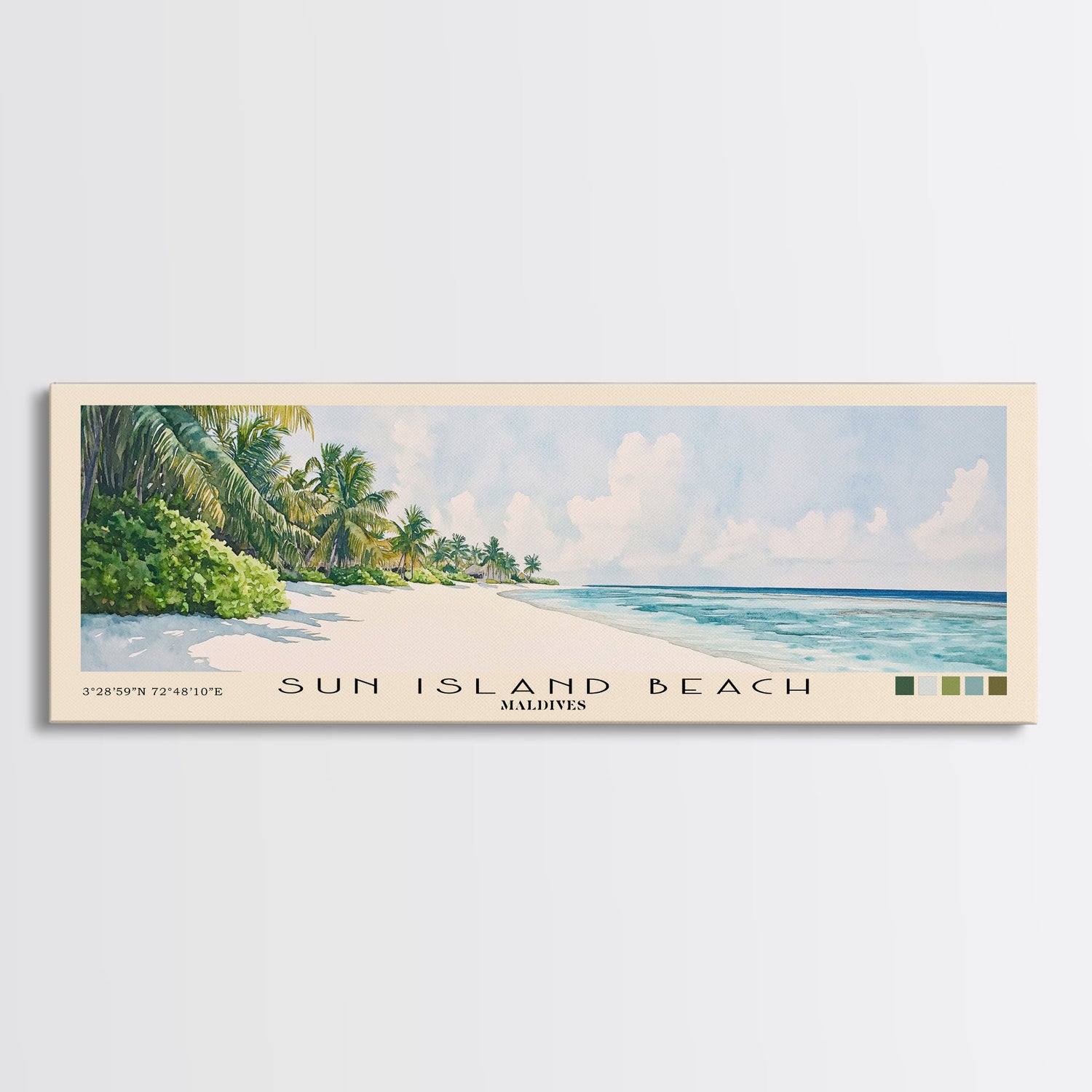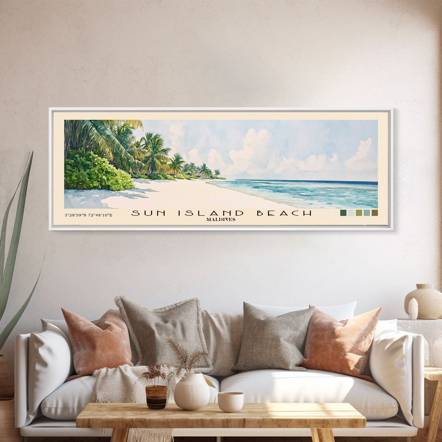 Sun Island Beach, Maldives Watercolor Print, Vacation Gift, Maldives Wall Art, Beach Painting, Beach Decor, Large Wall Art, Wood Frame Art - 10x30 Inches / No Frame - Stretched Canvas Only is backordered and will ship as soon as it is back in stock.