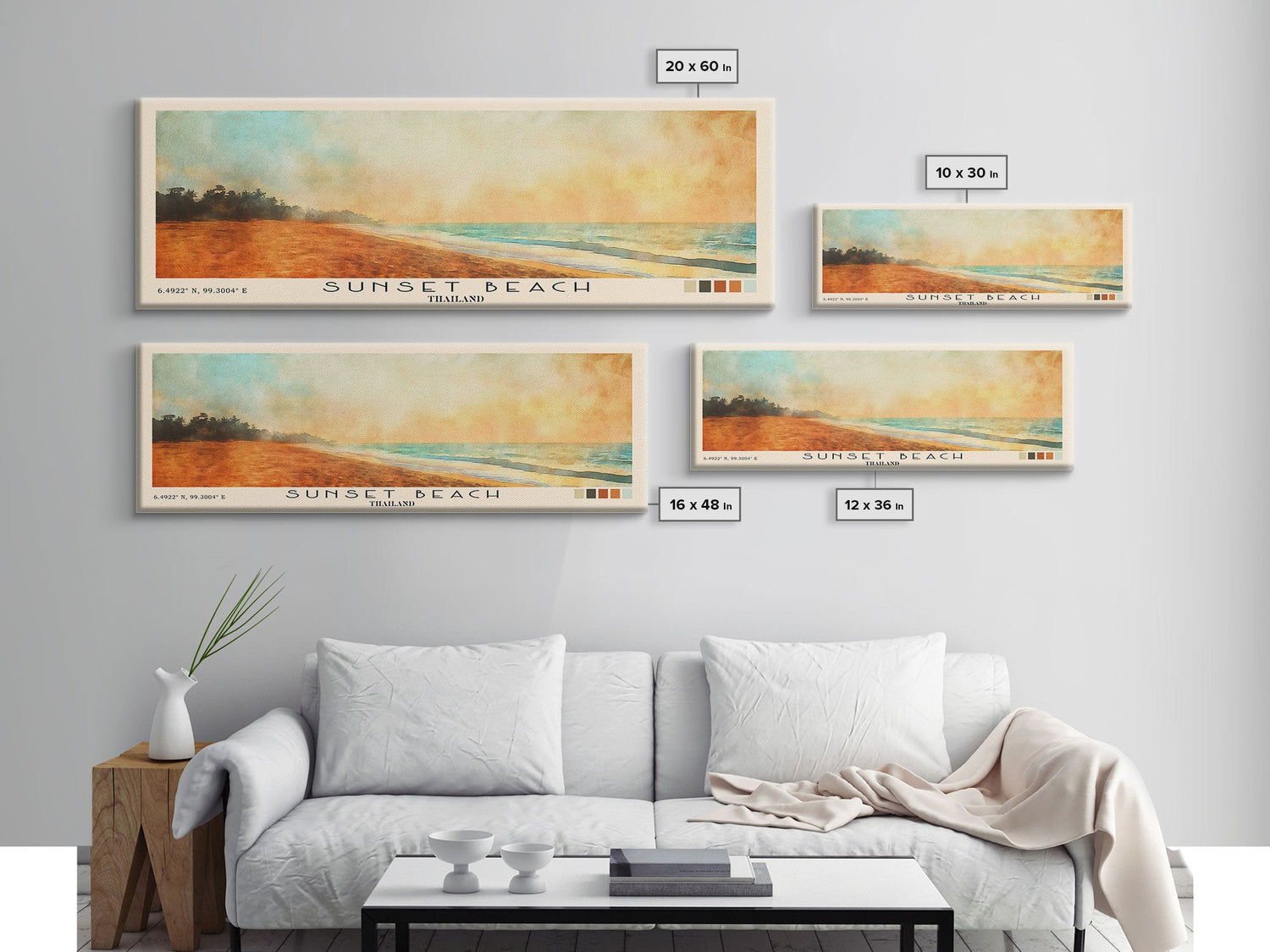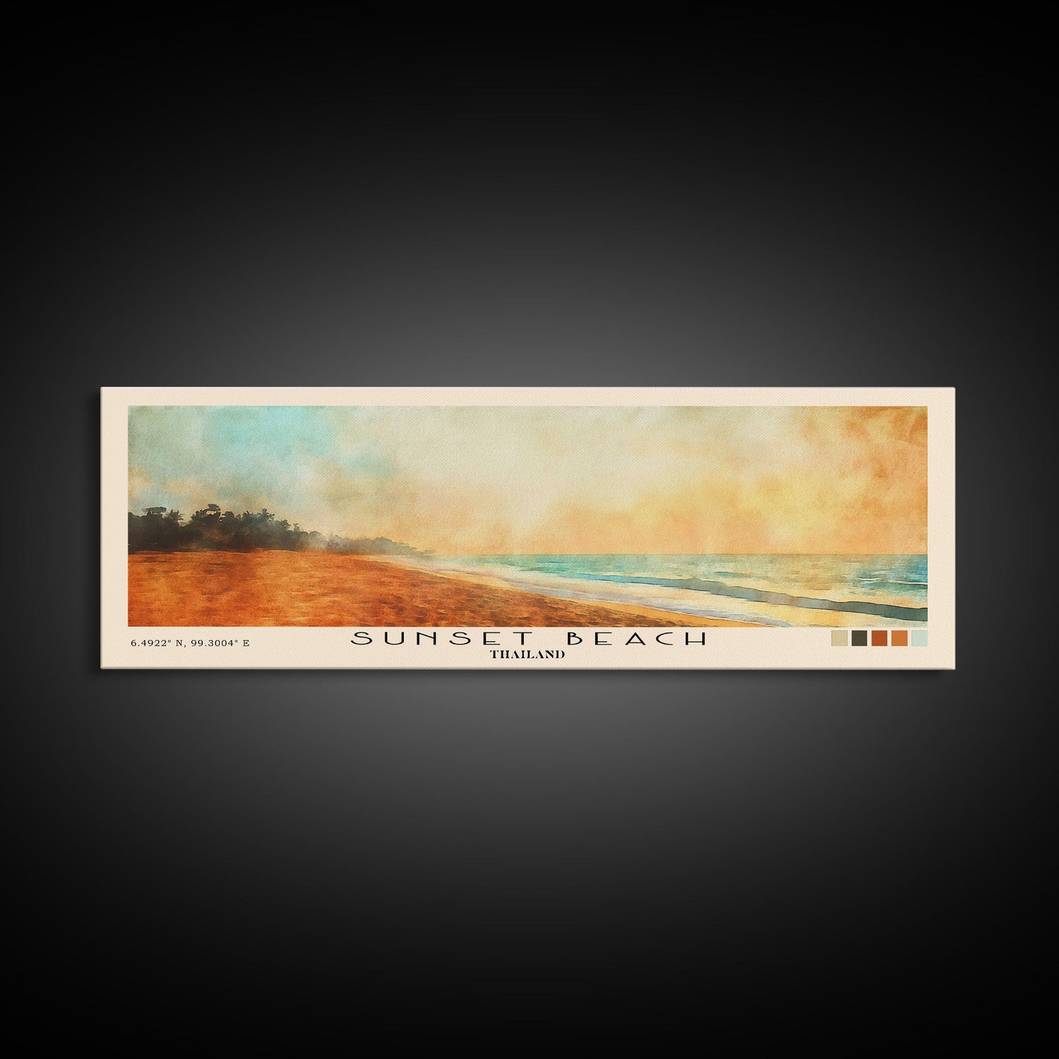 Sunset Beach, Thailand Watercolor Beach Print, Vacation Gift, Thailand Wall Art, Beach Painting, Beach Decor, Beach Painting - 10x30 Inches / No Frame - Stretched Canvas Only is backordered and will ship as soon as it is back in stock.