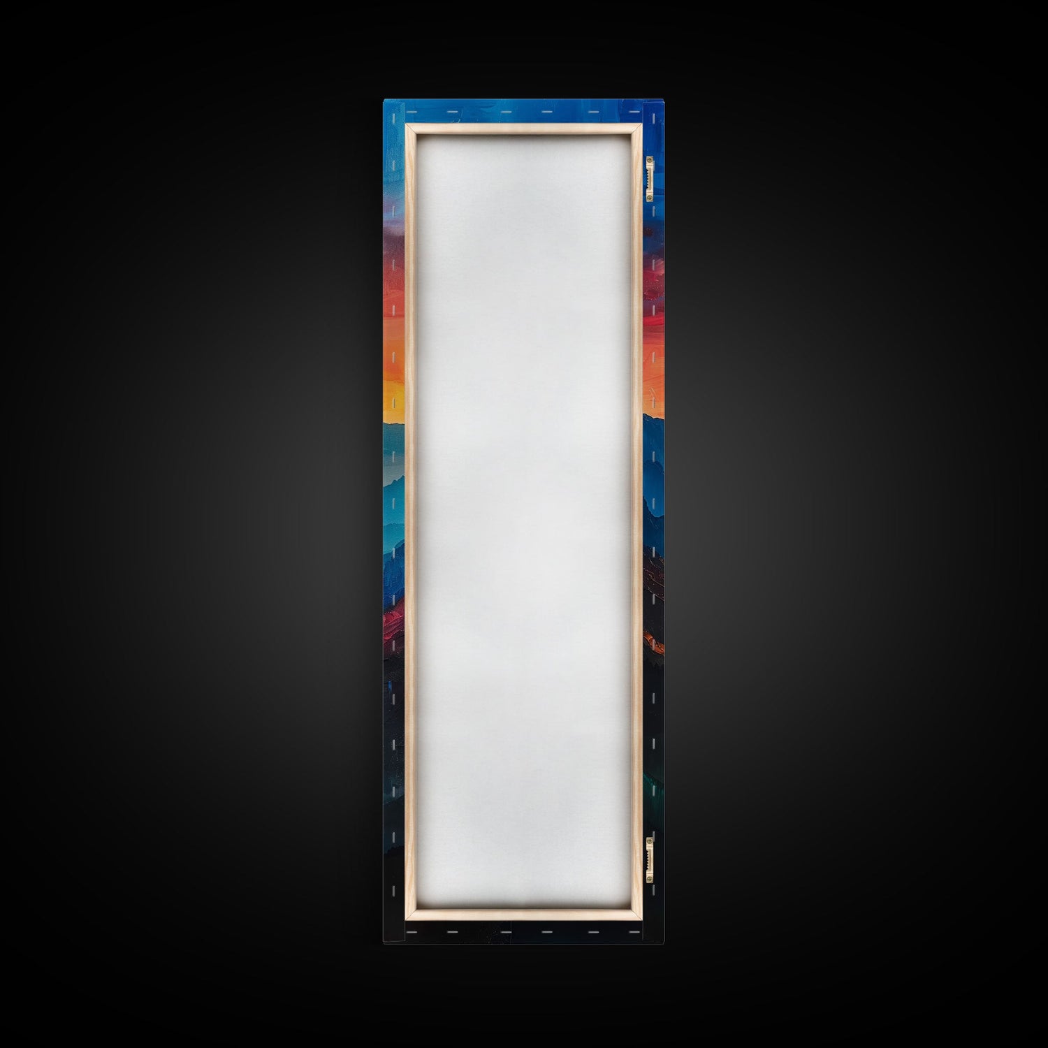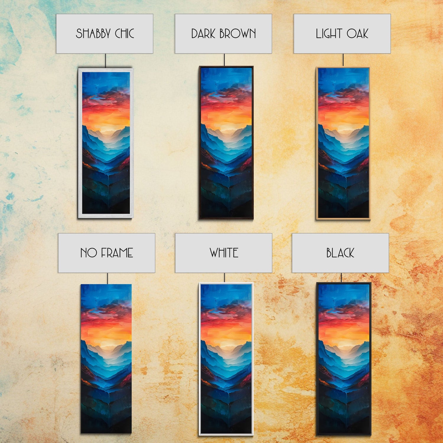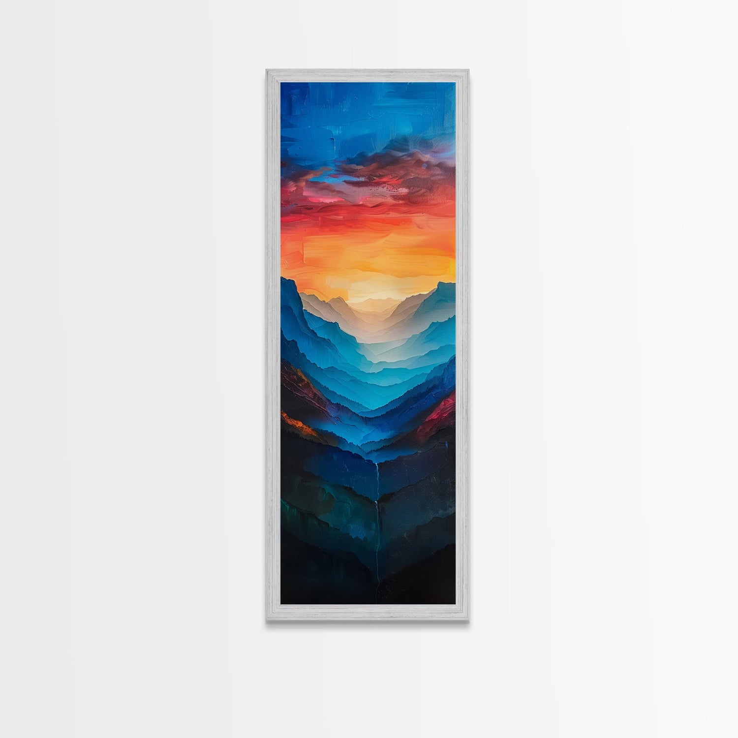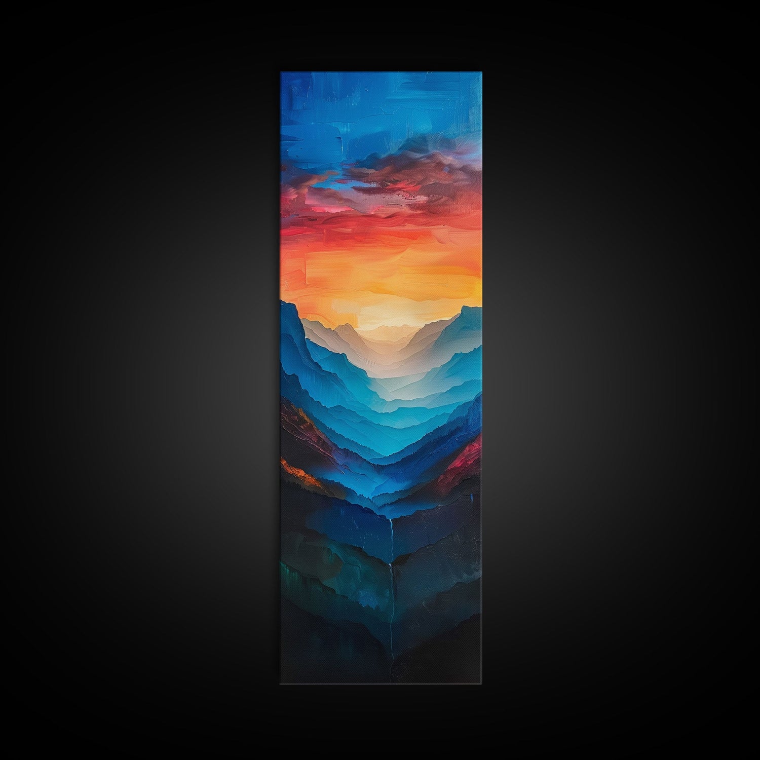 Sunset Over The Mountain Valley Framed Canvas Print - Colorful Wall Art - Midcentury Modern Style Art - Modern Decor - Abstract Landscape Painting - Tall Art - 10x30 Inches / No Frame - Stretched Canvas Only is backordered and will ship as soon as it is back in stock.
