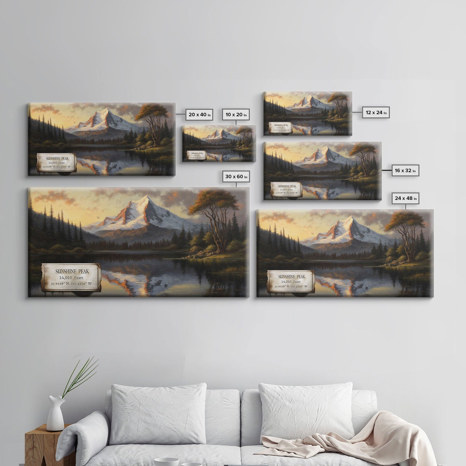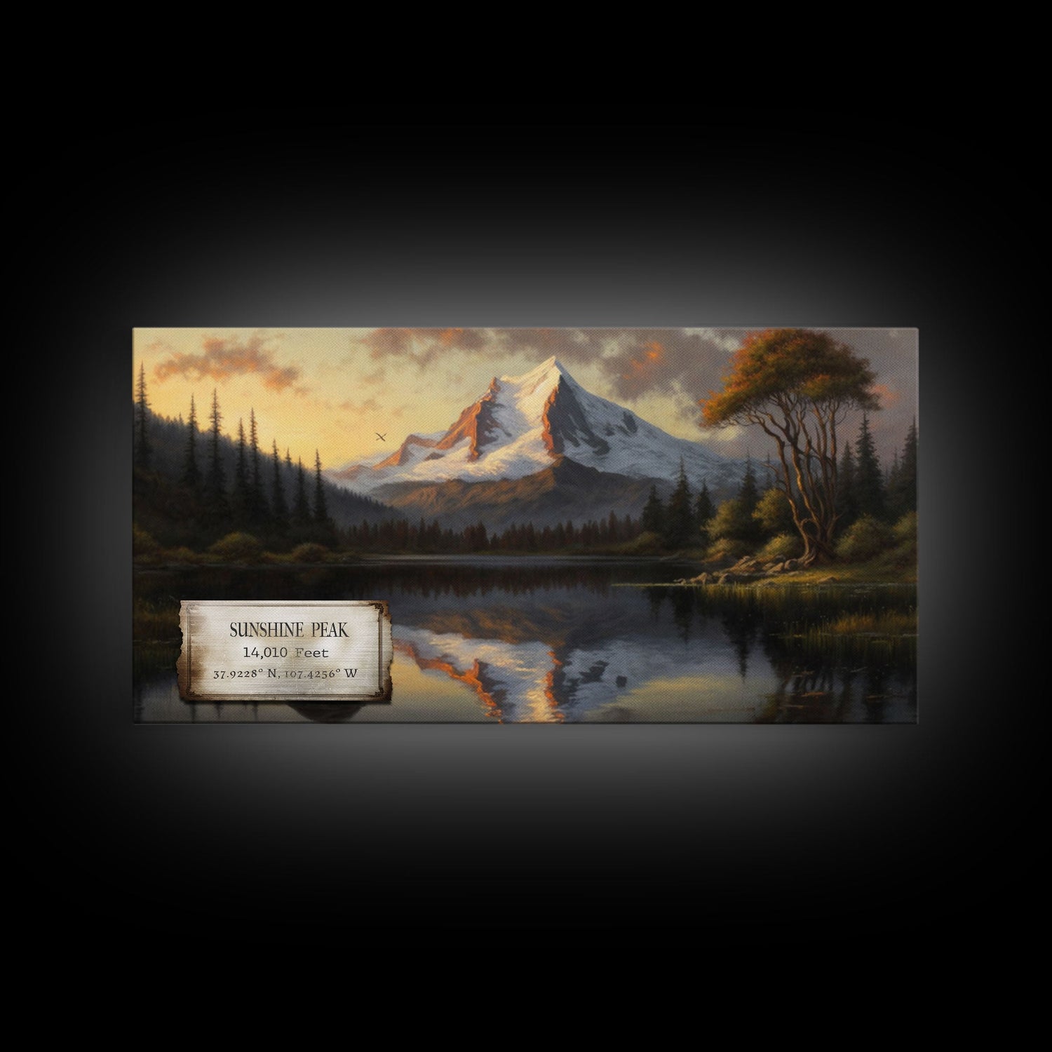 Sunshine Peak, Travel Poster Wall Art, Framed Canvas Print, American Mountains, Mountain Landscape Painting, Mountains of Colorado - 10x20 Inches / No Frame - Stretched Canvas Only is backordered and will ship as soon as it is back in stock.