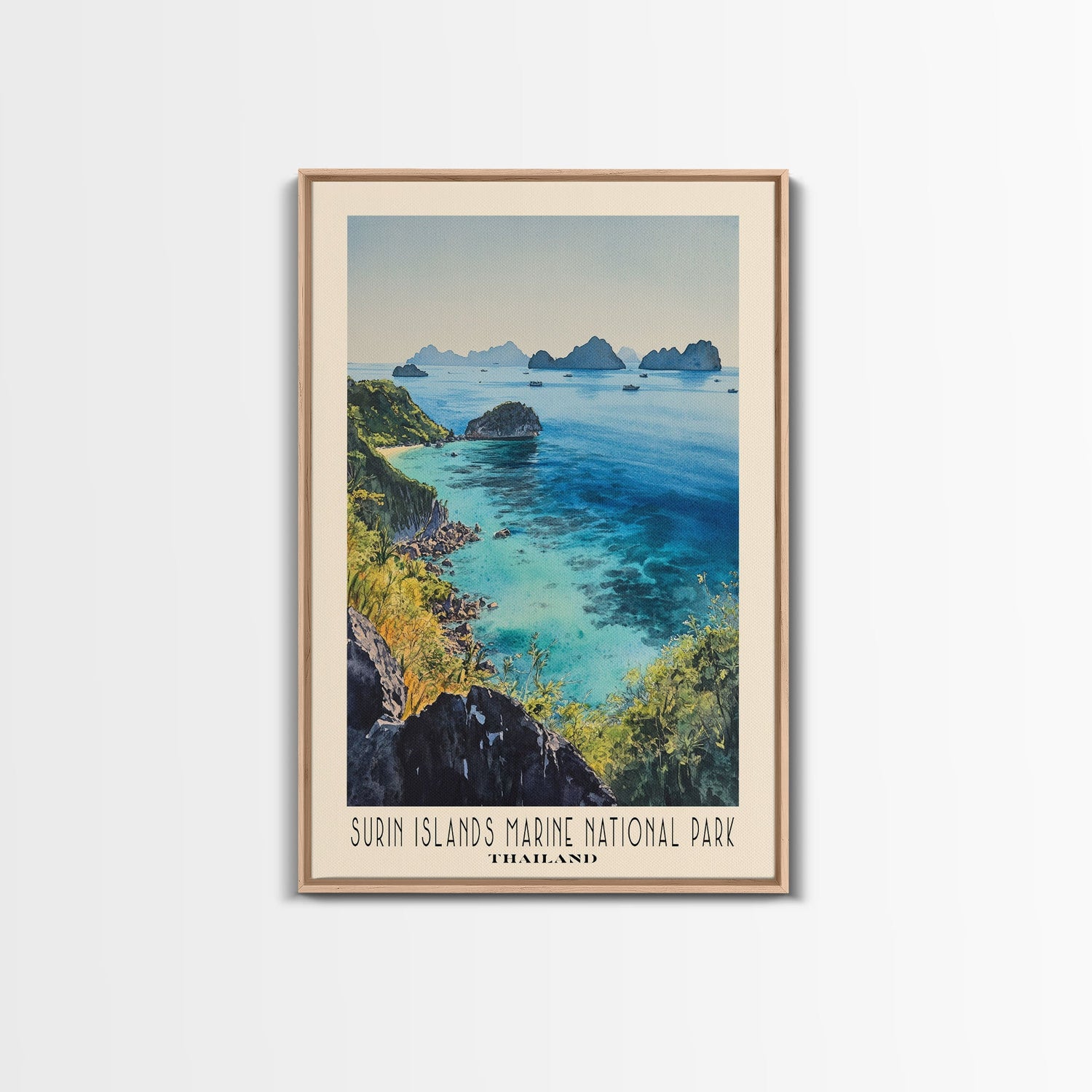 Surin Islands Marine National Park, Thailand Watercolor Print, Vacation Gift, Thailand Wall Art, Beach Painting, Beach Decor, Large Wall Art, Wood Frame Art