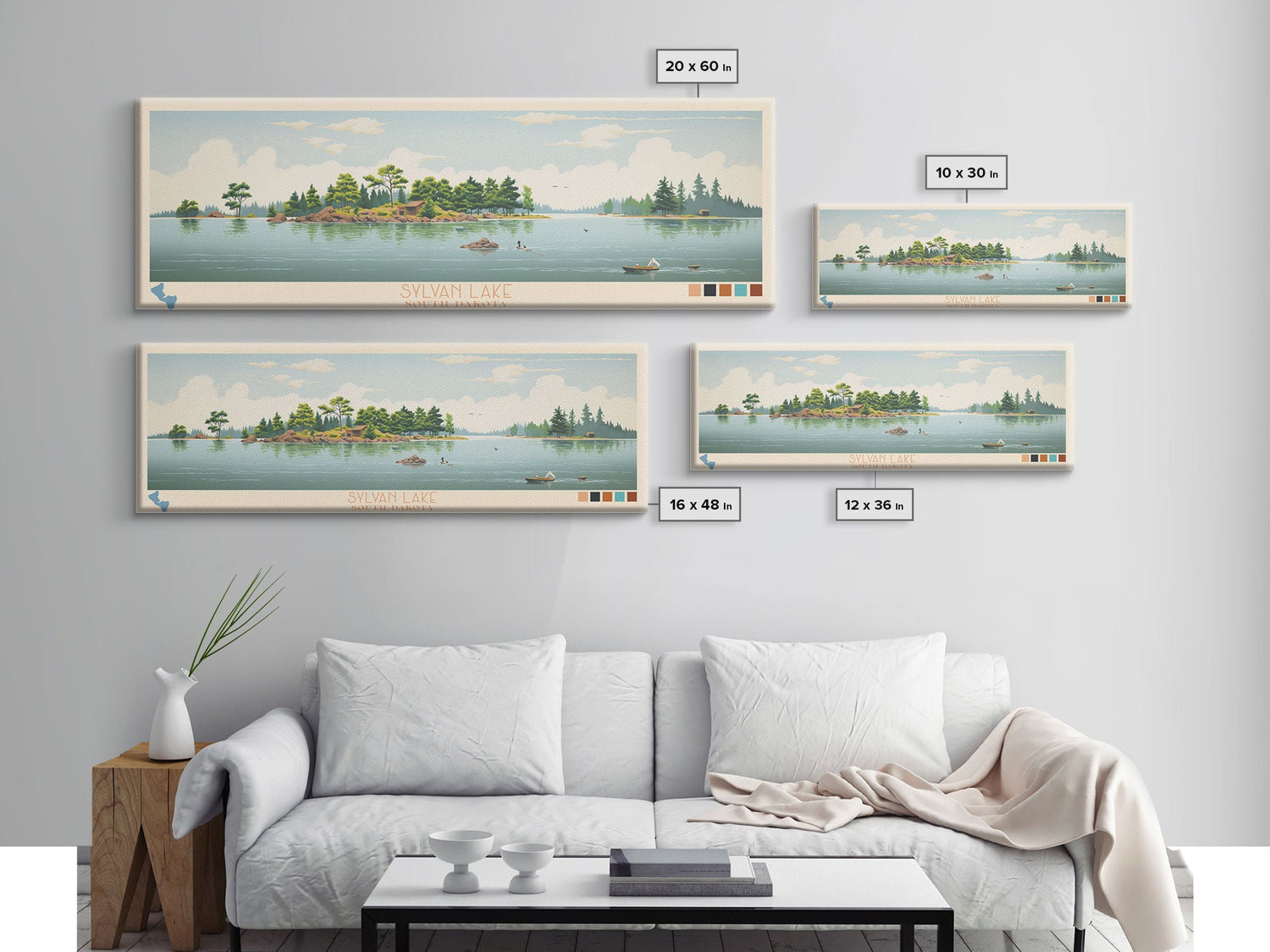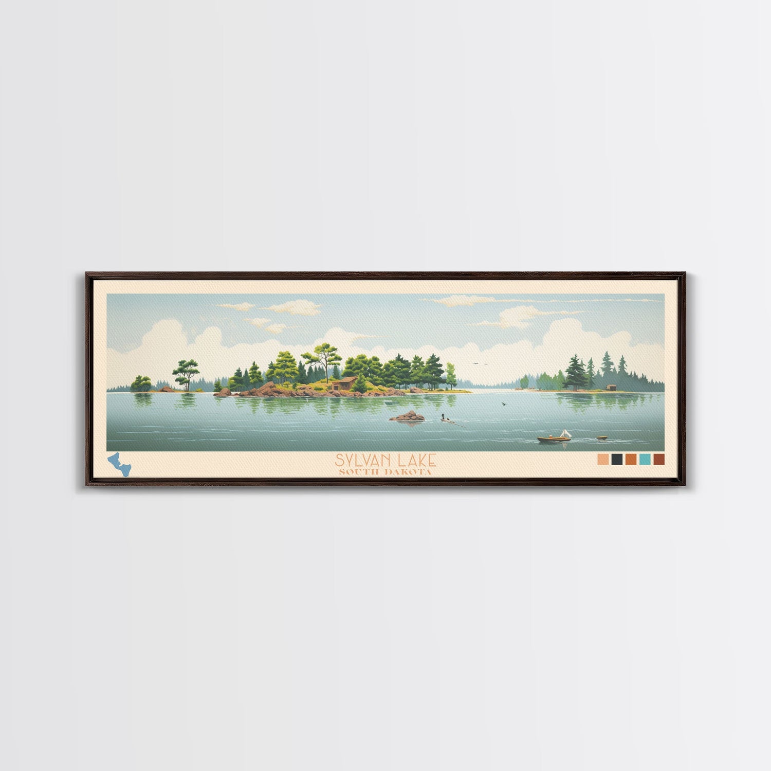 Sylvan Lake, South Dakota Framed Canvas Print, Lake House Decor, Midcentury Modern Art, Pop Art, Travel Poster, Bedroom Wall Art - 10x30 Inches / No Frame - Stretched Canvas Only is backordered and will ship as soon as it is back in stock.