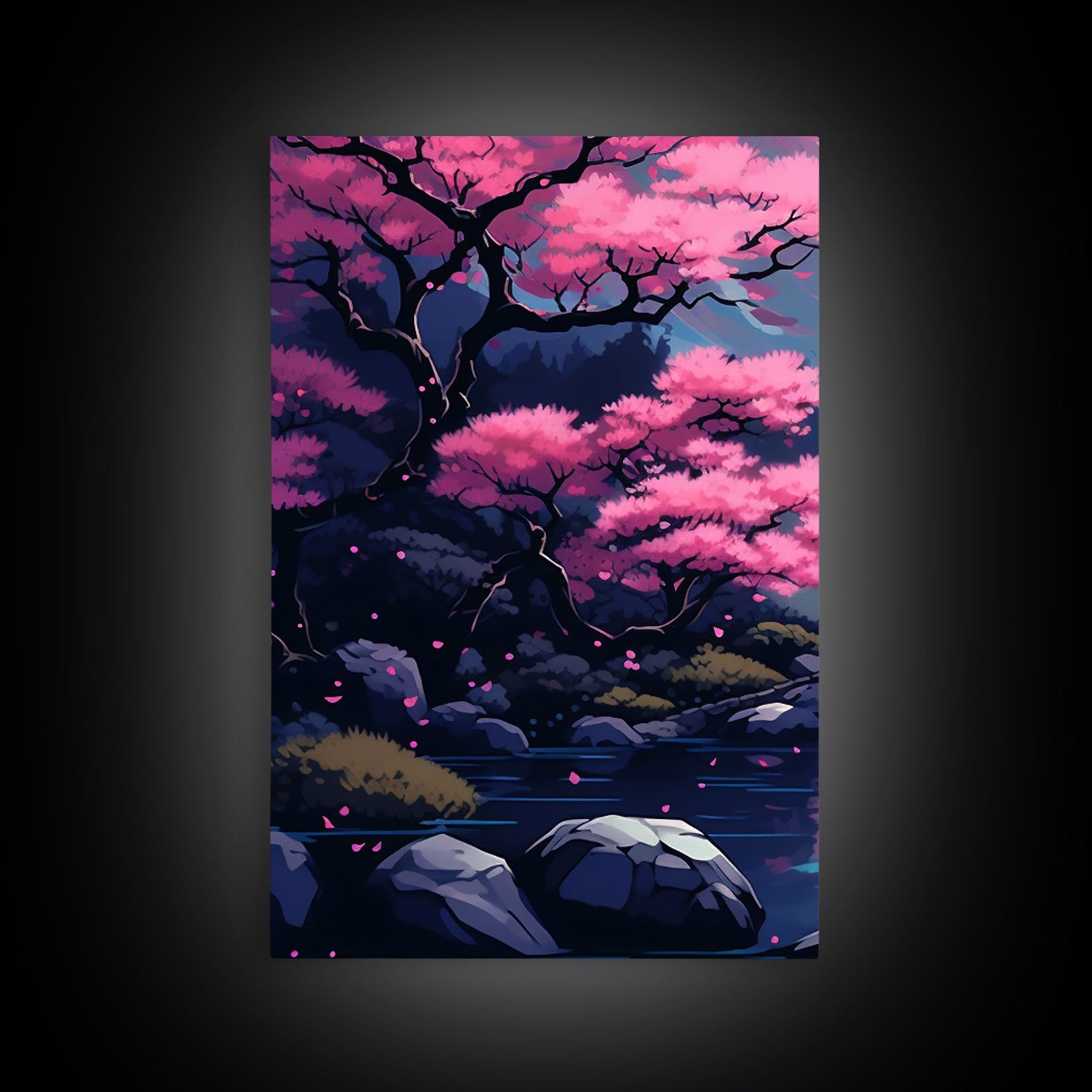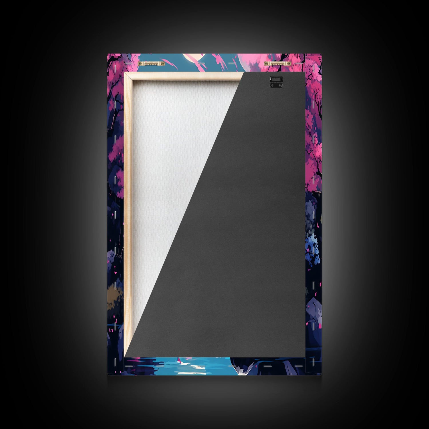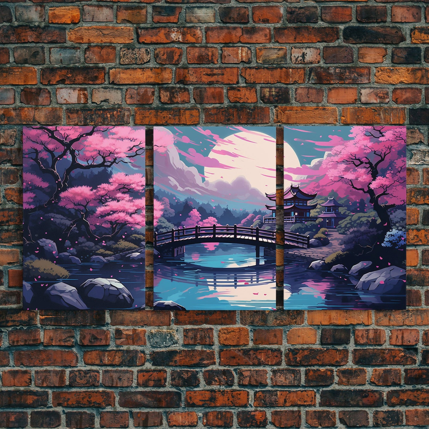 Synthwave Japanese Style Art, Framed Canvas Print, 3 Piece Triptych Set, Retro 80s Style Wall Art, Above Sofa Decor, Cool Wall Art