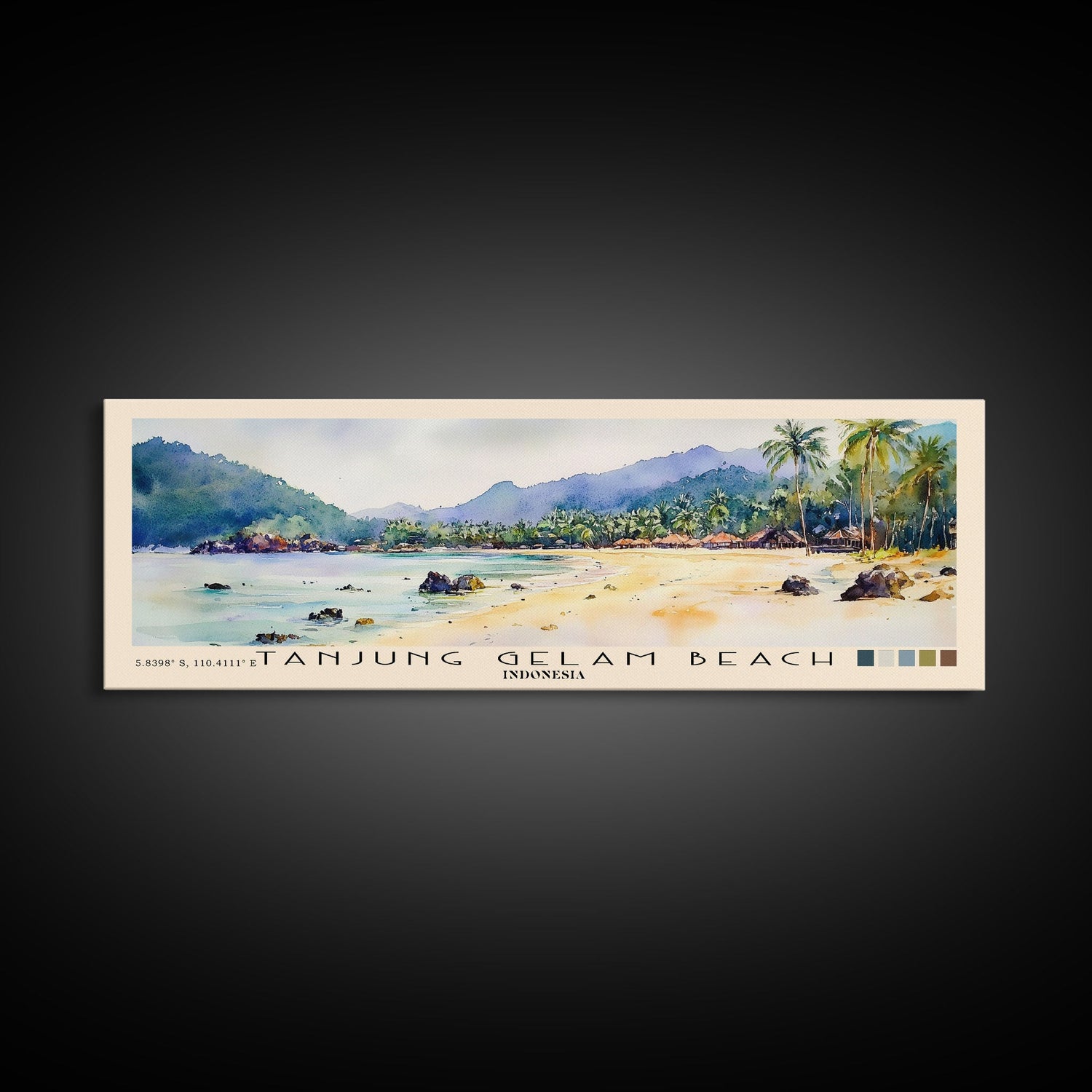 Tanjung Gelam Beach, Indonesia Watercolor Beach Print, Vacation Gift, Indonesia Wall Art, Beach Painting, Beach Decor, Beach Painting - 10x30 Inches / No Frame - Stretched Canvas Only is backordered and will ship as soon as it is back in stock.