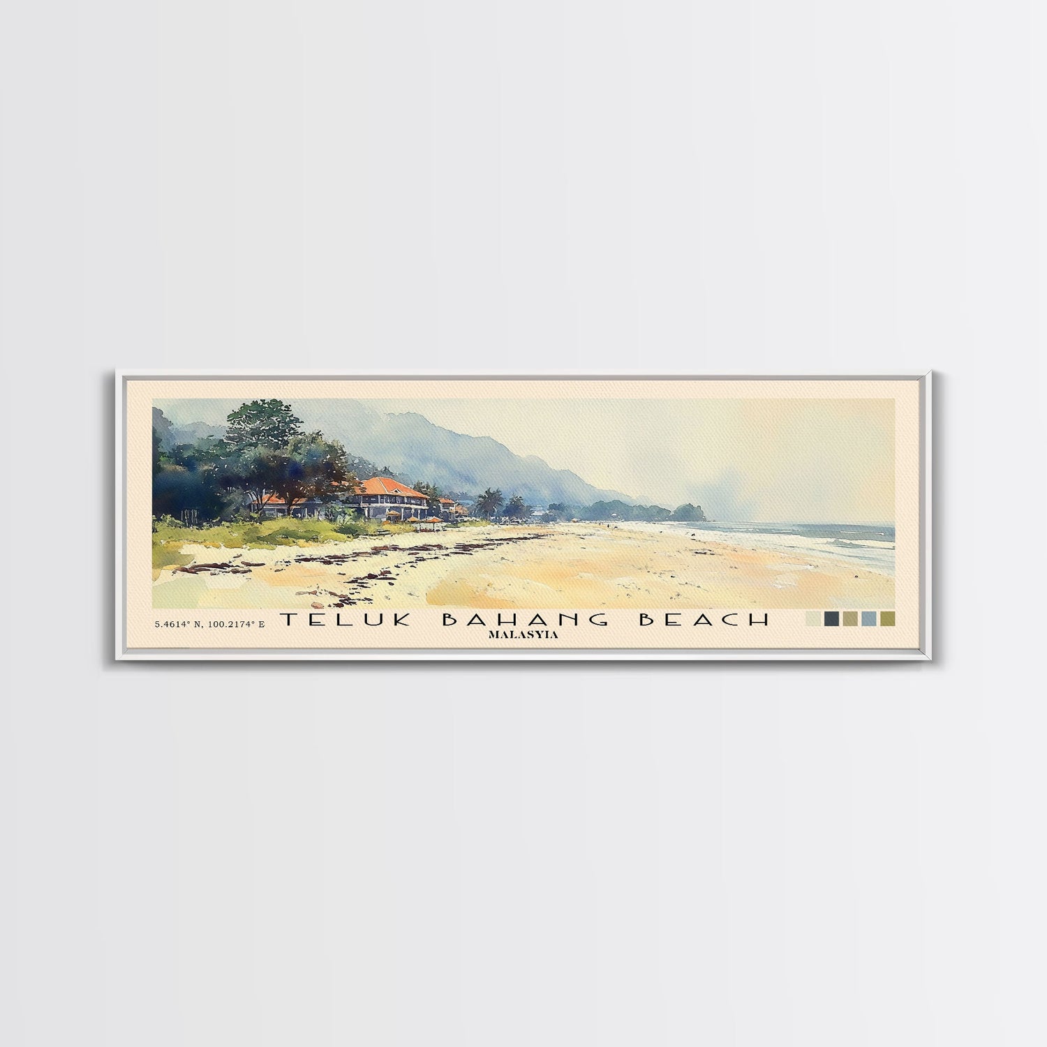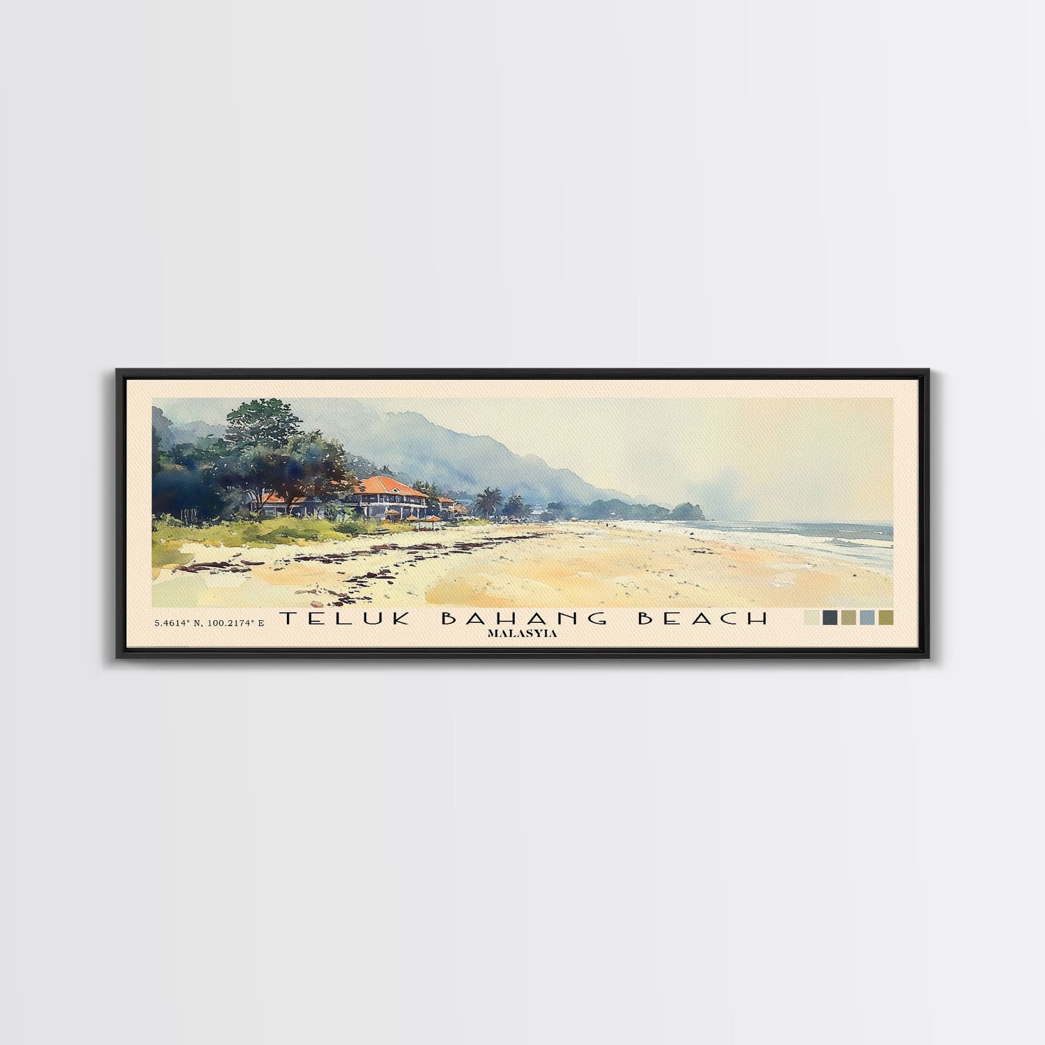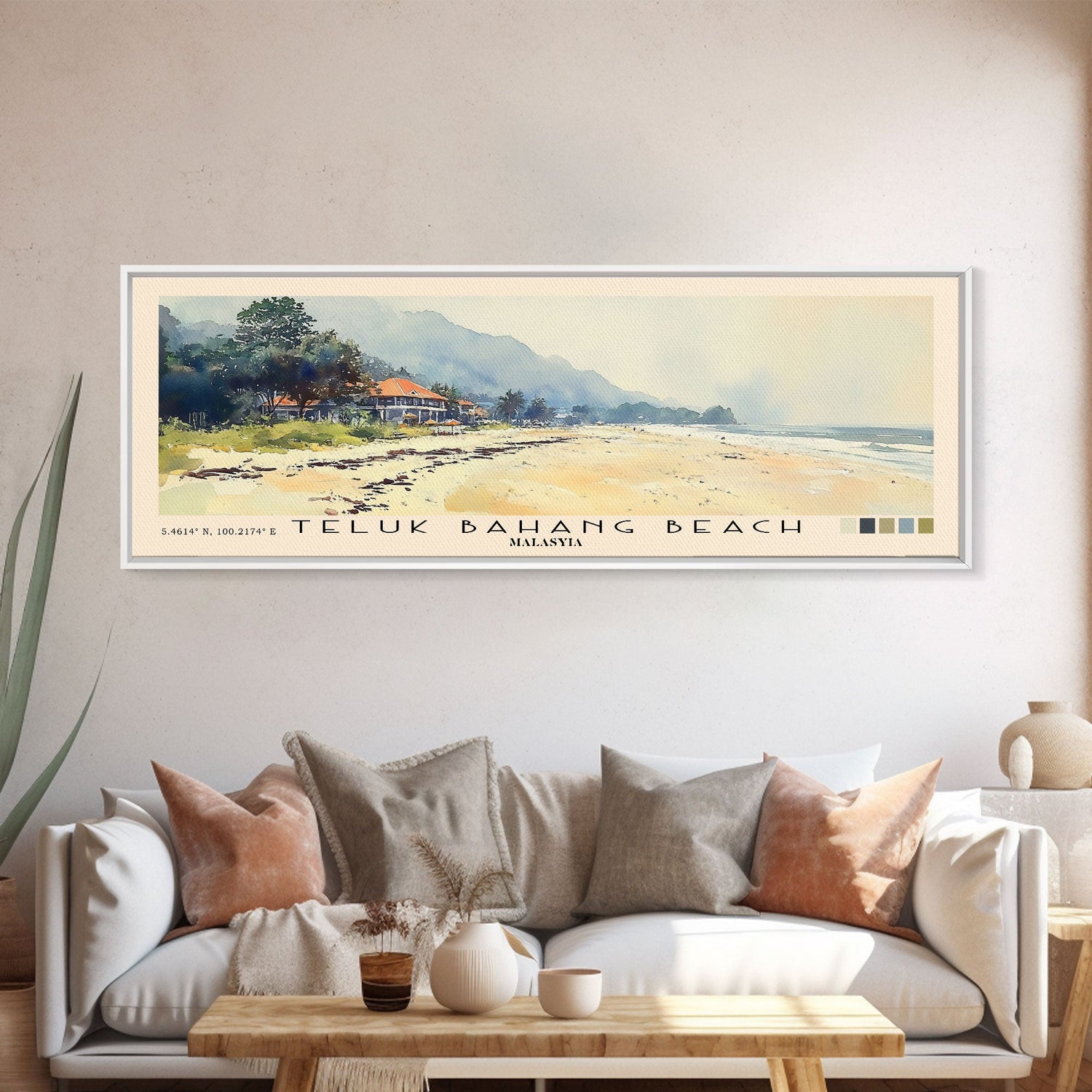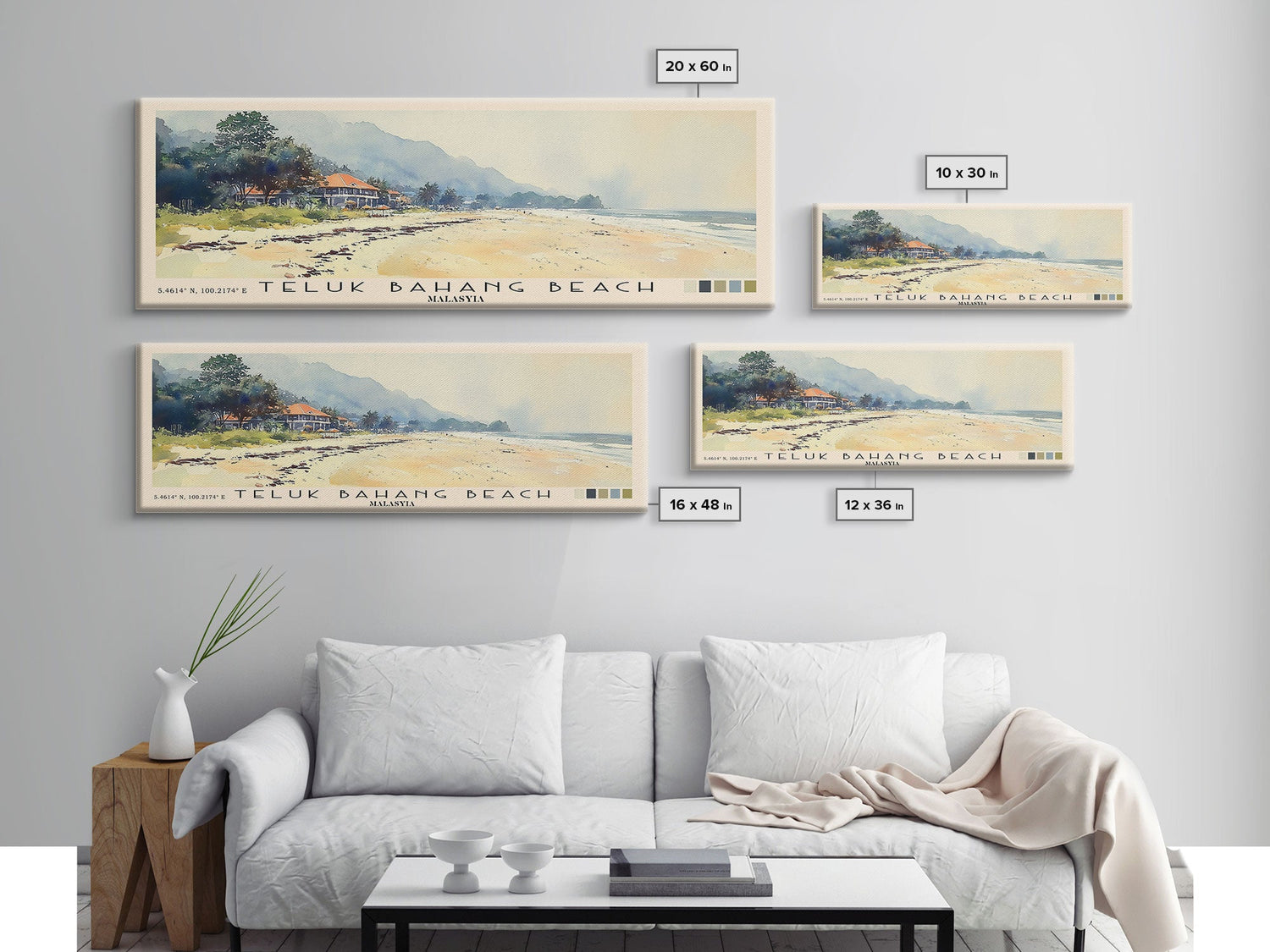 Teluk Bahang Beach, Malasyia Watercolor Print, Vacation Gift, Malasyia Wall Art, Beach Painting, Beach Decor, Large Wall Art, Wood Frame Art - 10x30 Inches / No Frame - Stretched Canvas Only is backordered and will ship as soon as it is back in stock.