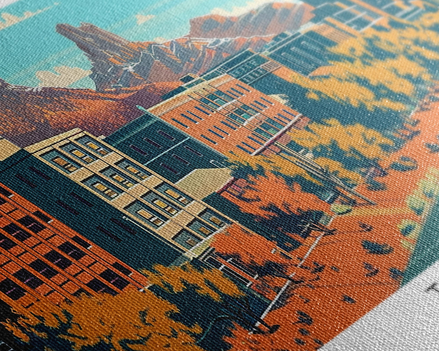 Tempe Arizona Panoramic Painting, Mid Century Modern Framed Canvas Print, Retro Pop Art Travel Poster, Cityscape, Home Decor, Office Wall Art