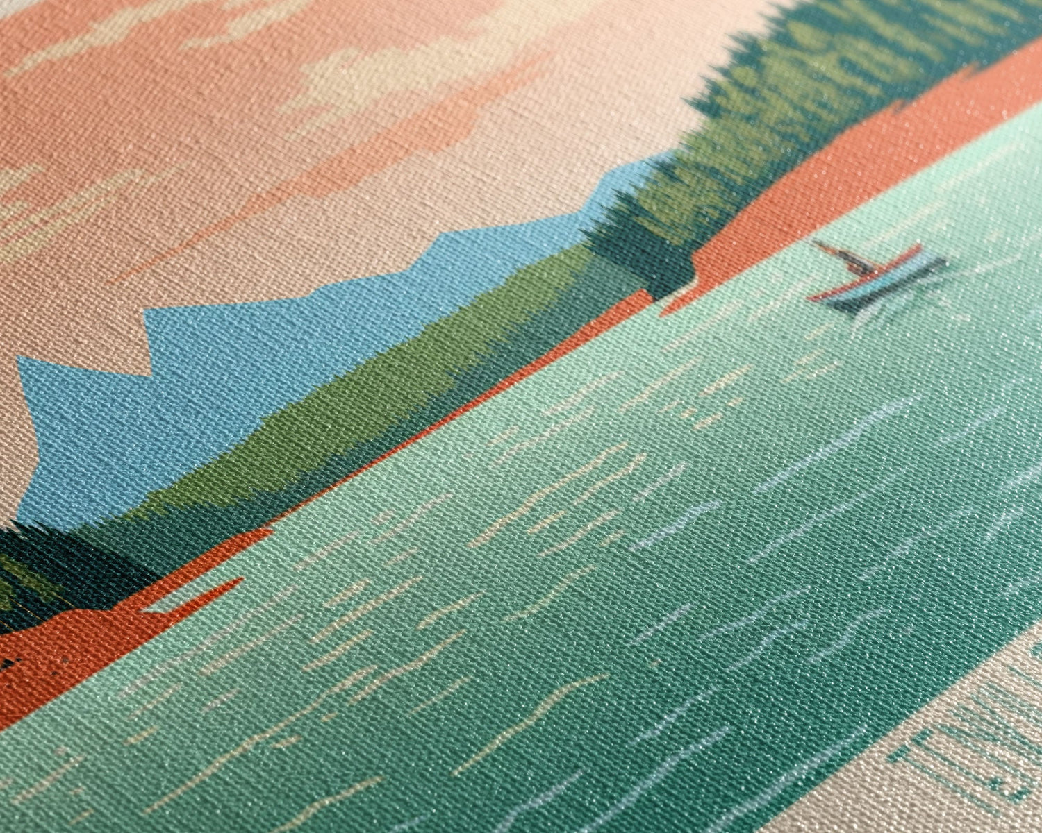 Tenkiller Ferry Lake, Oklahoma Framed Canvas Print, Lake House Art, Midcentury Modern Decor, Pop Art, Travel Poster, Bedroom Wall Art