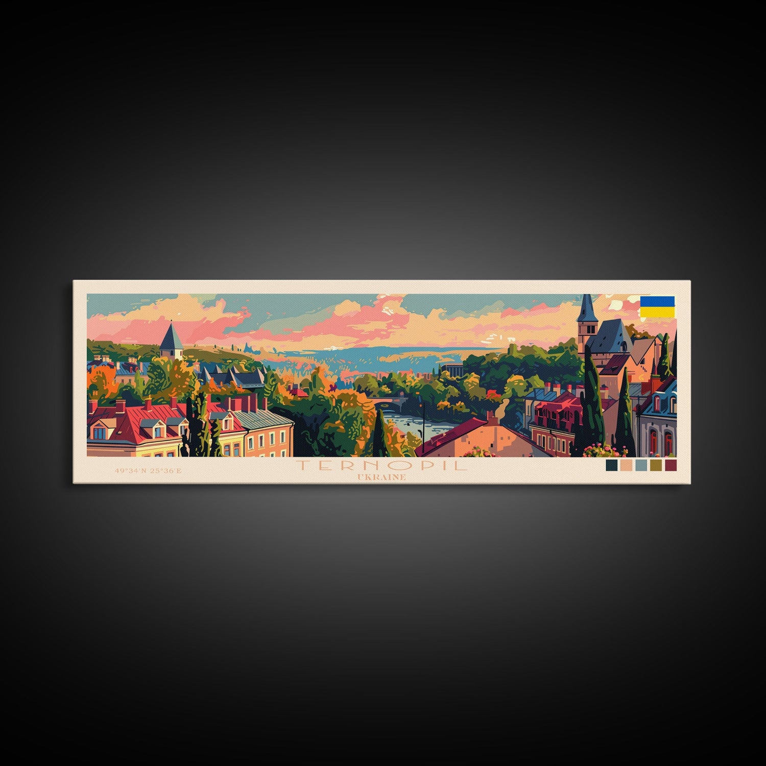 Ternopil Ukraine Panoramic Travel Poster, Framed Canvas Print or Metal Wall Art, Travel Art, Home Decor, Panoramic Painting, Midcentury Art