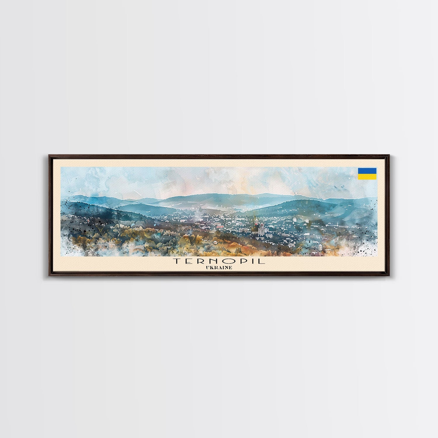 Ternopil Ukraine Panoramic Travel Poster, Framed Canvas Print or Metal Wall Art, Travel Art, Home Decor, Panoramic Painting, Midcentury Art - 10x30 Inches / No Frame - Stretched Canvas Only is backordered and will ship as soon as it is back in stock.