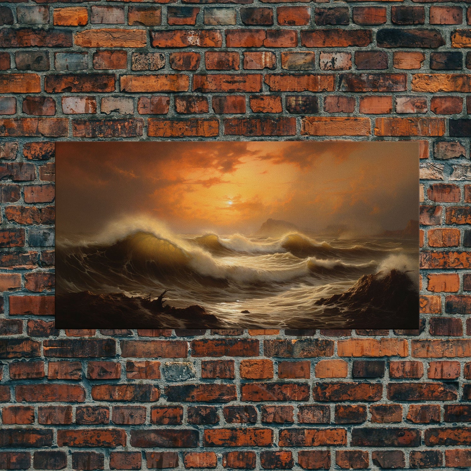 The Angry Sea, Framed Canvas Print, Oil Painting Reproduction, Ocean Art, Beautiful Sunset Over The Ocean Wall Art, Contemporary Art - 10x20 Inches / No Frame - Stretched Canvas Only is backordered and will ship as soon as it is back in stock.