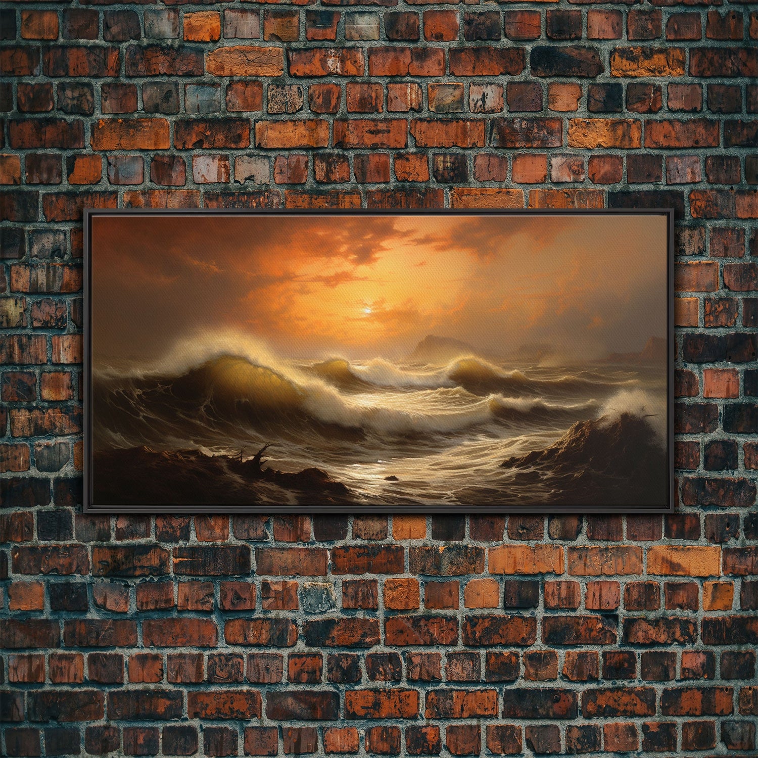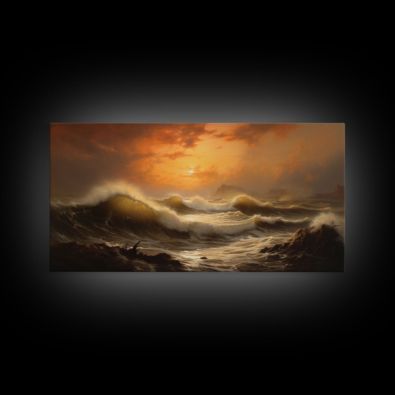 The Angry Sea, Framed Canvas Print, Oil Painting Reproduction, Ocean Art, Beautiful Sunset Over The Ocean Wall Art, Contemporary Art