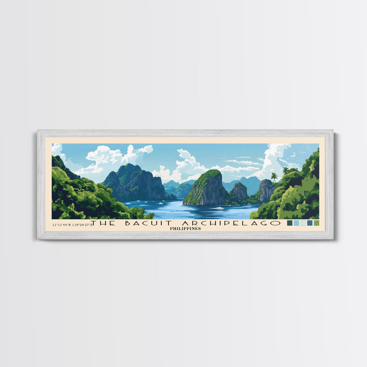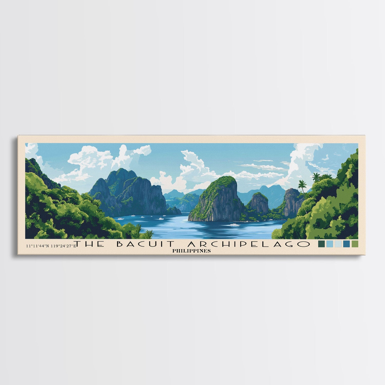 The Bacuit Archipelago, Philippines Panoramic Beach Print, Vacation Gift, Philippines Wall Art, Beach Painting, Beach Decor, Beach Painting - 10x30 Inches / No Frame - Stretched Canvas Only is backordered and will ship as soon as it is back in stock.