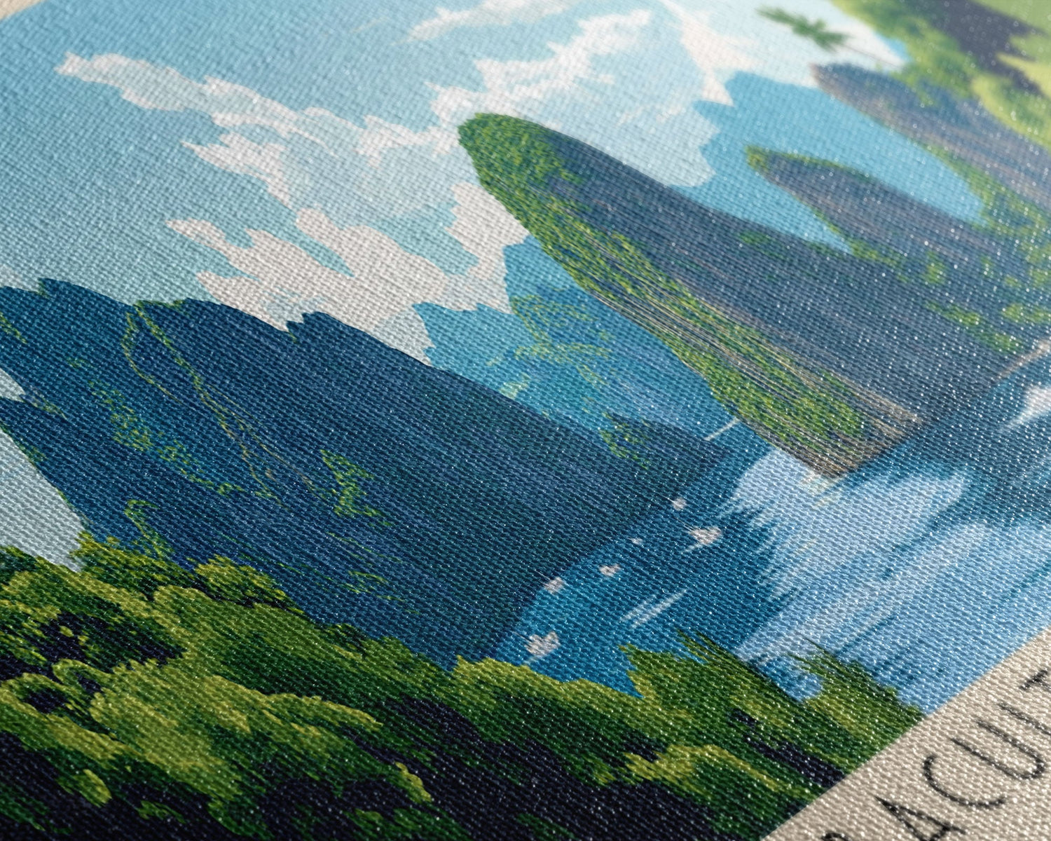Most of our canvases are made in the USA, with the exception of canvases ordered with the light oak unstained frames, and any large canvases (24x48, 30x60, 16x48 and 20x60) ordered WITH a frame. These are temporarily made in and shipped from Europe, while we try to find a more consistent supplier in the USA.