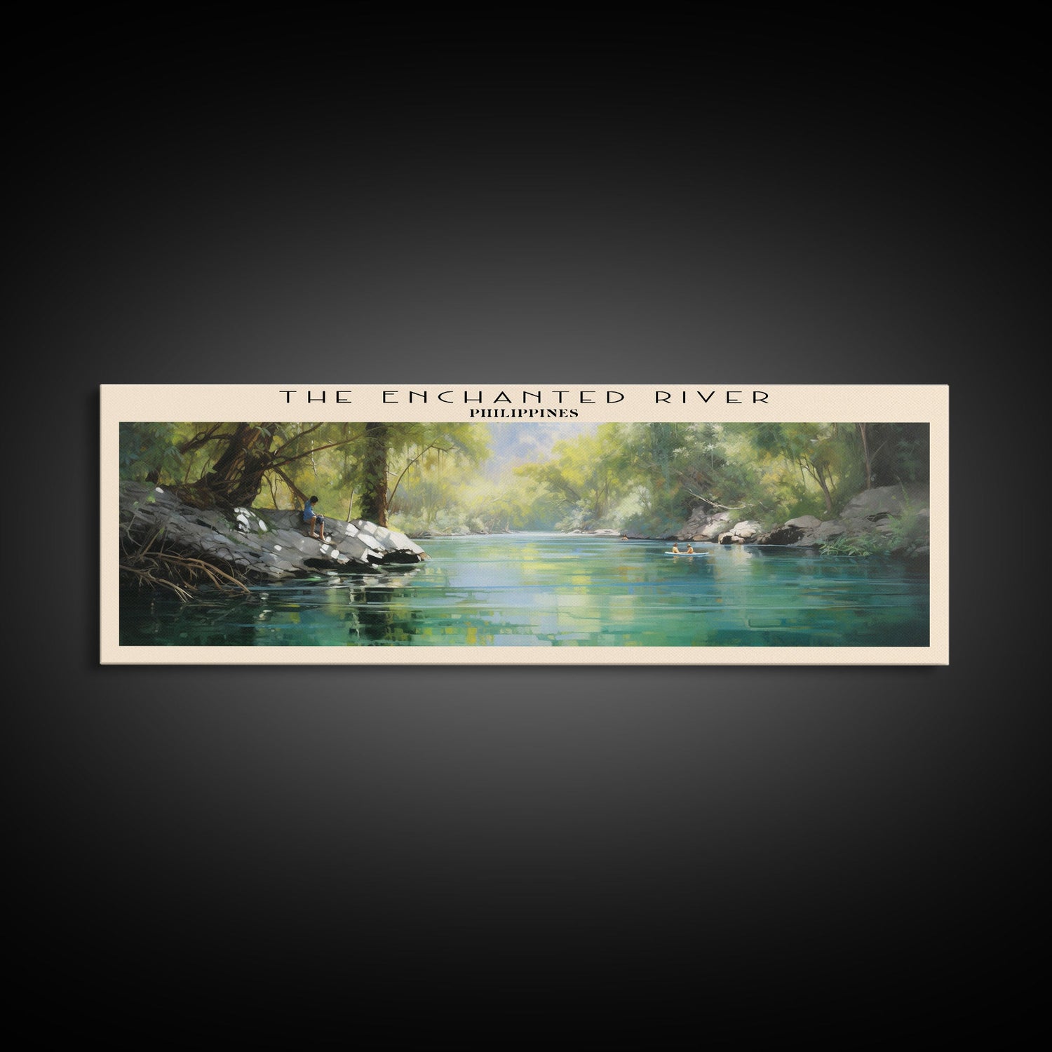 The Enchanted River Travel Print Wall Art, Travel Poster Print, Retro Style COUNTRY Home Decor, Wall Hanging, Travel Gift Idea, Unique Metal Art - 10x30 Inches / No Frame - Stretched Canvas Only is backordered and will ship as soon as it is back in stock.