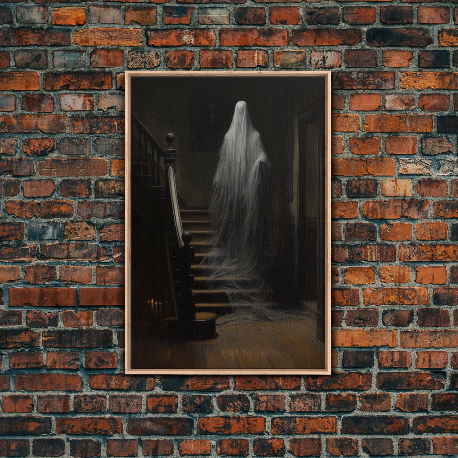 The Ghost On The Stairs, Macabre Halloween Decor, Halloween Poster / Canvas Print, Framed Wall Art, Dark Academia Goth Art
