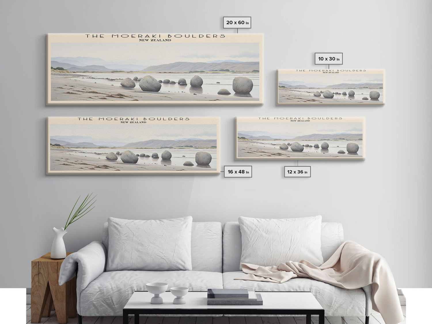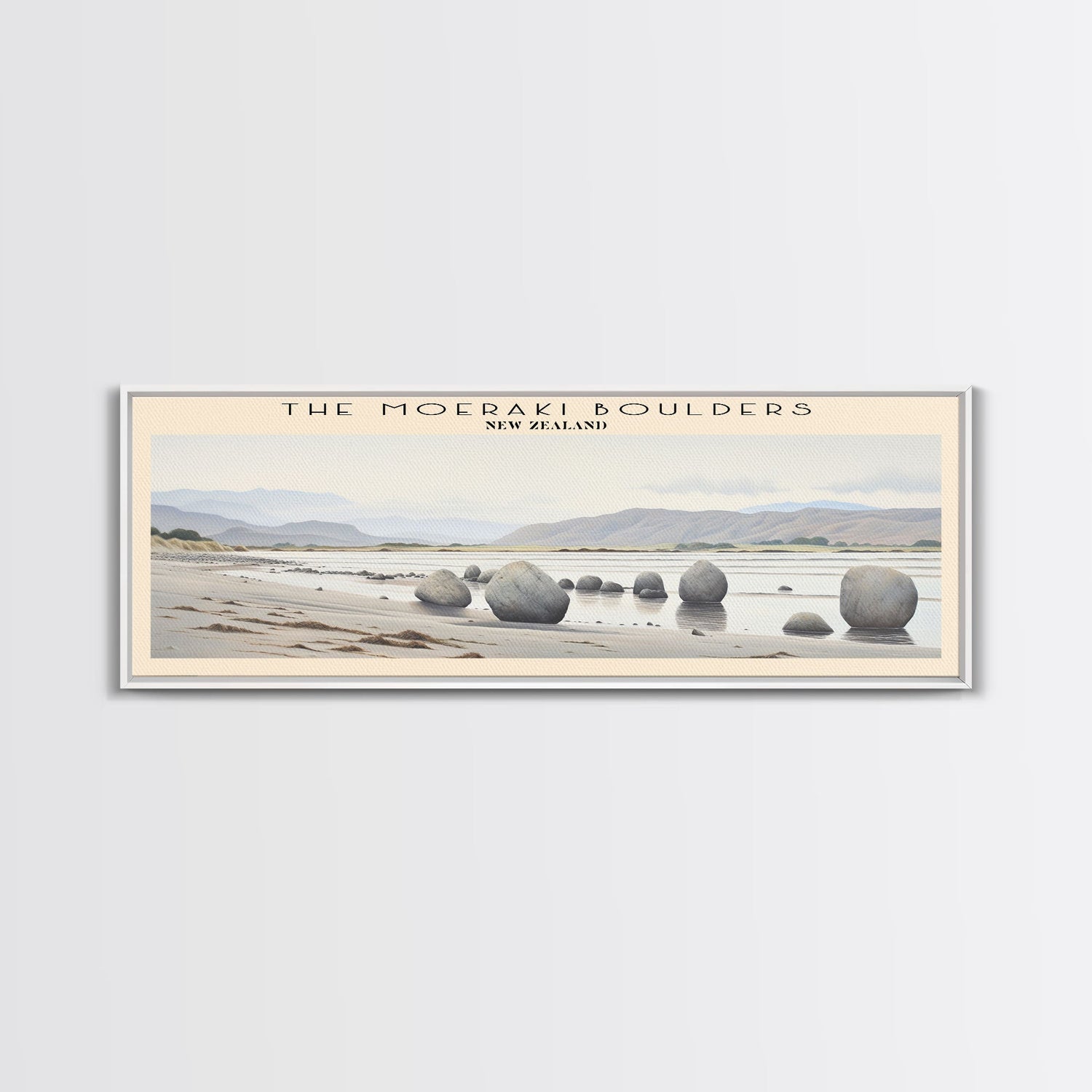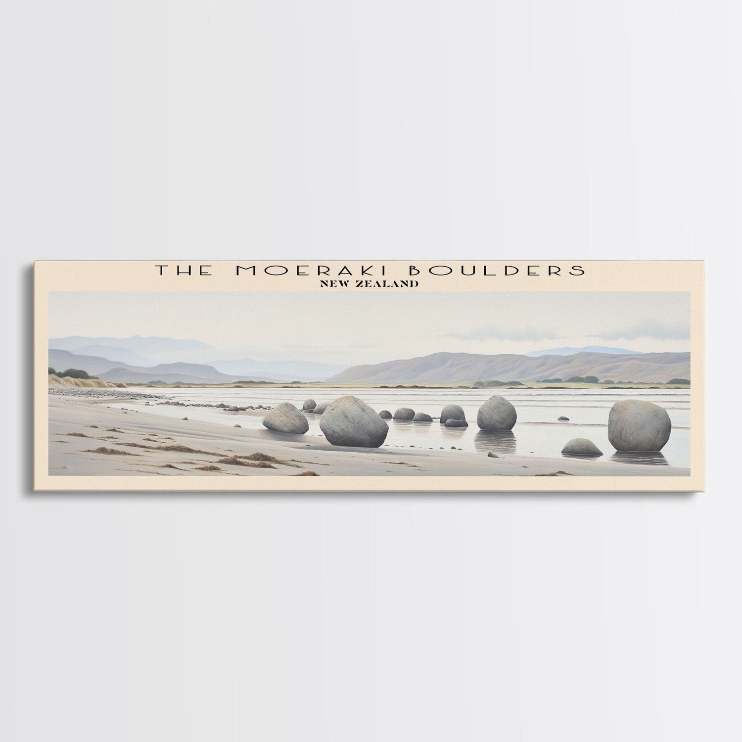 The Moeraki Boulders COUNTRY Travel Poster Print, Framed Canvas Print, COUNTRY Travel Art, Wood Framed Art, Wall Hanging, Home Decor - 10x30 Inches / No Frame - Stretched Canvas Only is backordered and will ship as soon as it is back in stock.