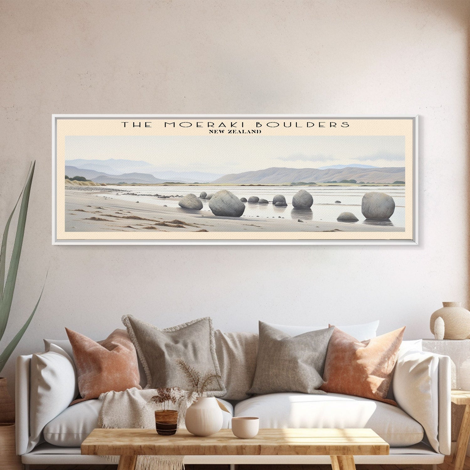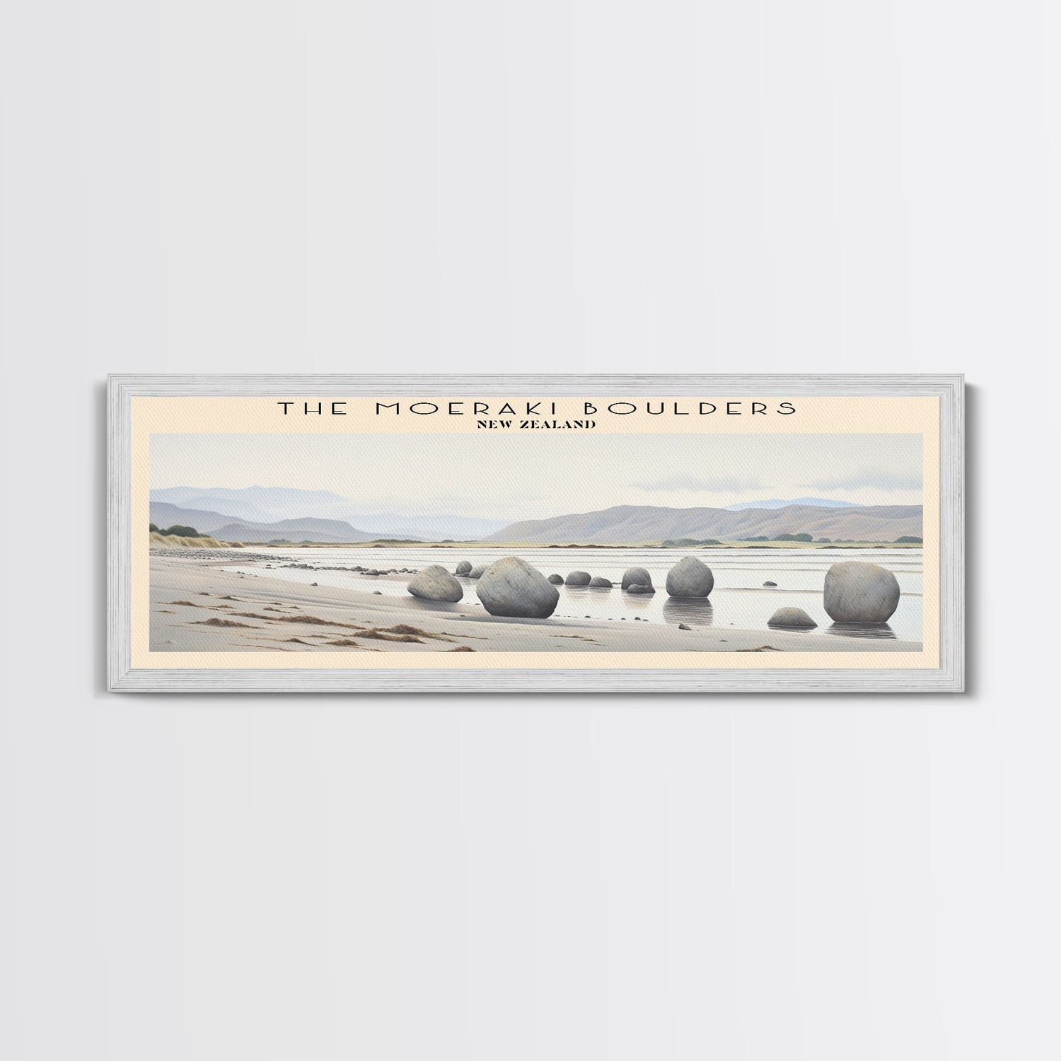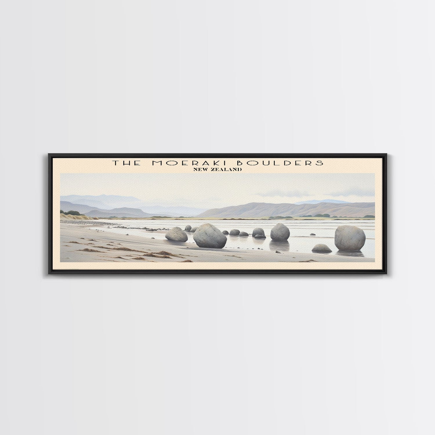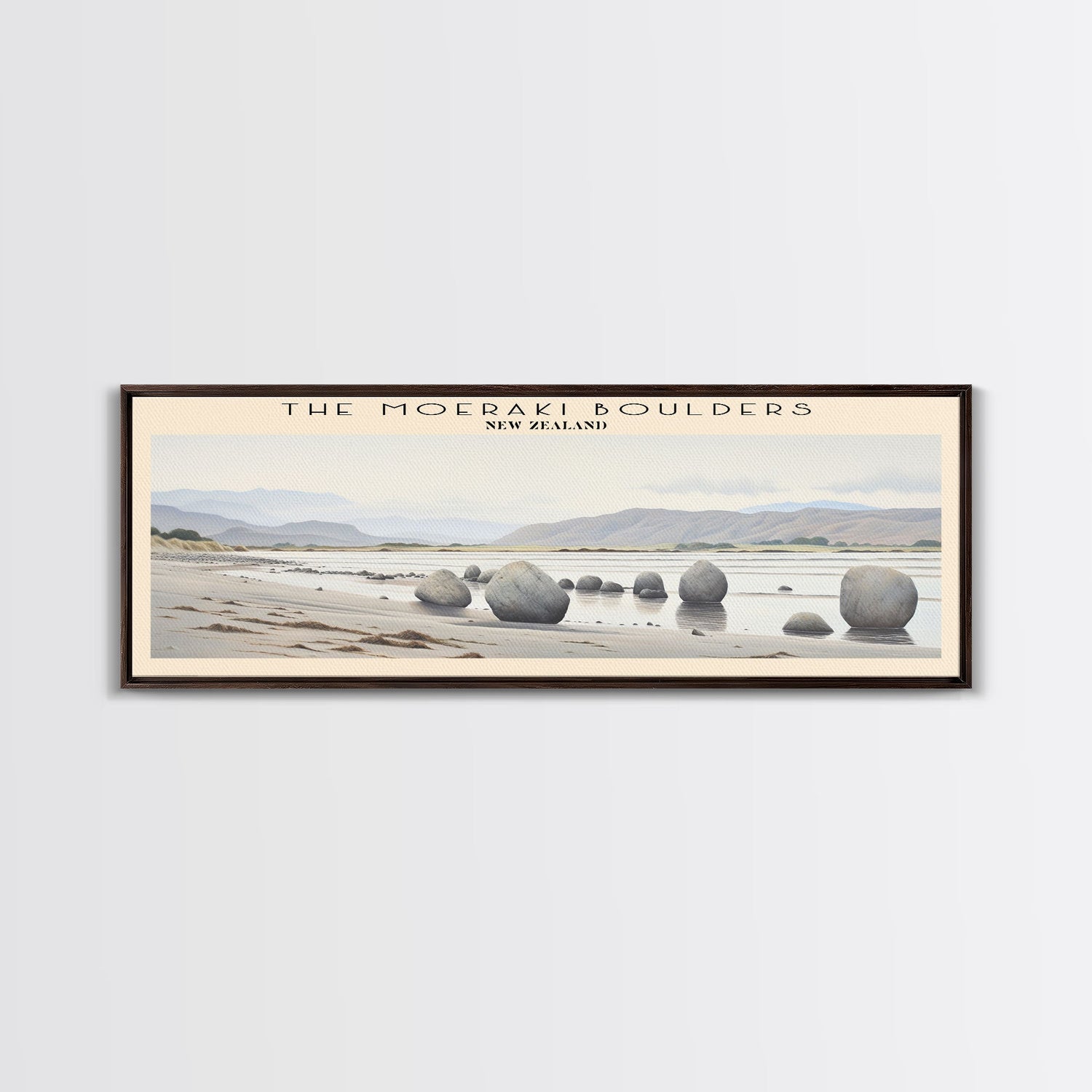 The Moeraki Boulders COUNTRY Travel Poster Print, Framed Canvas Print, COUNTRY Travel Art, Wood Framed Art, Wall Hanging, Home Decor