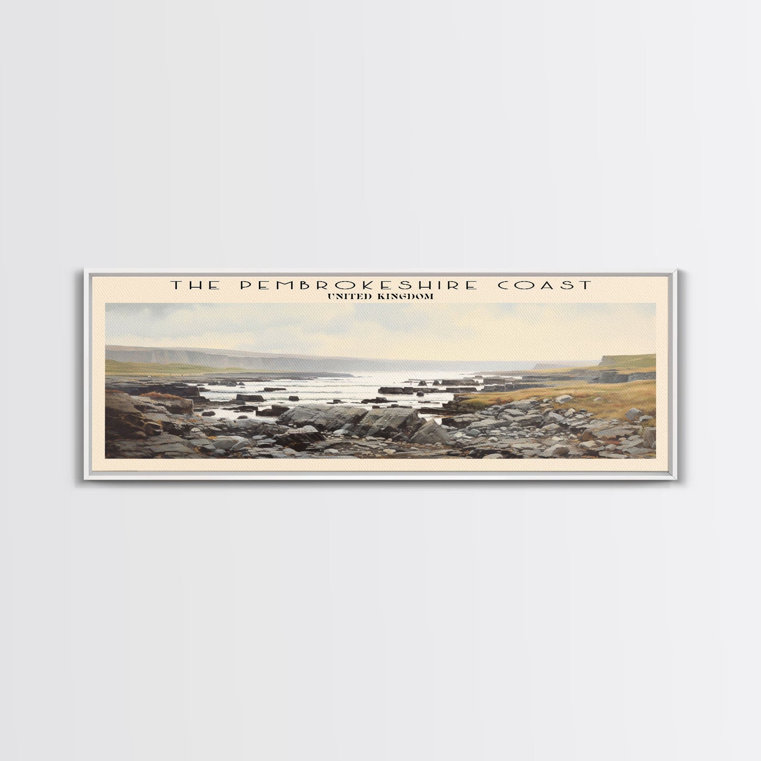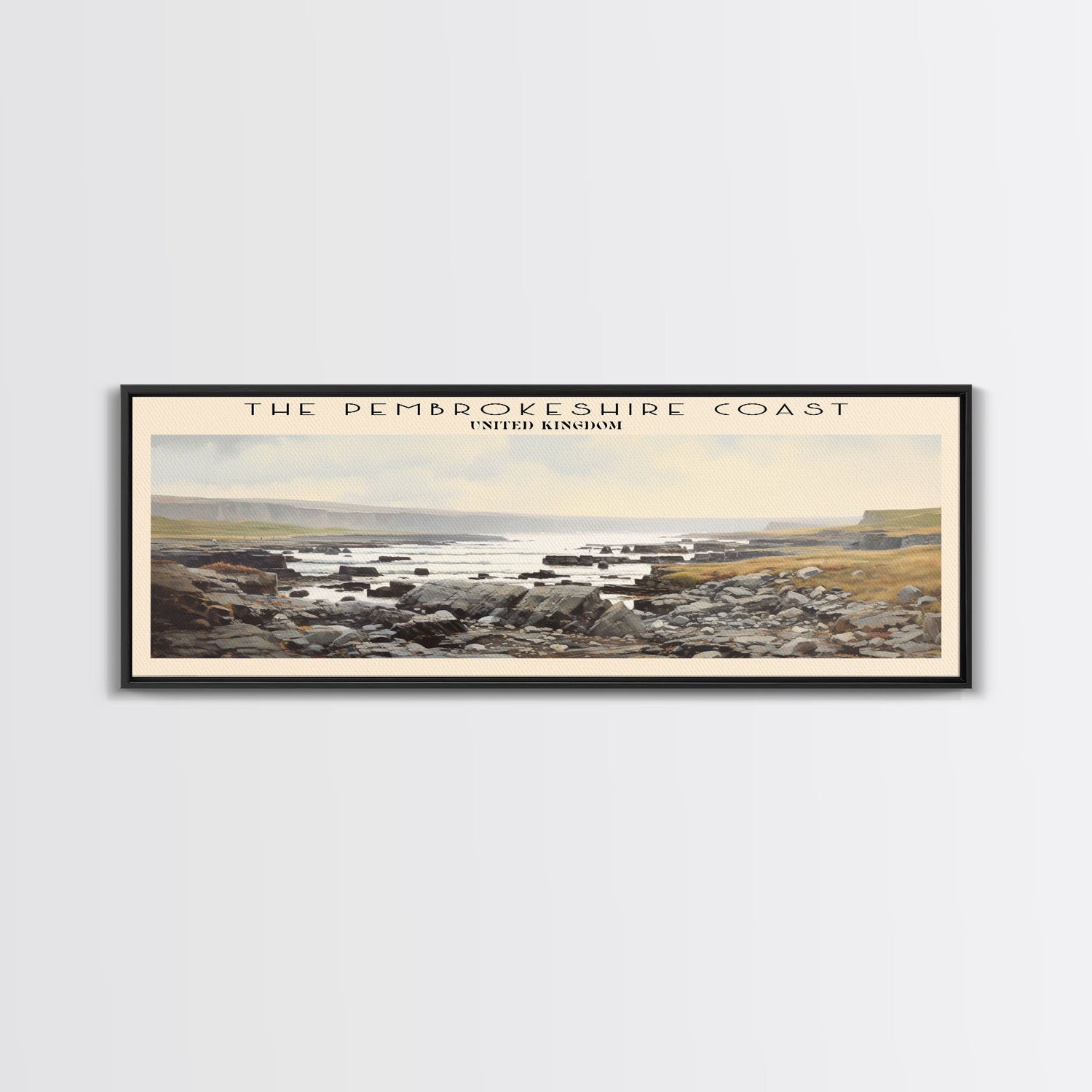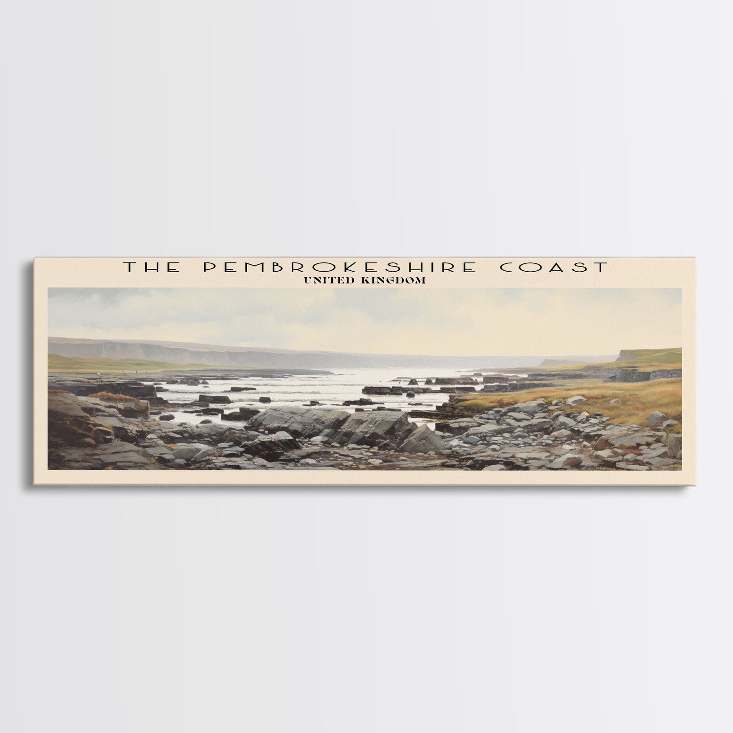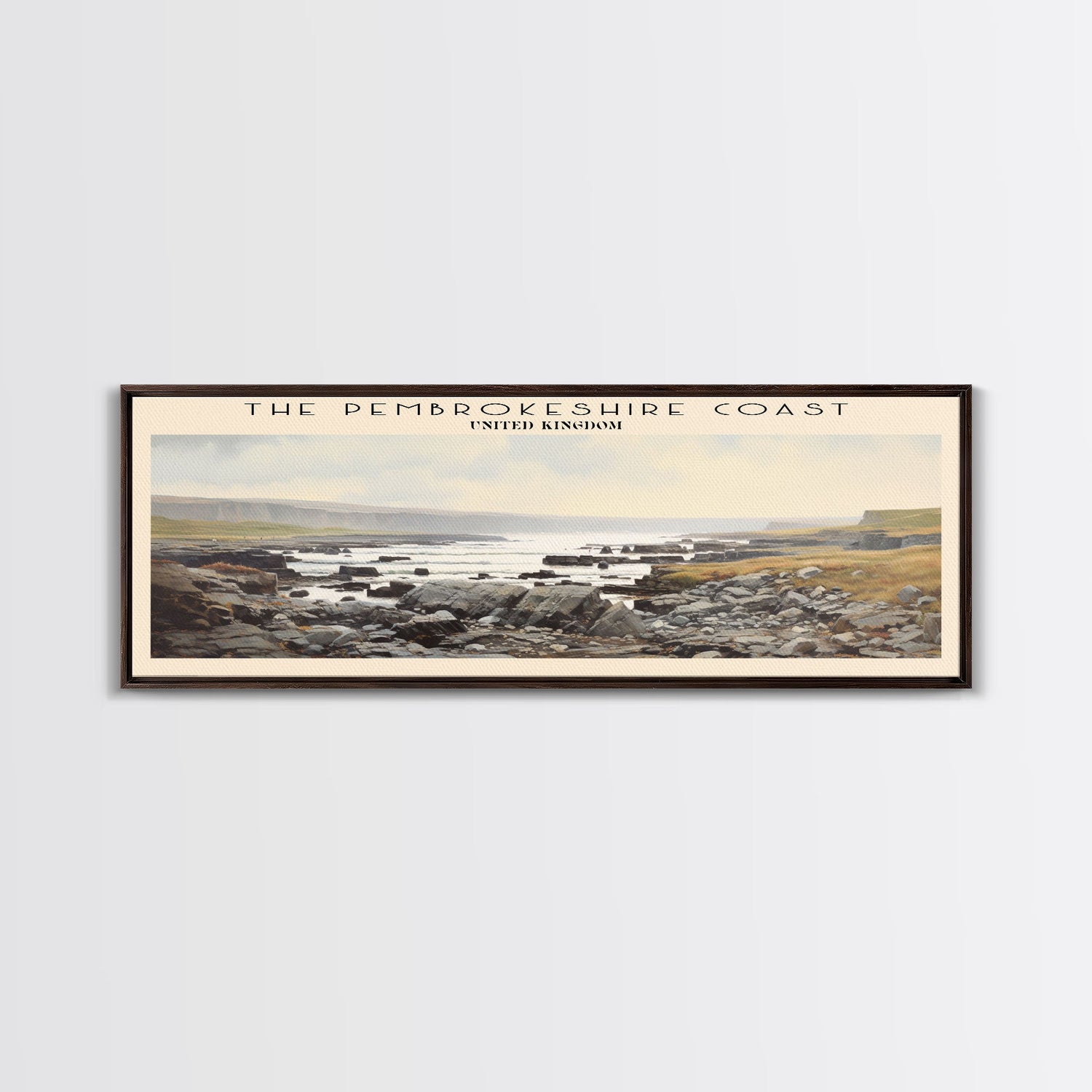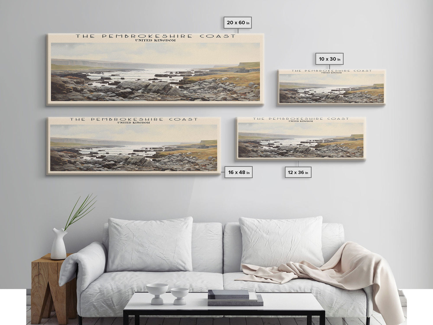 The Pembrokeshire Coast Travel Poster Print, Framed Canvas Print, COUNTRY Travel Art, Wood Framed Art, Wall Hanging, Home Decor - 10x30 Inches / No Frame - Stretched Canvas Only is backordered and will ship as soon as it is back in stock.