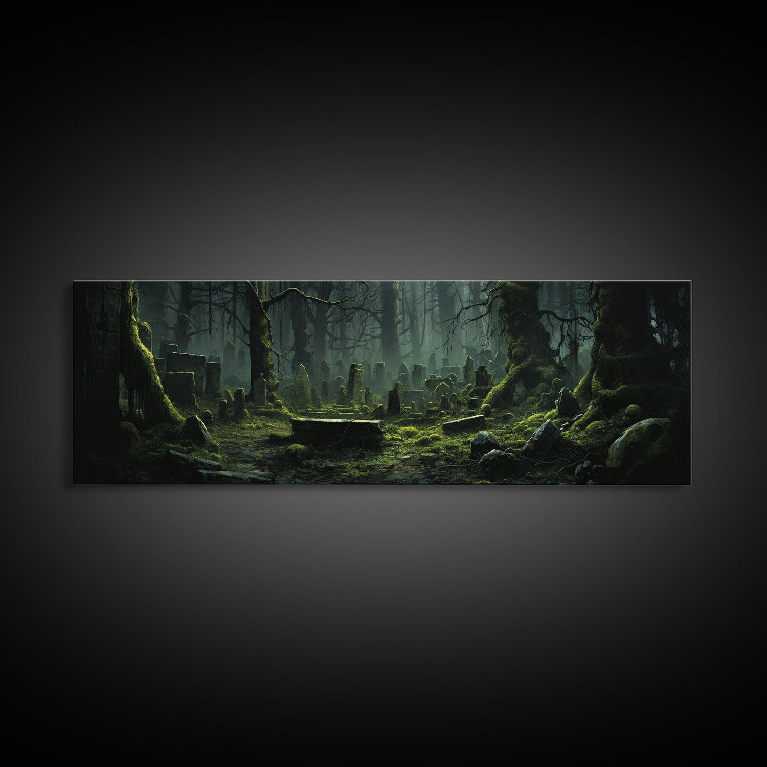 The Reclaimed Graveyard Panoramic Canvas Print, Framed Halloween Art, Spooky Decor, Halloween Art, Halloween Wall Art, Halloween Art Print
