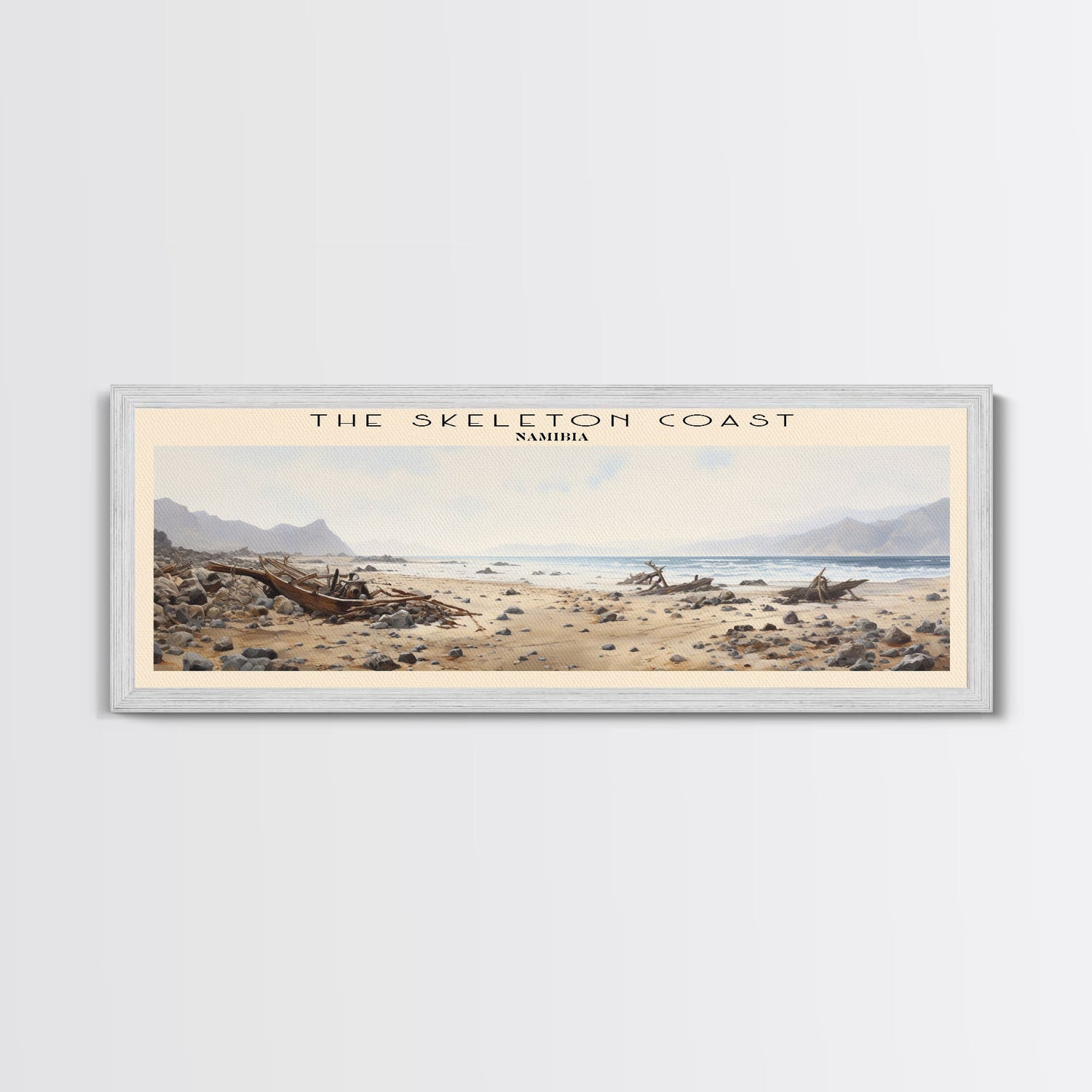 The Skeleton Coast Travel Poster Print, Framed Canvas Print, COUNTRY Travel Art, Wood Framed Art, Wall Hanging, Home Decor - 10x30 Inches / No Frame - Stretched Canvas Only is backordered and will ship as soon as it is back in stock.